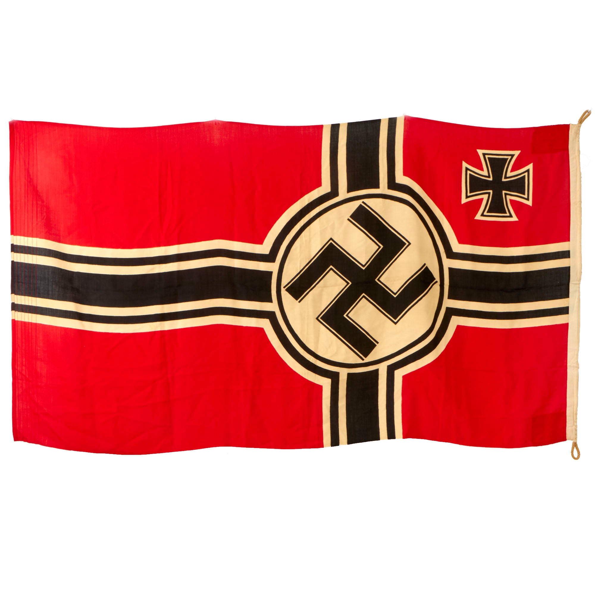 Original Item: Only One Available. Reichskriegsflagge (Imperial War Flag) was the official name of the war flag and war ensign used by the German armed forces from 1933 to 1945. This included the Heer, Luftwaffe, and Kriegsmarine, as it was a National flag. Recently acquired from a veteran's estate this is without a doubt the most impressive battle flag of the German WW2 era, it measures approximately 39" x 67" or 100cm x 170cm.