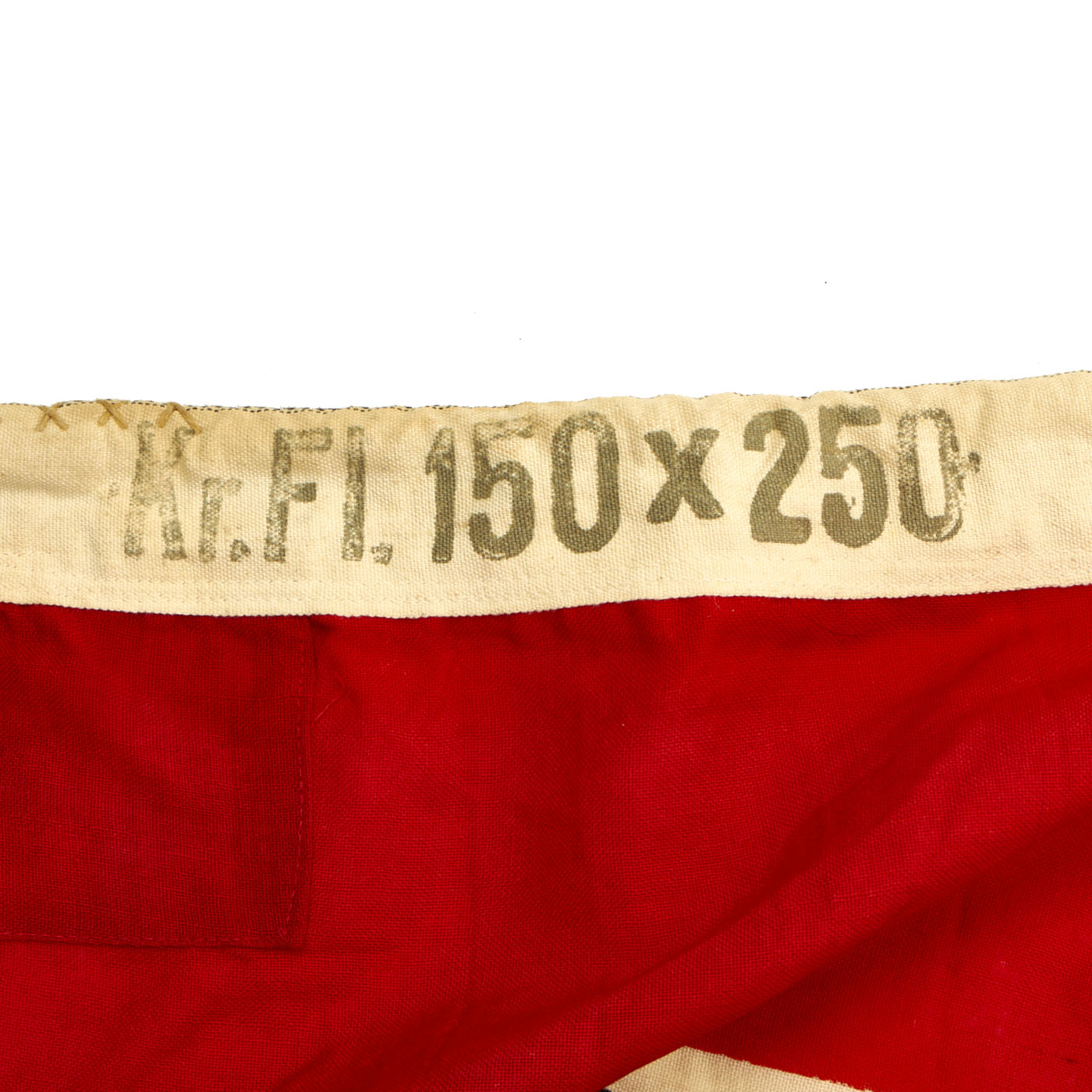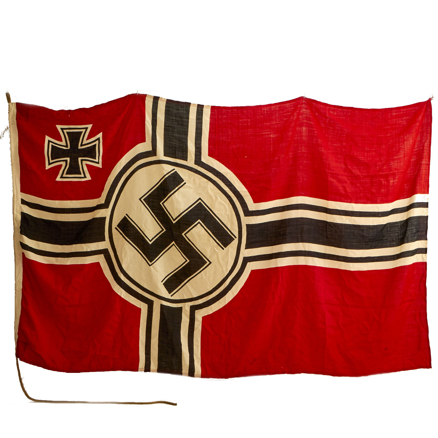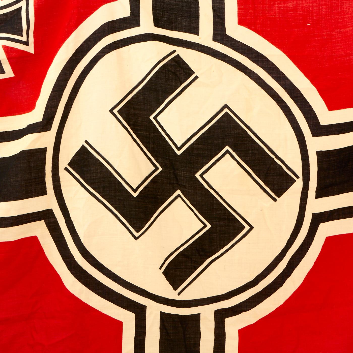 Original Item: Only One Available. Reichskriegsflagge (Imperial War Flag) was the official name of the war flag and war ensign used by the German armed forces from 1933 to 1945. This included the Heer, Luftwaffe, and Kriegsmarine, as it was a National flag. Recently acquired from a veteran's estate this is without a doubt the most impressive battle flag of the German WW2 era, it measures approximately 59.1" x 98.4", or 150cm x 250cm.