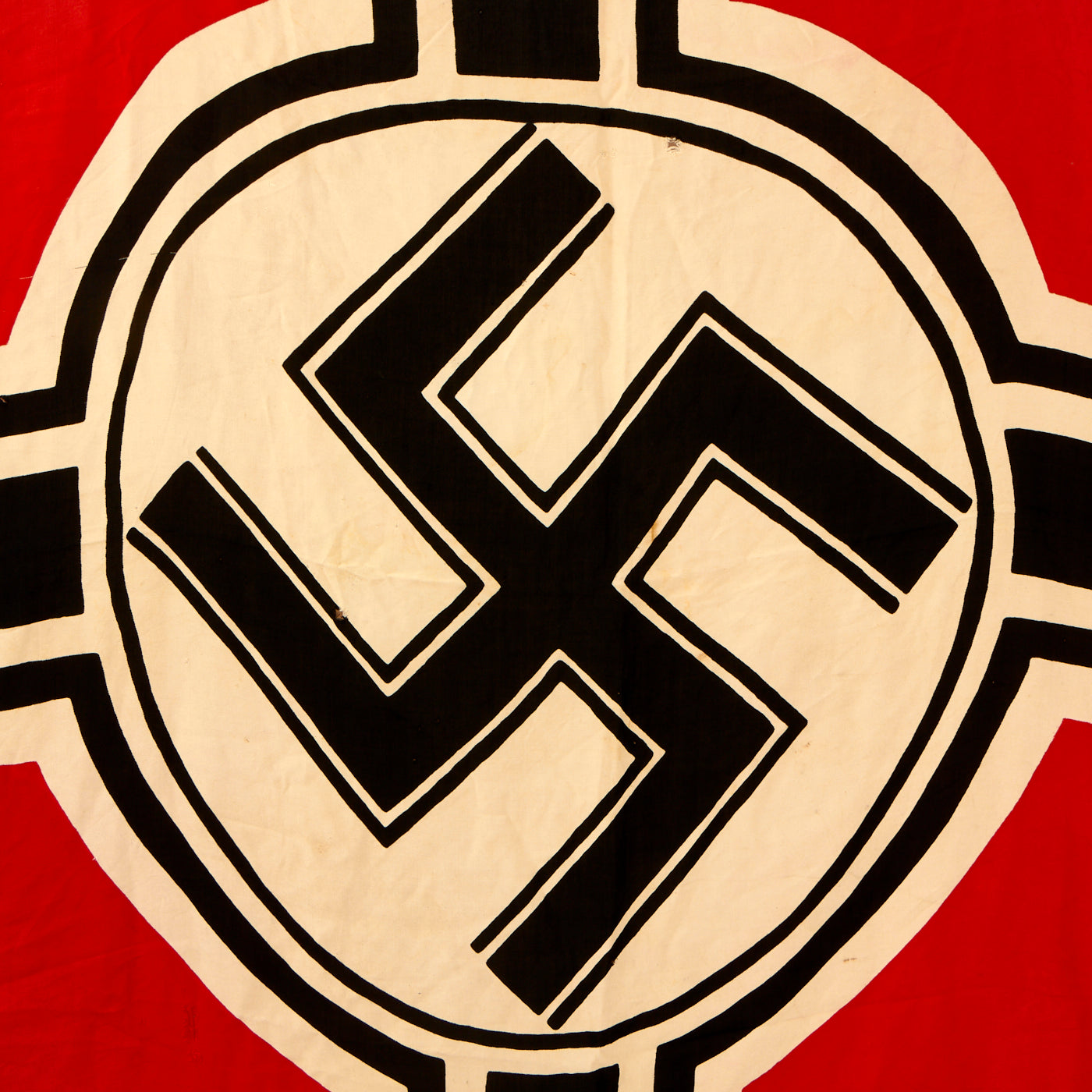 The proportions of the flag are 3:5. Fusing elements of the NSDAP German Flag (swas and red background) with that of the old Imperial Reich War Flag (four arms emanating from off-center circle and Iron Cross in the canton), these flags were uniformly produced as a printed design on bunting.
