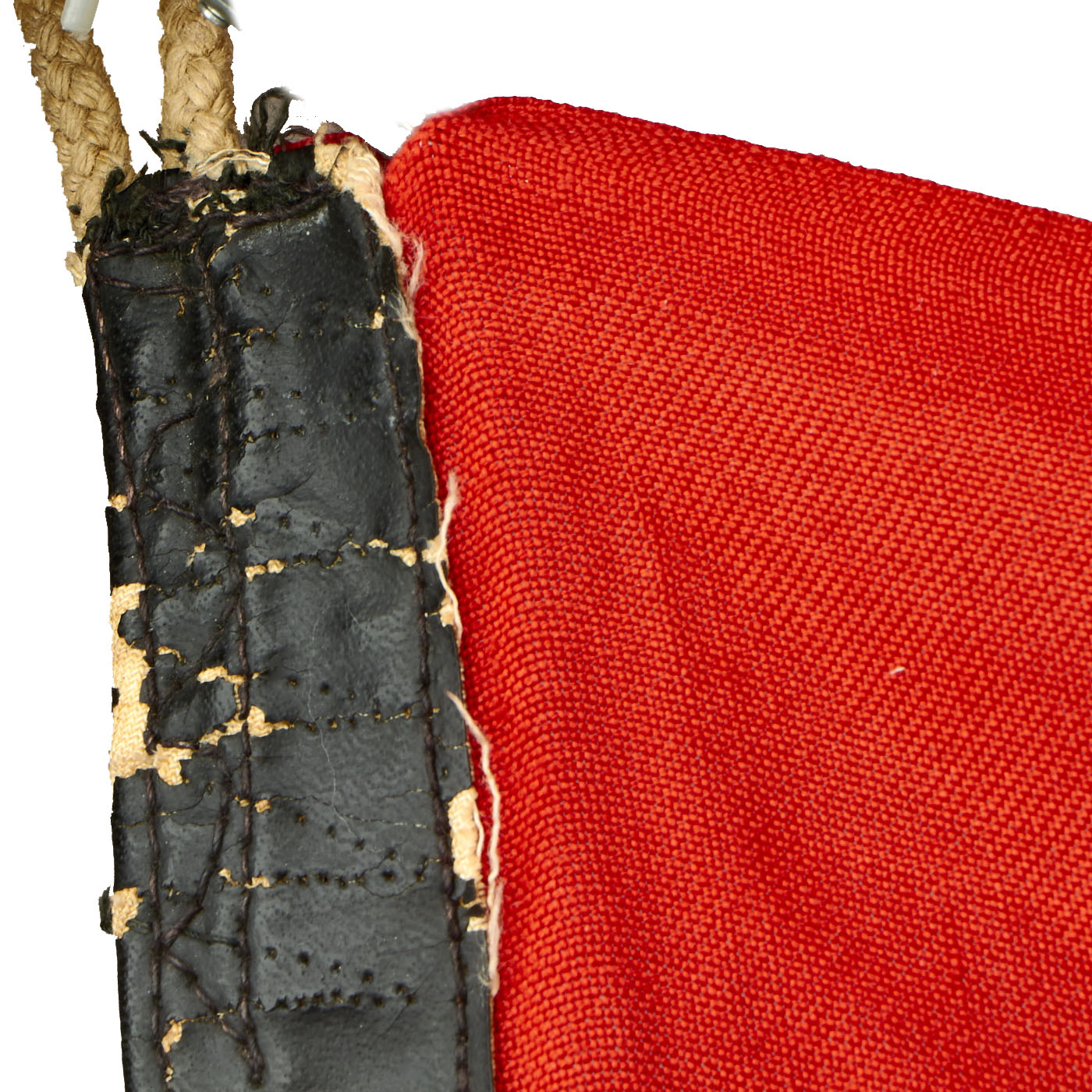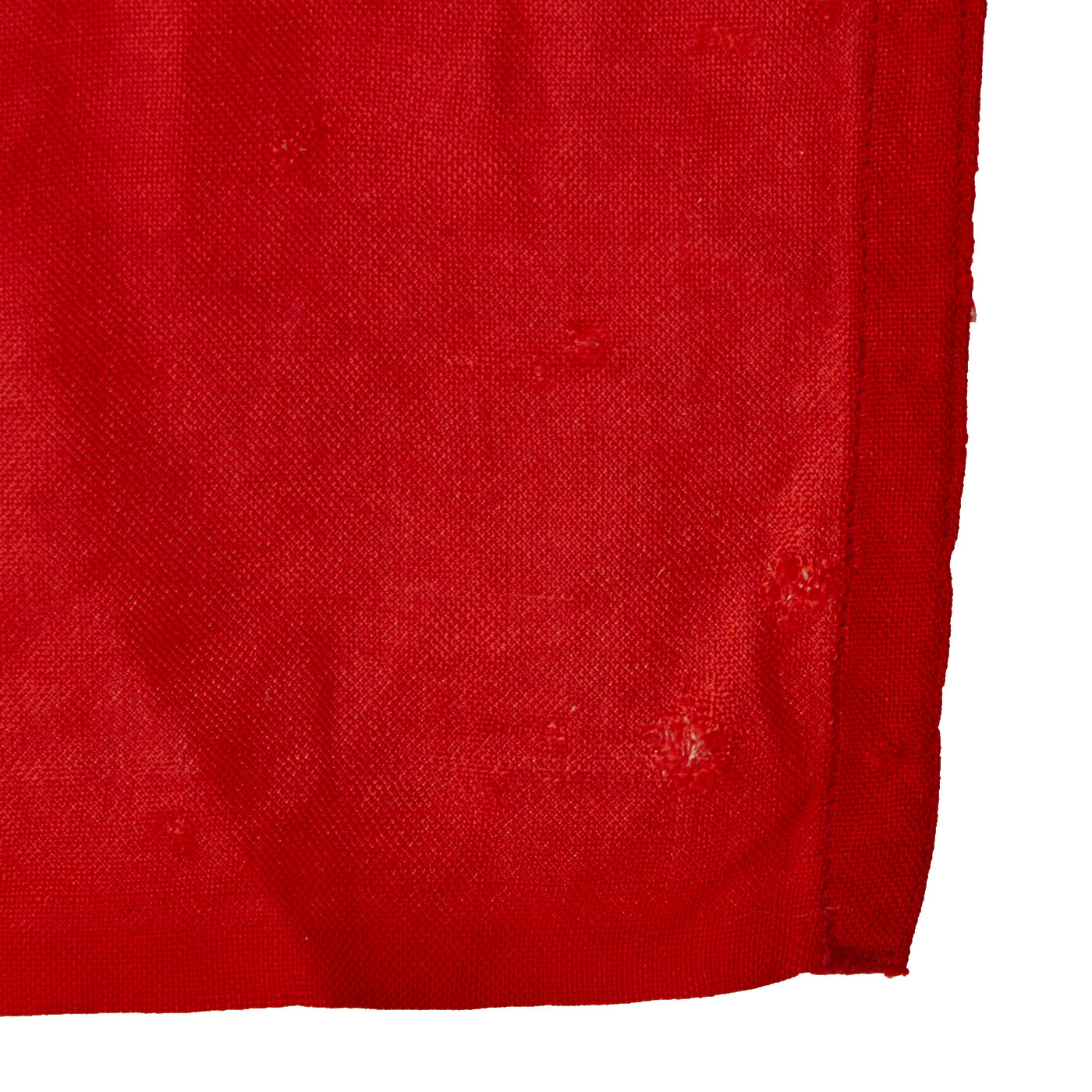 This battle flag is totally original and is in very good condition with some areas of light staining but nothing major. There is the usual age toning, but the red is still vibrant, and there is no major mothing we can see. There are a few small holes scatted throughout the flag.