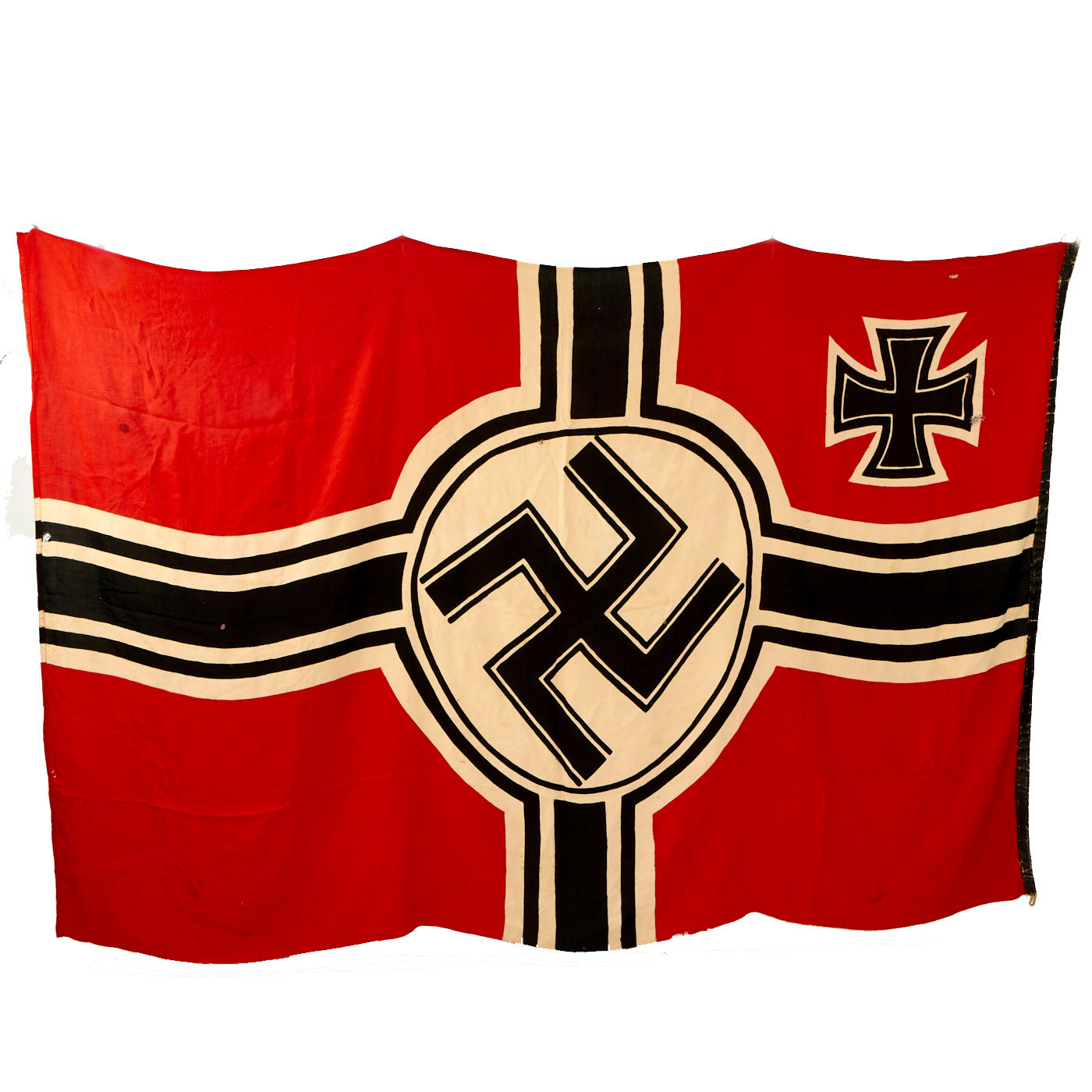 Original Item: Only One Available. Reichskriegsflagge (Imperial War Flag) was the official name of the war flag and war ensign used by the German armed forces from 1933 to 1945. This included the Heer, Luftwaffe, and Kriegsmarine, as it was a National flag. Recently acquired from a veteran's estate this is without a doubt the most impressive battle flag of the German WW2 era, it measures approximately 59.1" x 98.4", or 150cm x 250cm.