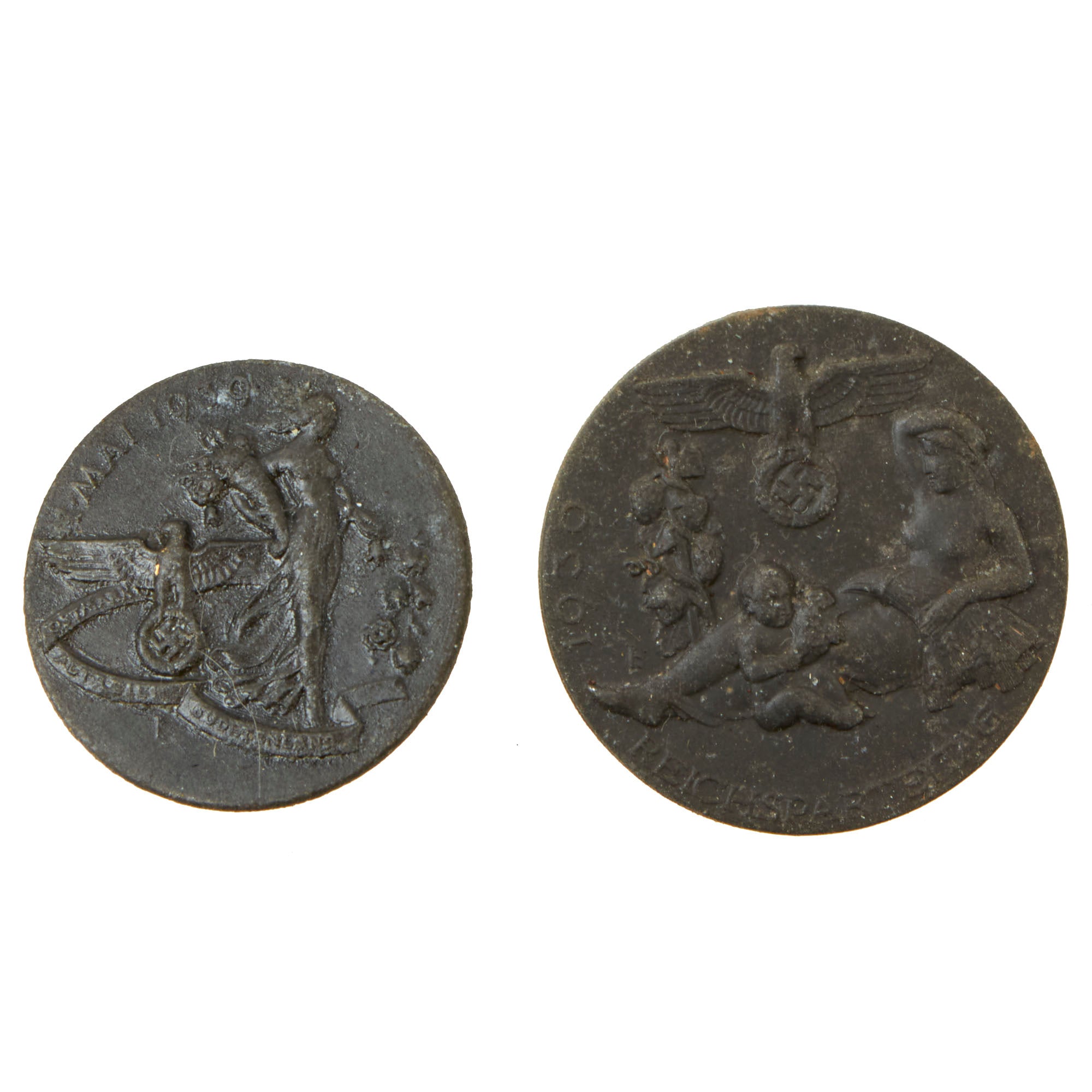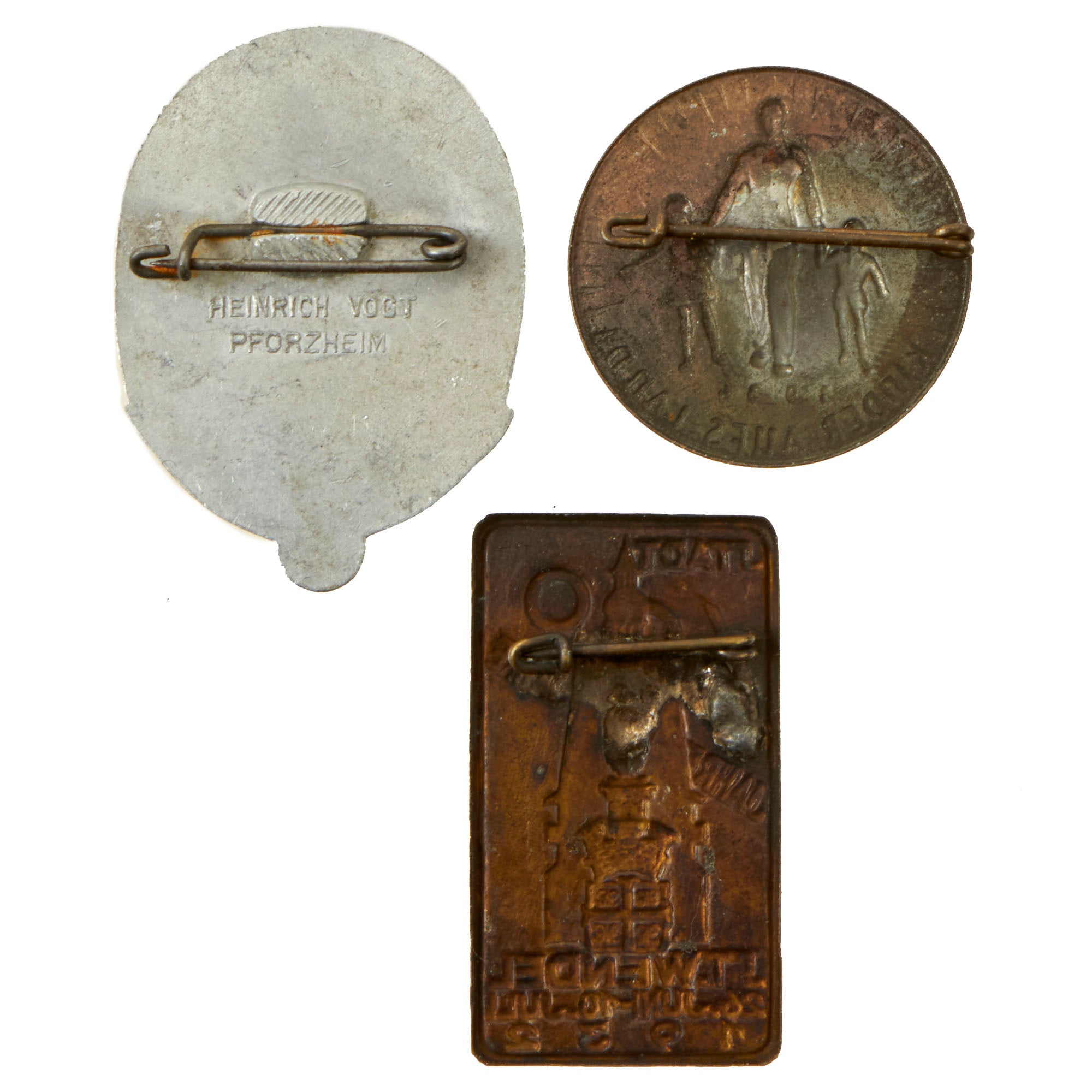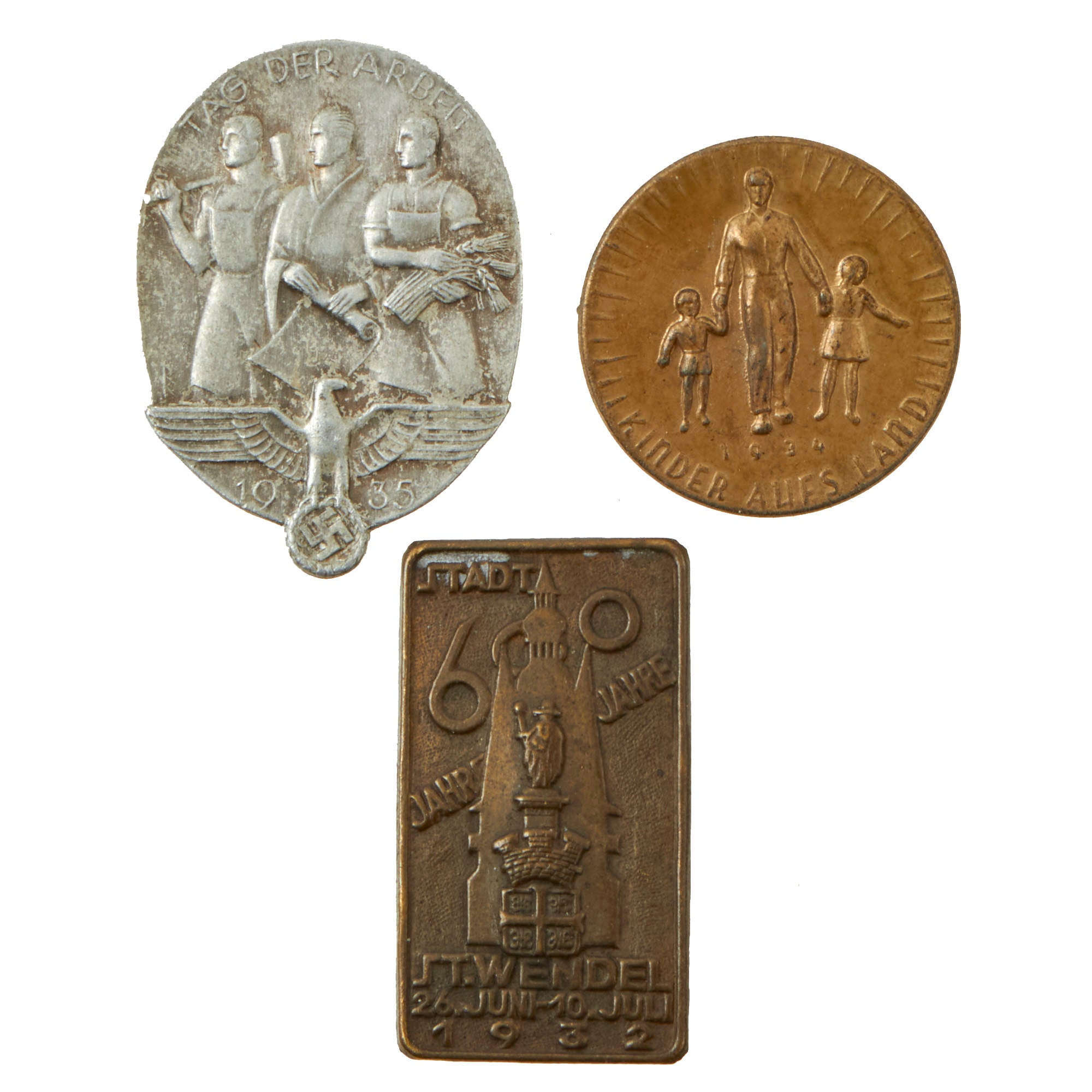 "Tinnies" (Veranstaltungsabzeichen - Event Badges) are small commemorative pins or medals, acquired when one attended a specific event held in Germany. They were often made of thin stamped metal, bakelite, or even pressed paper. Many of these were given out as part of the WHW (Winterhilfswerk - Winter Help Work) Organization, which often involved Germans traveling quite a bit to help out the war effort.