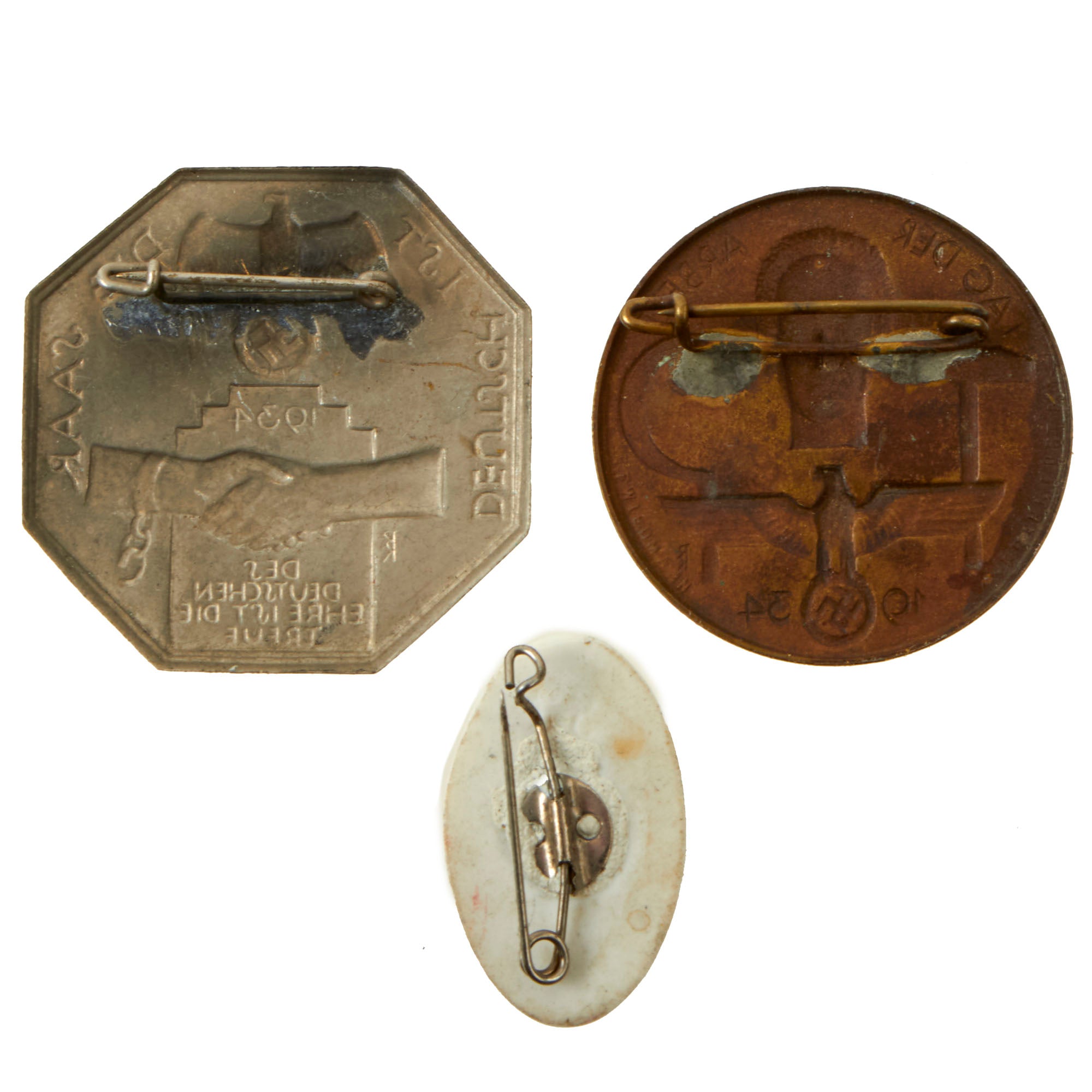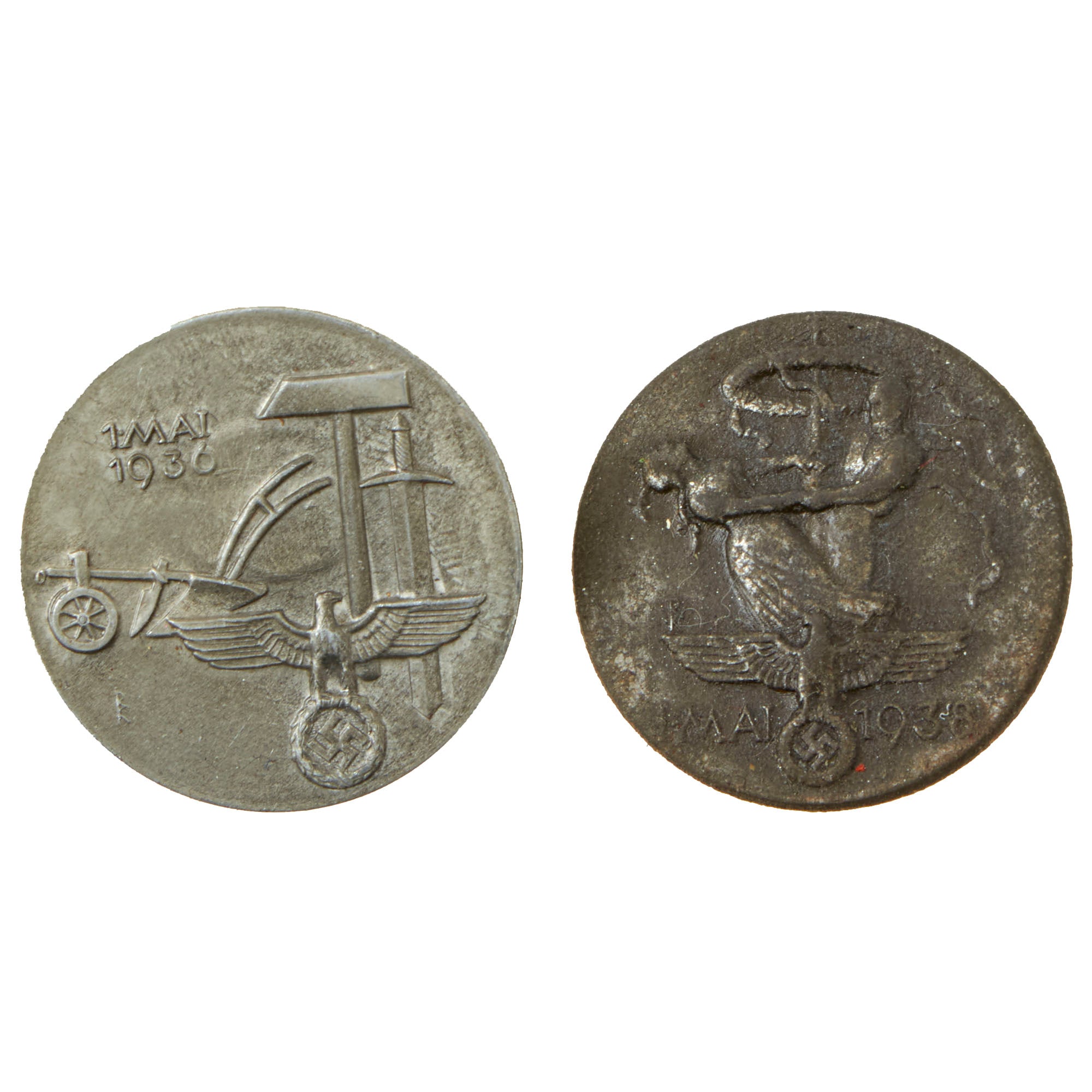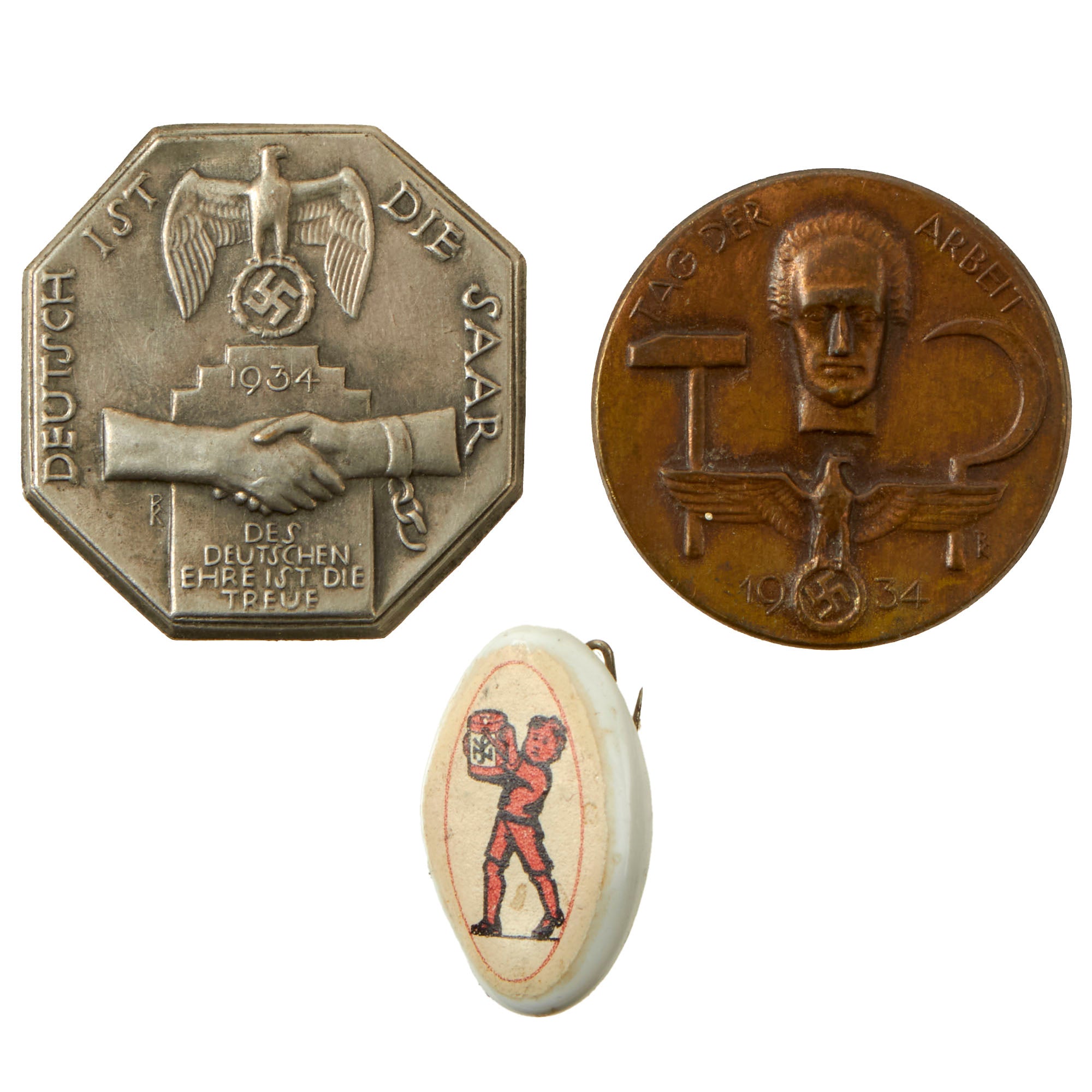 "Tinnies" (Veranstaltungsabzeichen - Event Badges) are small commemorative pins or medals, acquired when one attended a specific event held in Germany. They were often made of thin stamped metal, bakelite, or even pressed paper. Many of these were given out as part of the WHW (Winterhilfswerk - Winter Help Work) Organization, which often involved Germans traveling quite a bit to help out the war effort.