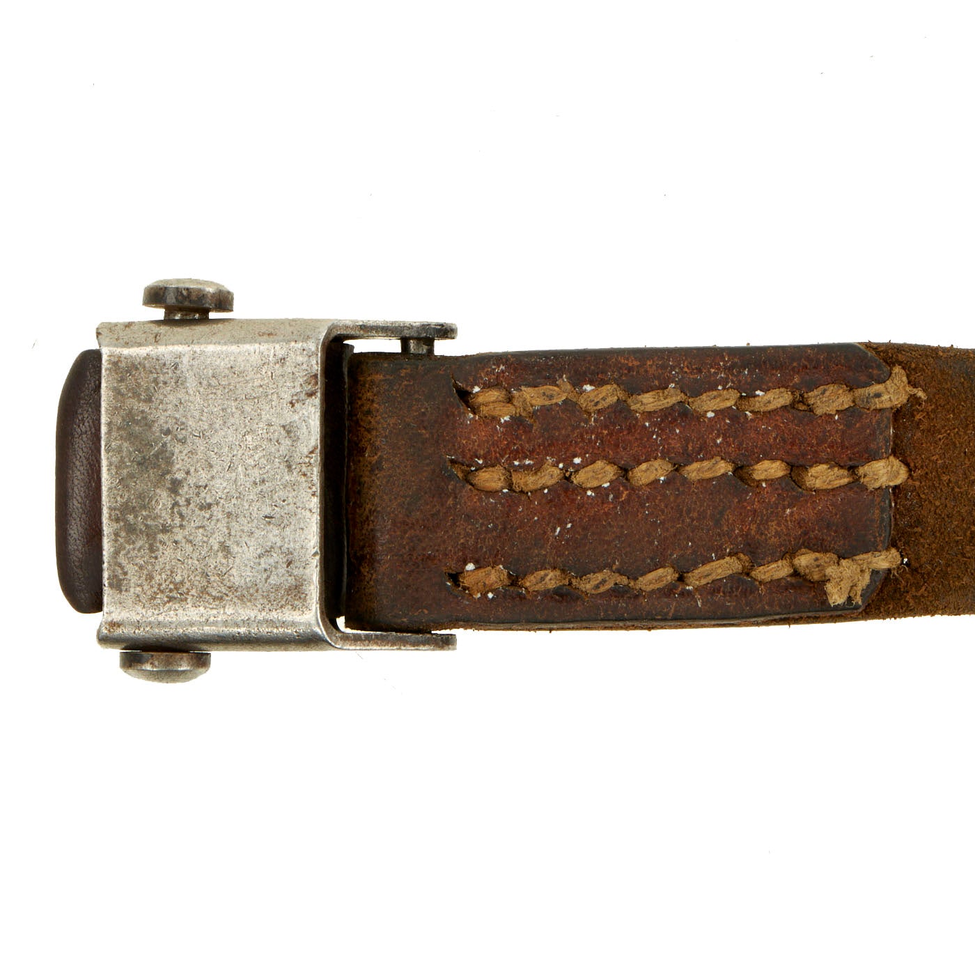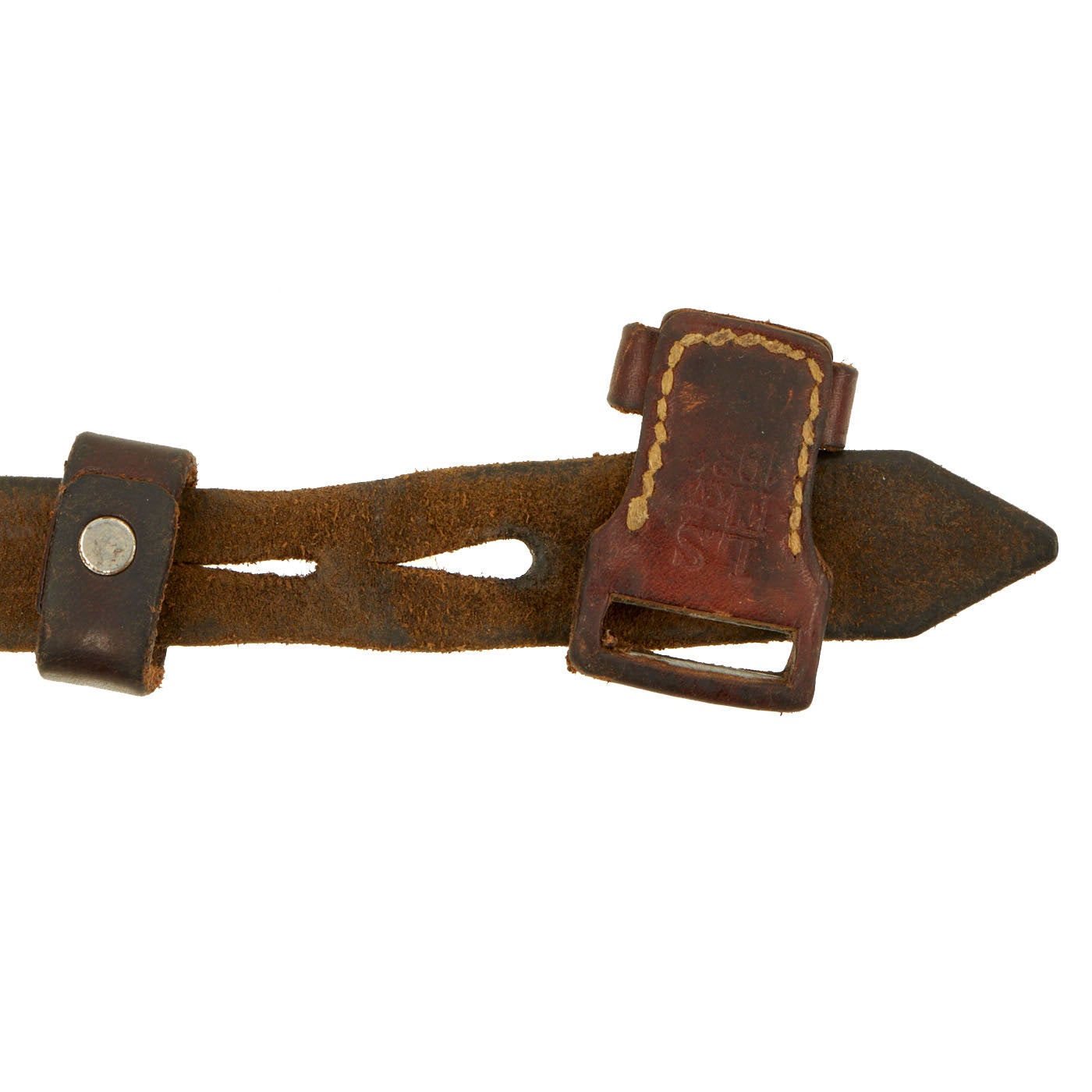 Original Item: Only One Available. This is a very nice, totally genuine World War Two German issue leather sling for the Mauser Karabiner 98 Kurz (k98k). It is hand sewn, with steel hardware, and made of quality leather which looks to have originally been finished black at some point, but the color is mostly worn away. The sling will also work for G/K43 and MP43/44.