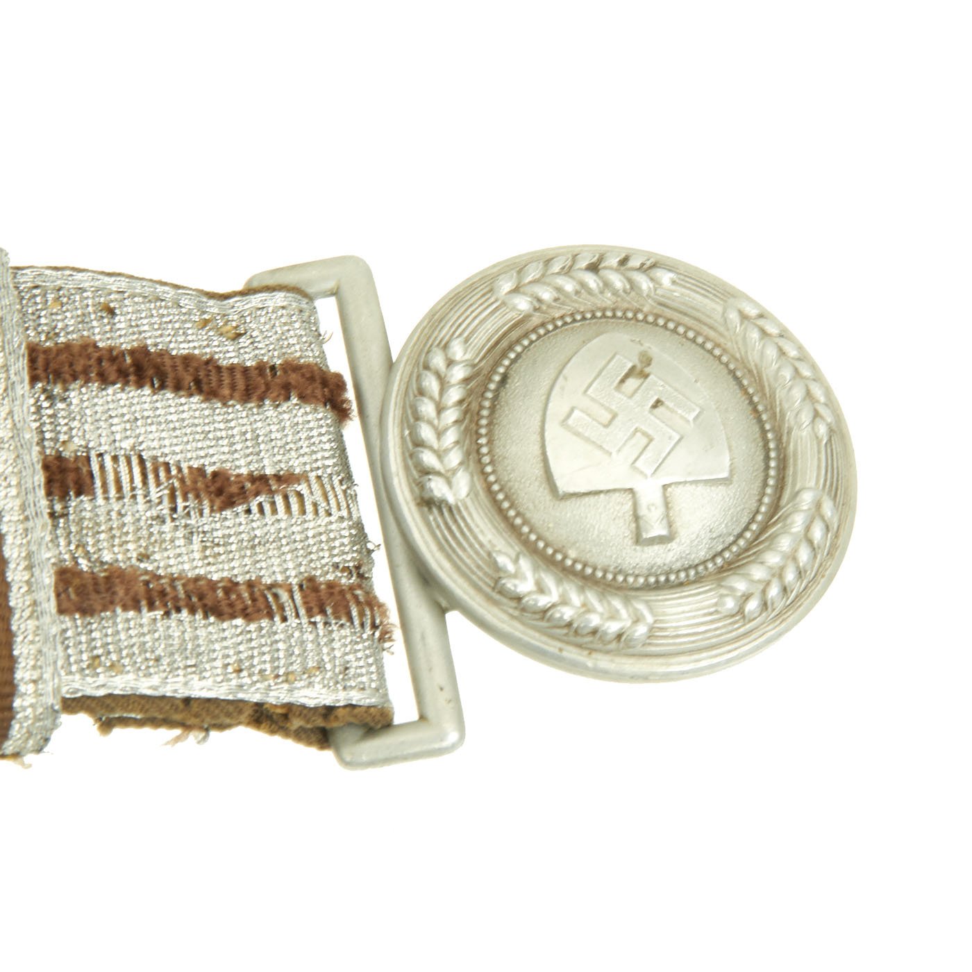 Original Item: Only One Available. This is a relic condition WWII German Reichsarbeitsdienst (RAD - National Labor Service) Officer's Bullion Dress Brocade Belt, with attached aluminum buckle. These belts were worn with the dress uniform for ceremonial occasions, and were standard issue to all officers with their dress uniform.