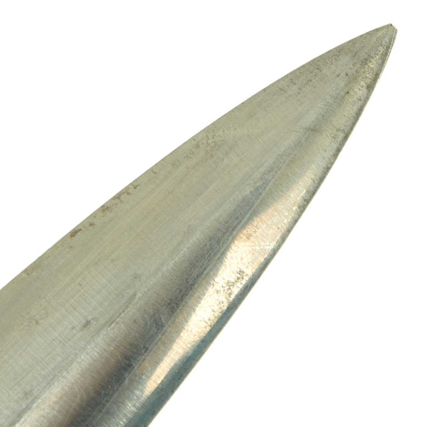 Prior to his "unmasking" as a traitor, Ernst Röhm was the leader of the SA. In 1934, he distributed approximately 100,000 SA daggers with his personal inscription on the reverse blade. These daggers were to honor individuals who had served with the SA prior to December, 1931. Other than the inscription, these pieces were identical to the standard M1933 SA dagger. After the Röhm purge, the inscription was ordered to be removed. Many examples were returned to the factory for grinding. Others were simply ground in the field by whatever means were available. Examples will occasionally be encountered with remnants of the original inscription remaining on the blade, but mostly none will remain. Some blades exist with an intact inscription, reflecting only the removal of the Röhm signature. Very very rarely is an example seen with a full, untouched inscription, as the holder would have surely risked a charge of treason.
