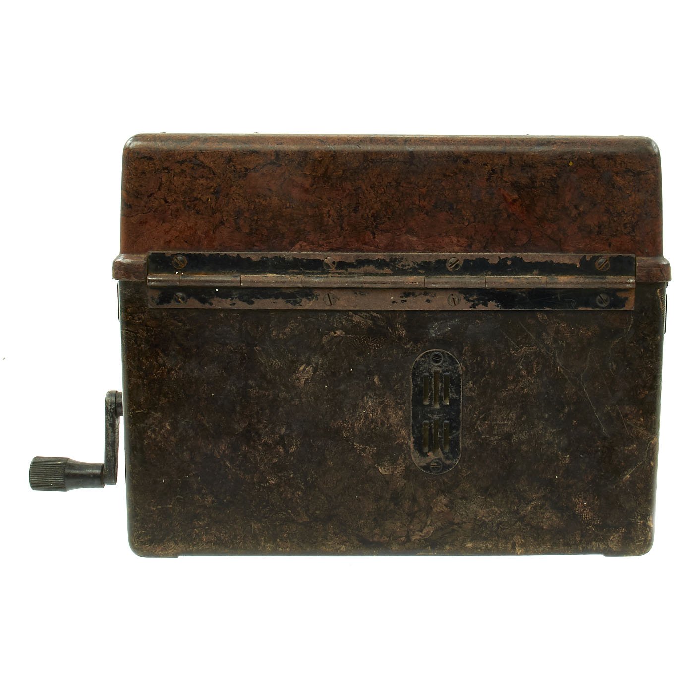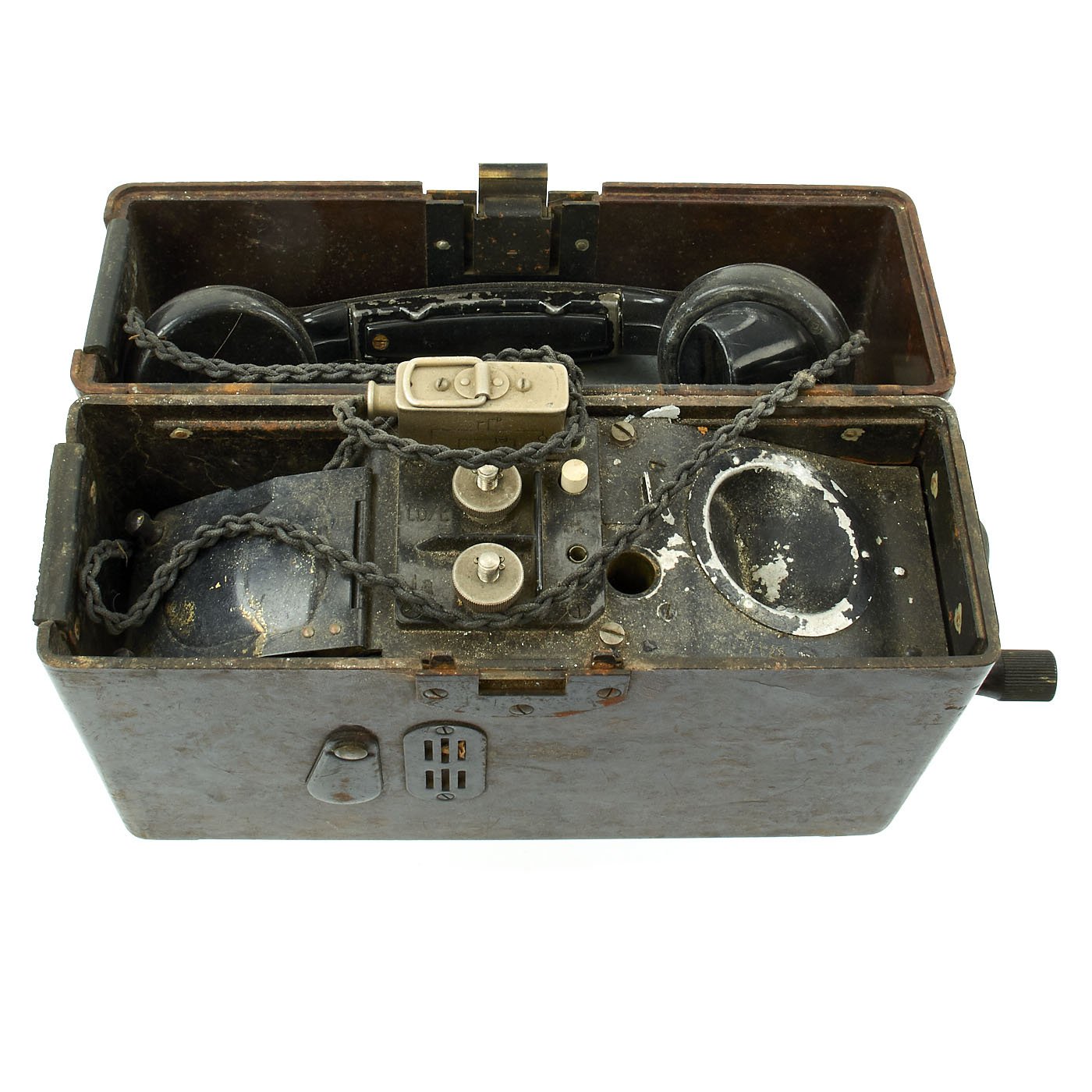 Original Item: Only One Available. The feldfernsprecher 33 (FF33) was the standard field telephone of the German military forces of WWII. It is a general purpose field telephone designed for wired communications. It was introduced in 1933 as a modern replacement for the previous WWI legacy field telephones the last of the series being the feldfern-sprecher 26 (1926). The FF33 can also be connected to the Torn. Fu. D2 and Torn. Fu. Bl, and F series radio sets to act as a remote handset.