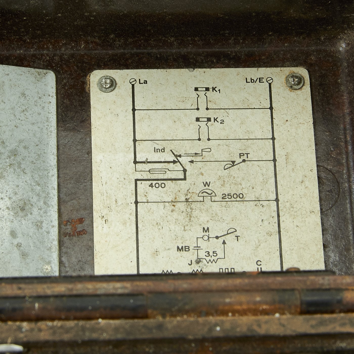 Ingeniously designed with what appears to be one traditional wartime style handset, the lid interior of one has built in electrical circuit schematics for informational purposes. Used by the German Army throughout WW2 and continued in service for another 25 years into the Cold War era.