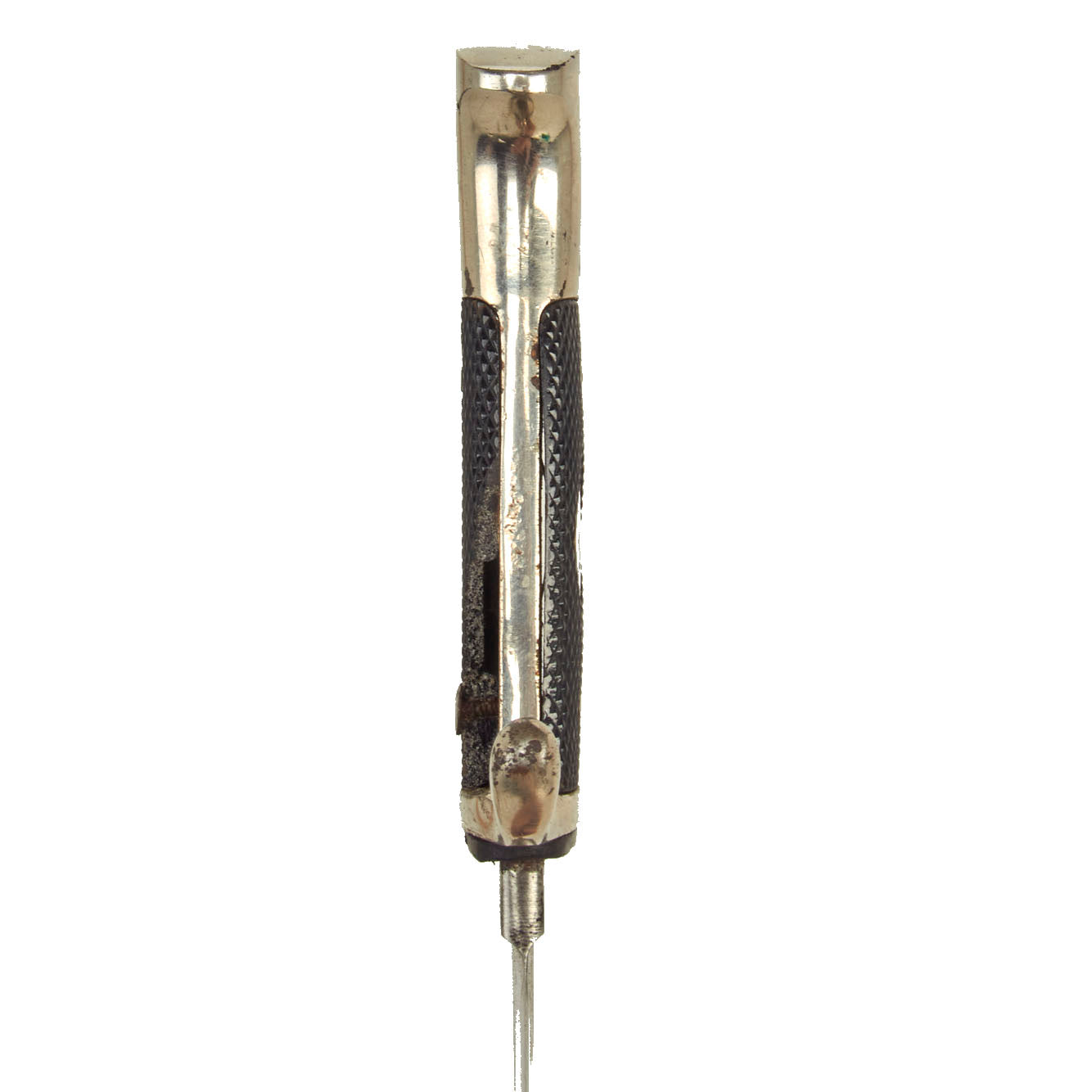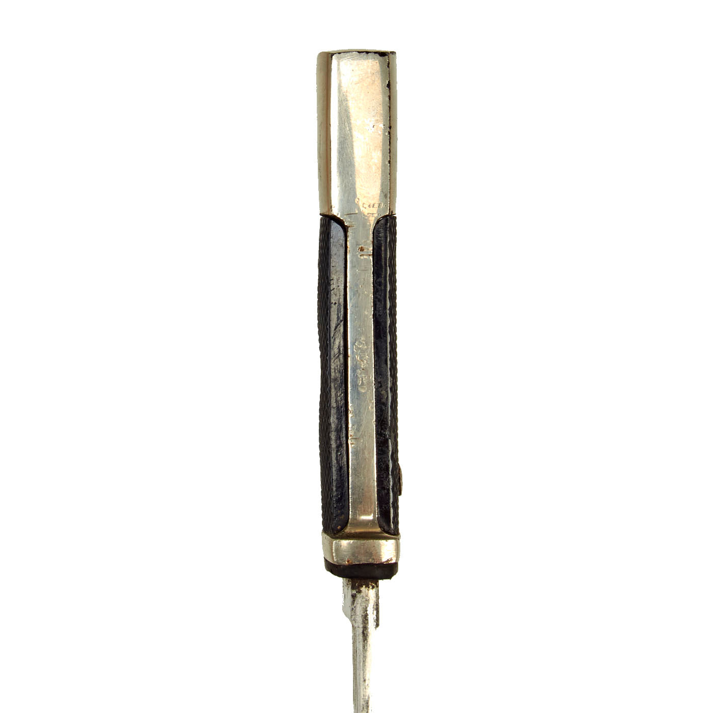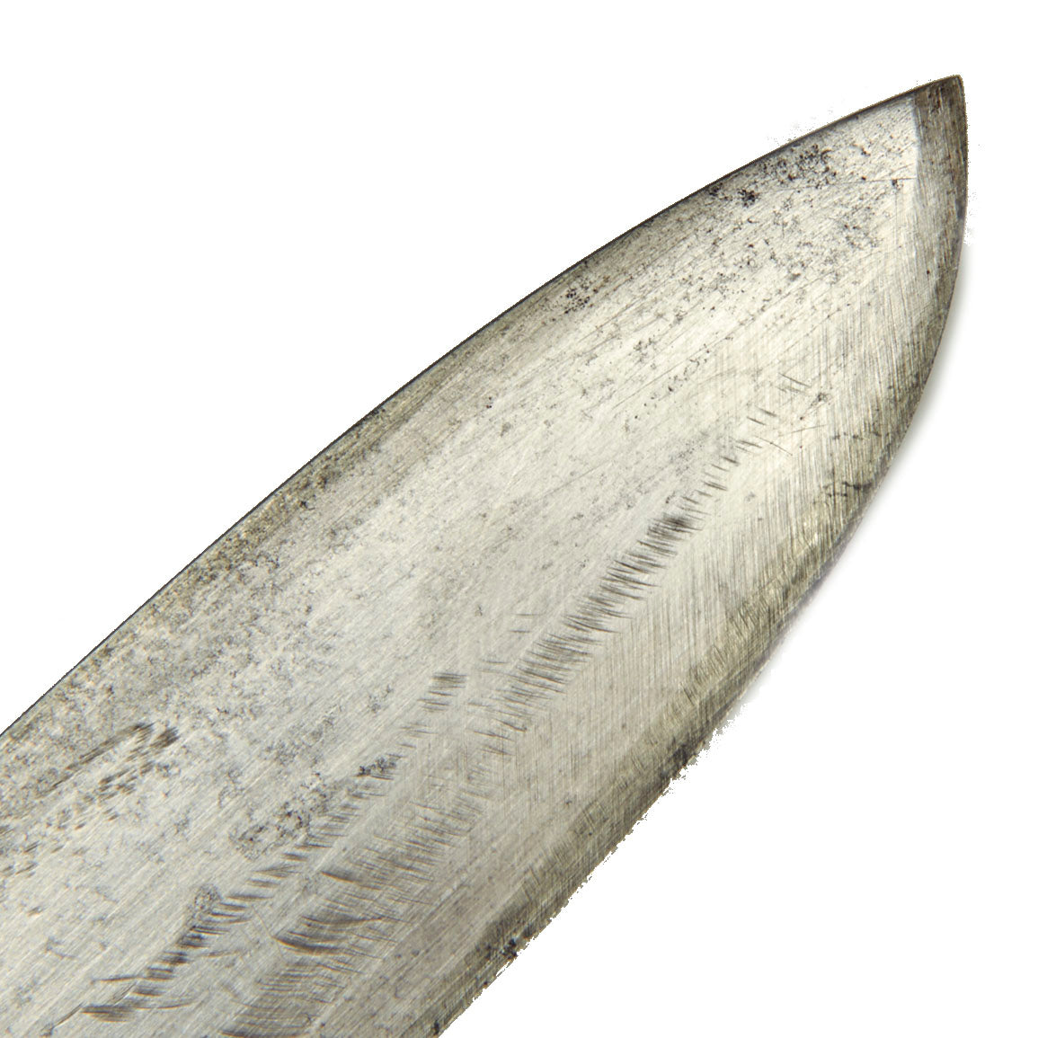 Unlike the early pattern knives, these have a thicker blade with a raised ricasso, which significantly strengthened the blade. There is no acid etched motto on the blade, and it does not look like it ever had one.