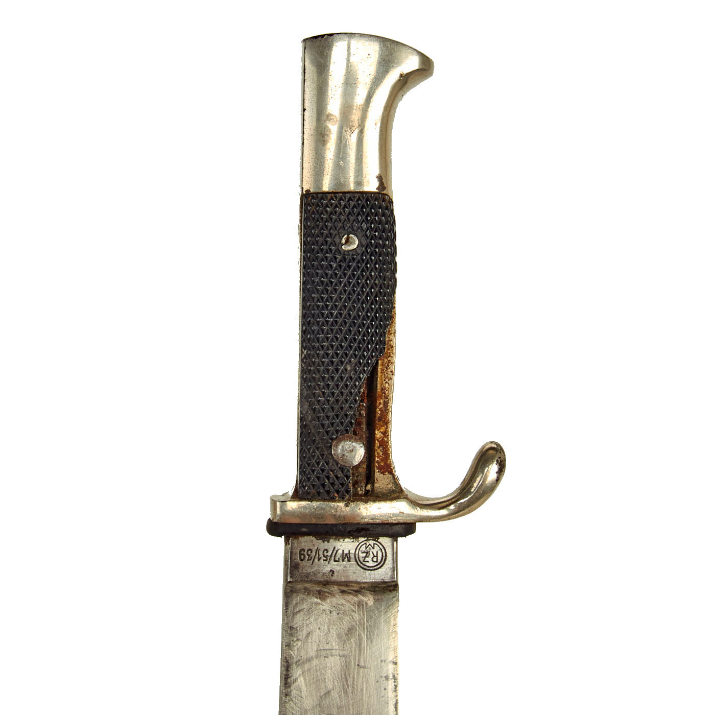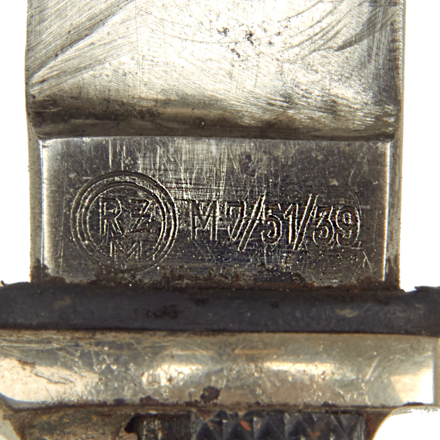 The Reichszeugmeisterei (National Quartermaster Office), or RZM, was based at the Brown house in Munich and NSDAP party headquarters in Berlin. The RZM ensured that the manufacturers of military items were consistent in design, quality of materials and other characteristics of the items. It also defined standards of design, manufacturing and quality and published an authoritative color chart for textiles. The M7 in the code stands for knives/daggers, contractor 51 stands for firm Anton Wingen Jr, a rare maker from Solingen, the famous "City of Blades" in Western Germany.