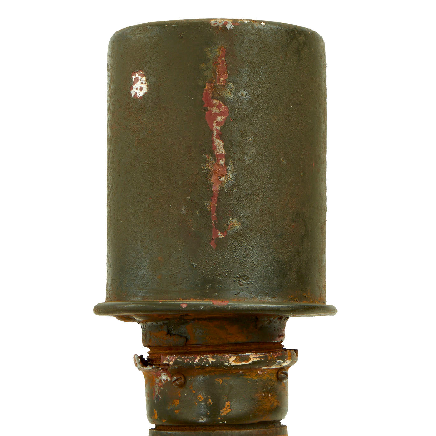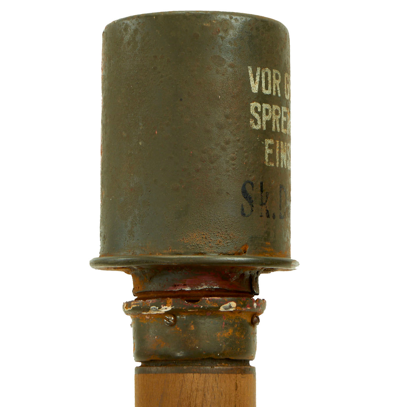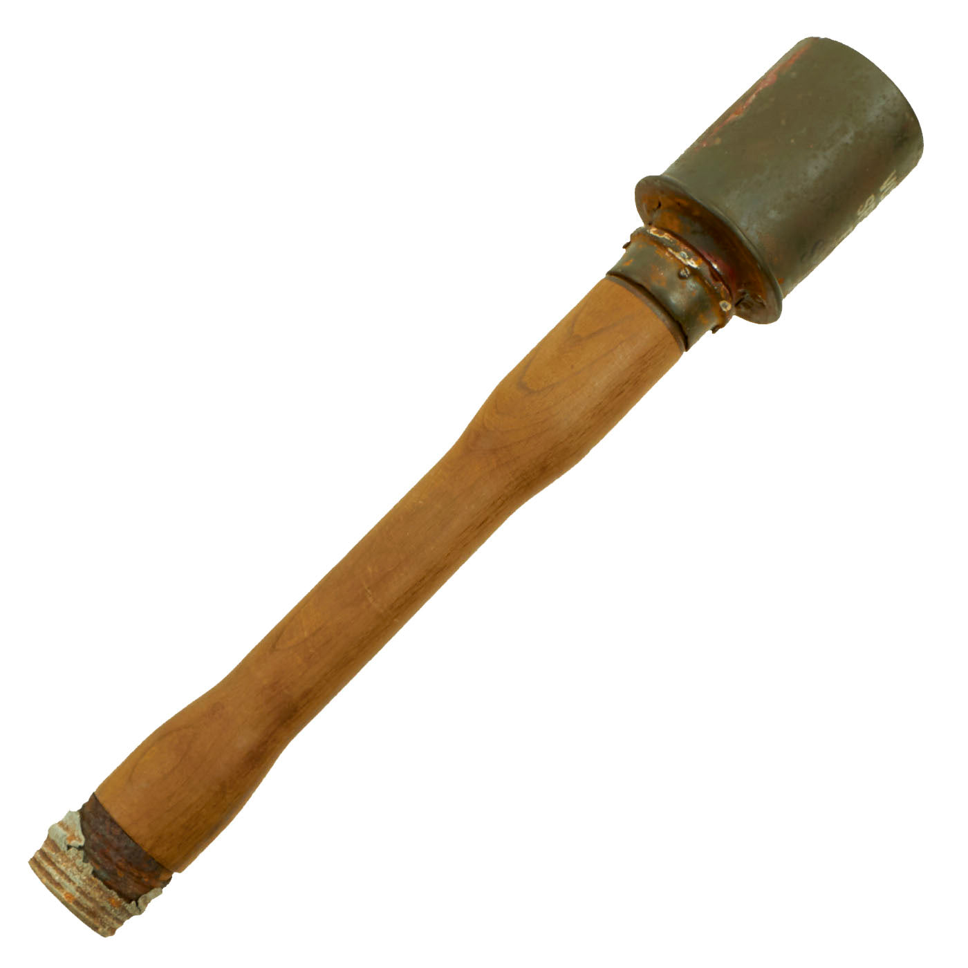 Original Item: Only One Available. This is an excellent example of a WWII German M-1924 German Stick Grenade. This very nice example, acquired from a private estate sale, has been demilitarized according to specifications by the BATF, and is not available for export. It still retains its original paint and the original markings can be seen on both the head and shaft of the grenade.