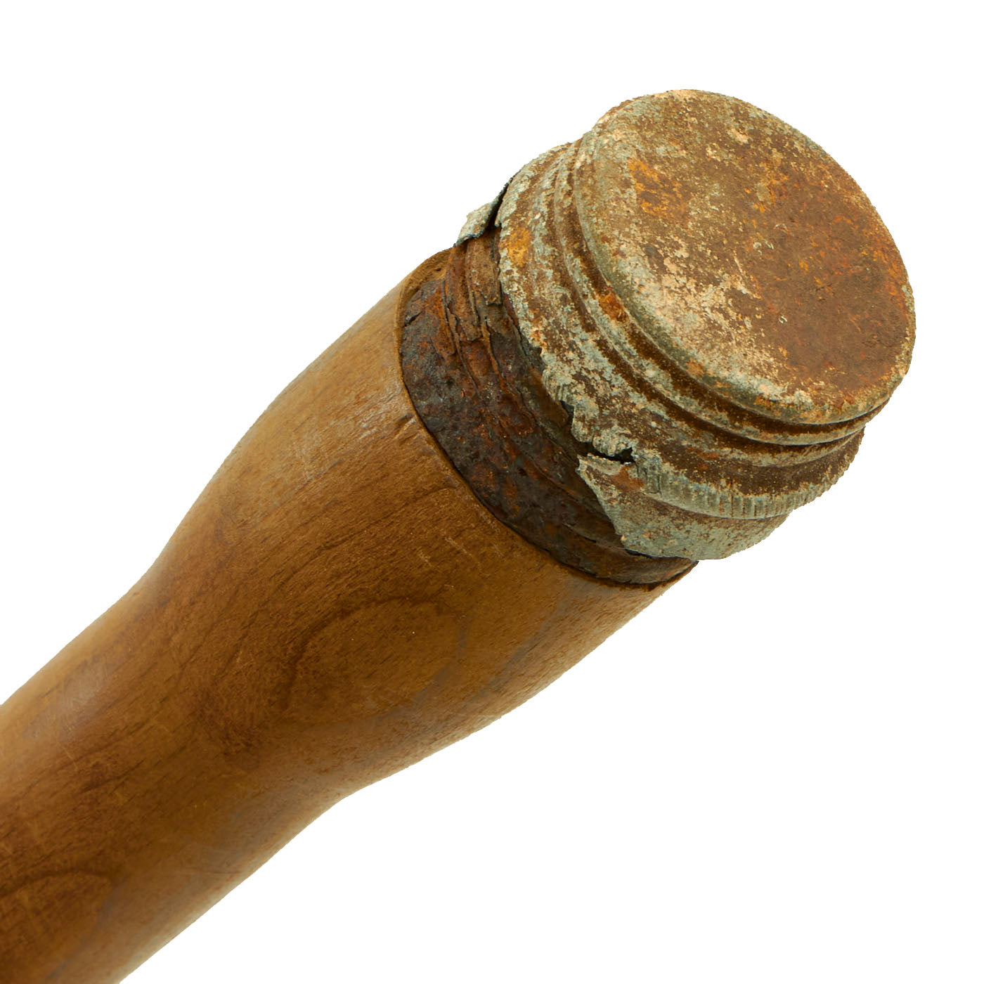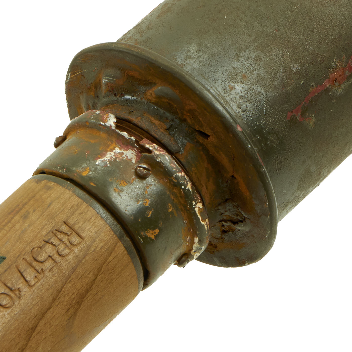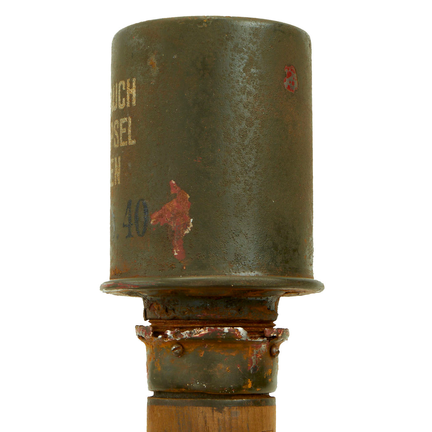 Original Item: Only One Available. This is an excellent example of a WWII German M-1924 German Stick Grenade. This very nice example, acquired from a private estate sale, has been demilitarized according to specifications by the BATF, and is not available for export. It still retains its original paint and the original markings can be seen on both the head and shaft of the grenade.