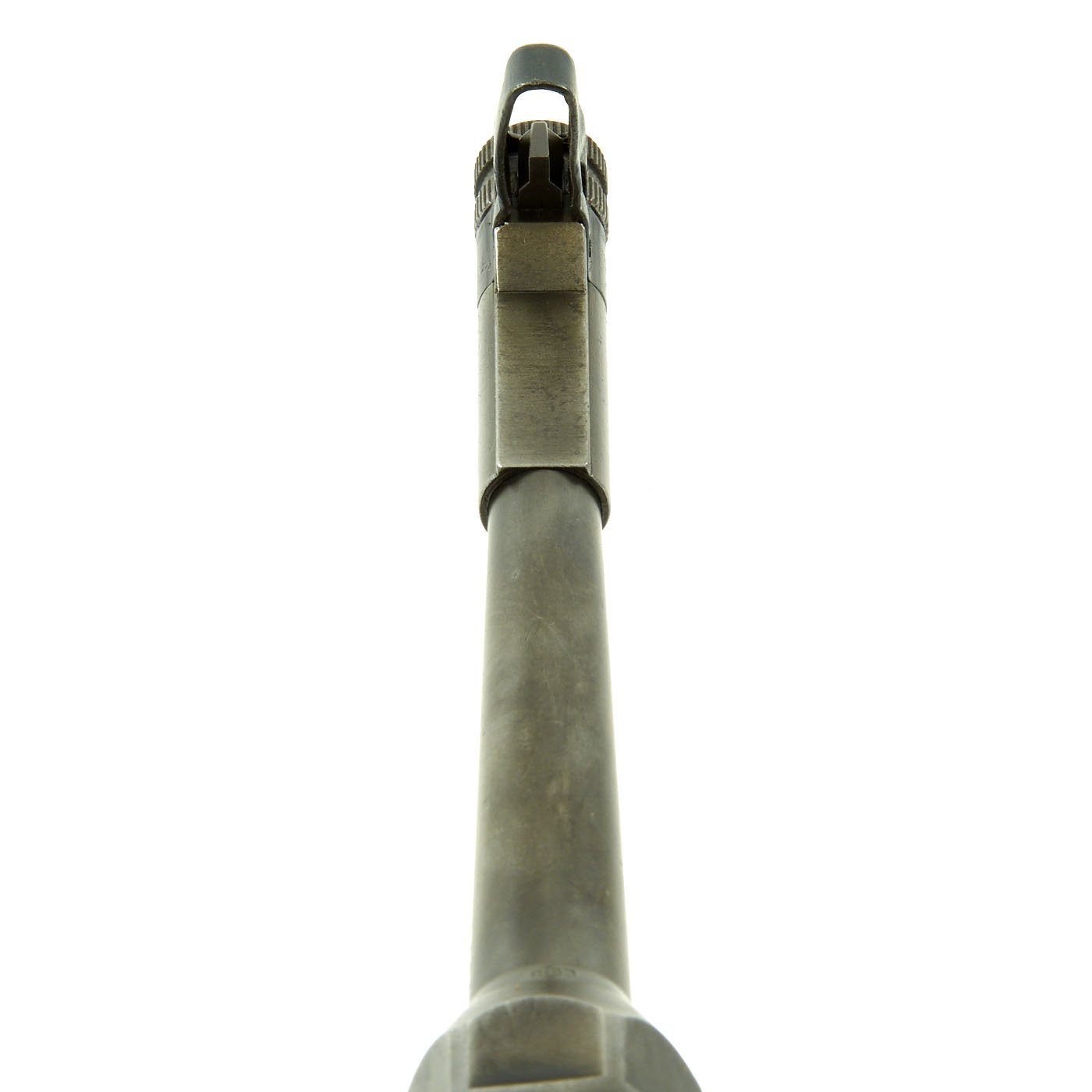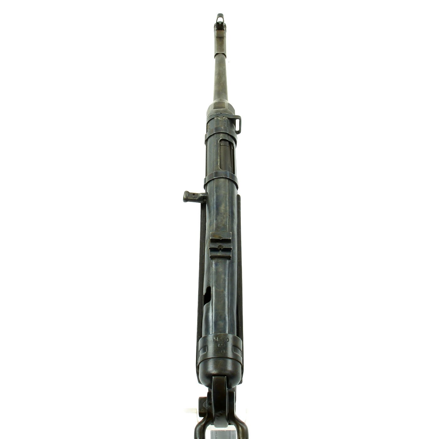 Offered with a very good original dark brown bakelite stock and grips, with a functional extending butt stock, this is the real thing that will only appreciate in value over time. All complete, simulated fixed aluminum bolt system gives the impression of an original unit and is fitted with the original safety bolt handle. The barrel is original and has not been deactivated,with an intact chamber and nice rifling in the bore. Original markings have been maintained and make a keystone item for any serious WWII collection.