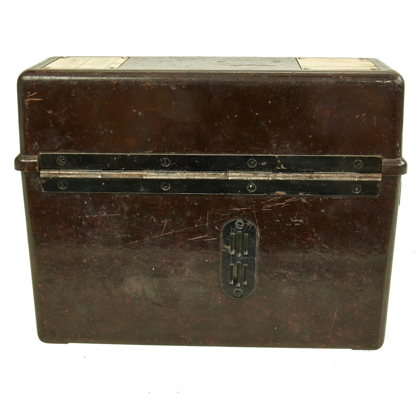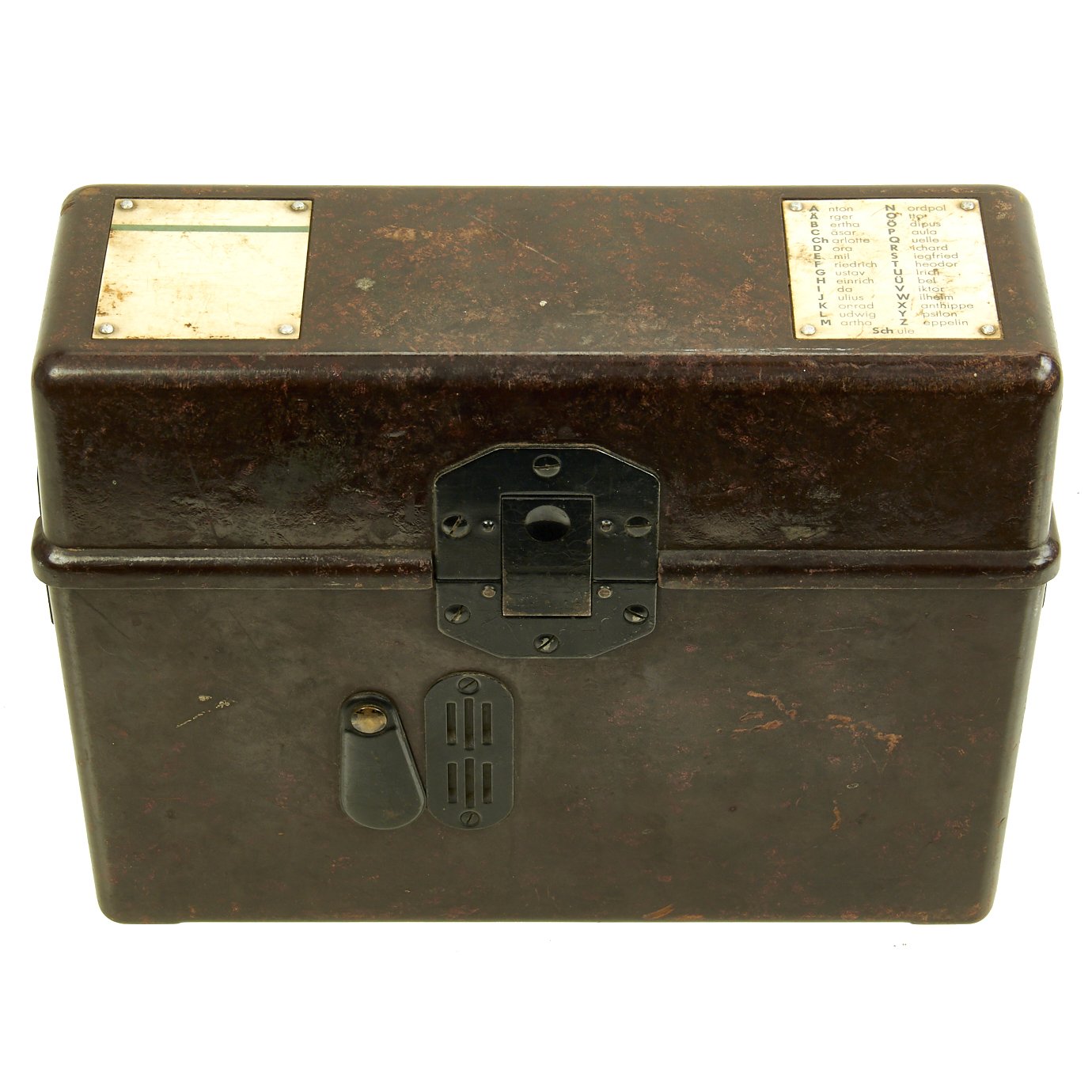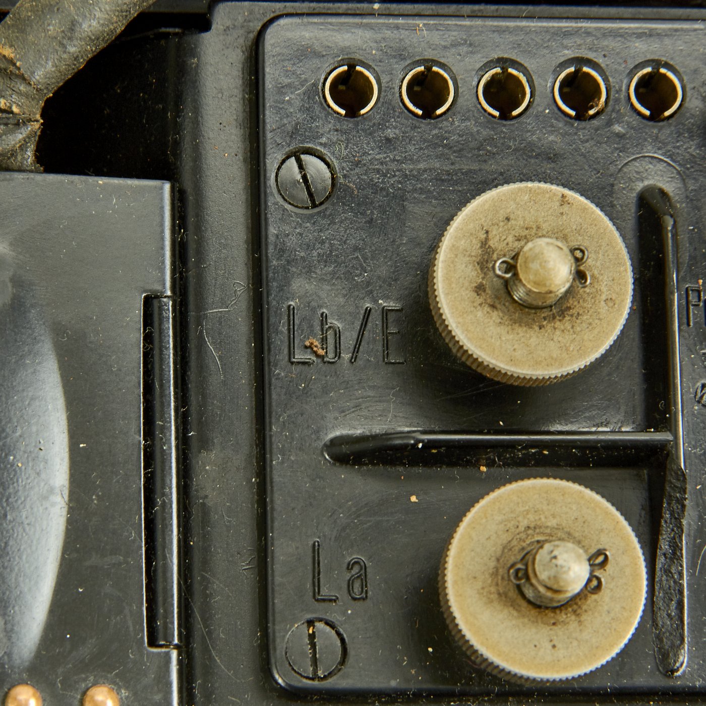 Ingeniously designed with what appears to be one traditional wartime style handset, the lid interior of one has built in electrical circuit schematics for informational purposes. Used by the German Army throughout WW2 and continued in service for another 25 years into the Cold War era.