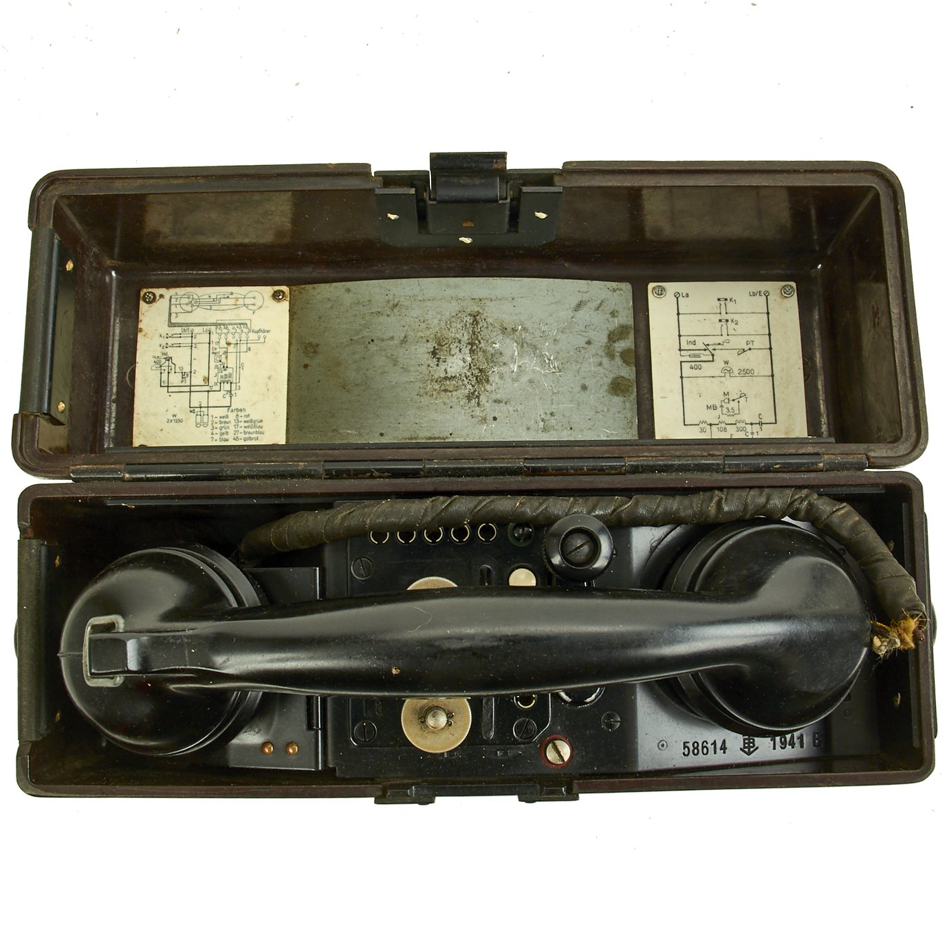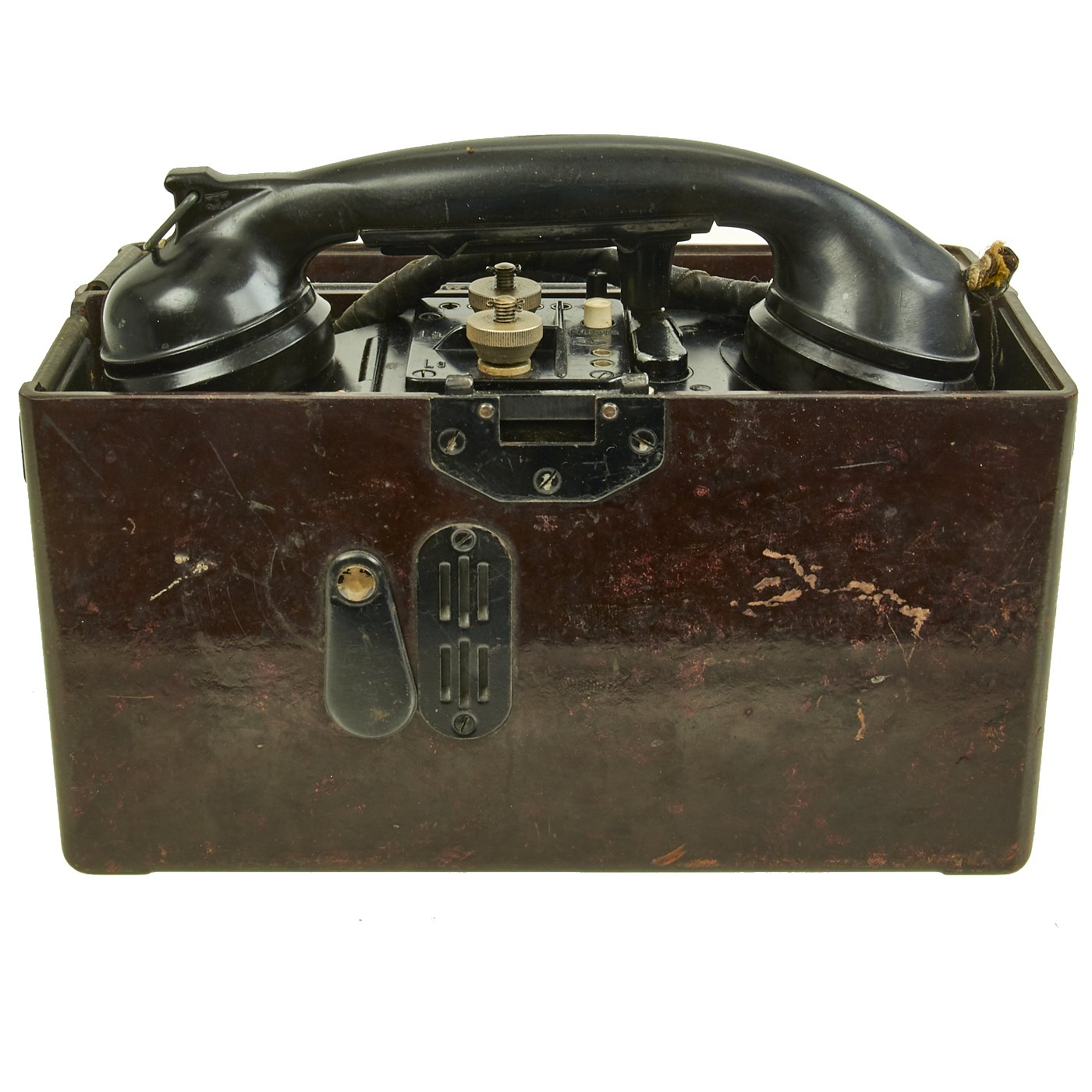Original Item: Only One Available. The feldfernsprecher (field telephone) 33 (FF33) was the standard field telephone of the German military forces of WWII. It is a general purpose field telephone designed for wired communications. It was introduced in 1933 as a modern replacement for the previous WWI legacy field telephones the last of the series being the feldfernsprecher 26 (1926). The FF33 can also be connected to the Torn. Fu. D2 and Torn. Fu. Bl, and F series radio sets to act as a remote handset.
