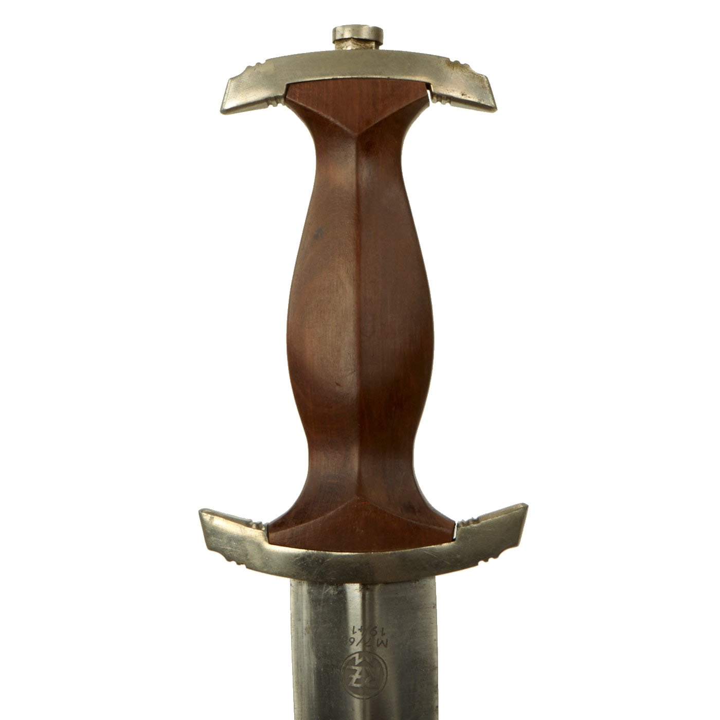 Original Item: Only One Available. This very good condition service worn mid-war period produced SA Dagger has nickel-plated fittings throughout. The crossguards and tang nut on this lovely example are nickel plated zinc alloy, and have most of the plating intact, with plating flaking and oxidation on the wear points. There is not any major chipping or dents in the fittings, just the usual effects of age.