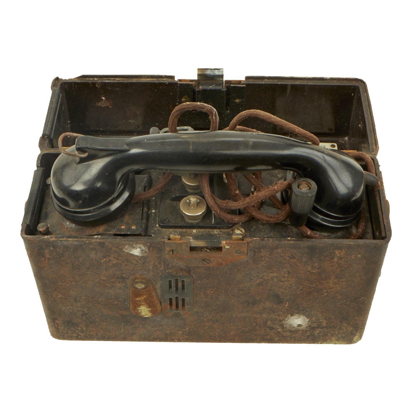 Ingeniously designed with what appears to be one traditional wartime style handset, the lid interior of one has built in electrical circuit schematics for informational purposes. Used by the German Army throughout WW2 and continued in service for another 25 years into the Cold War era.