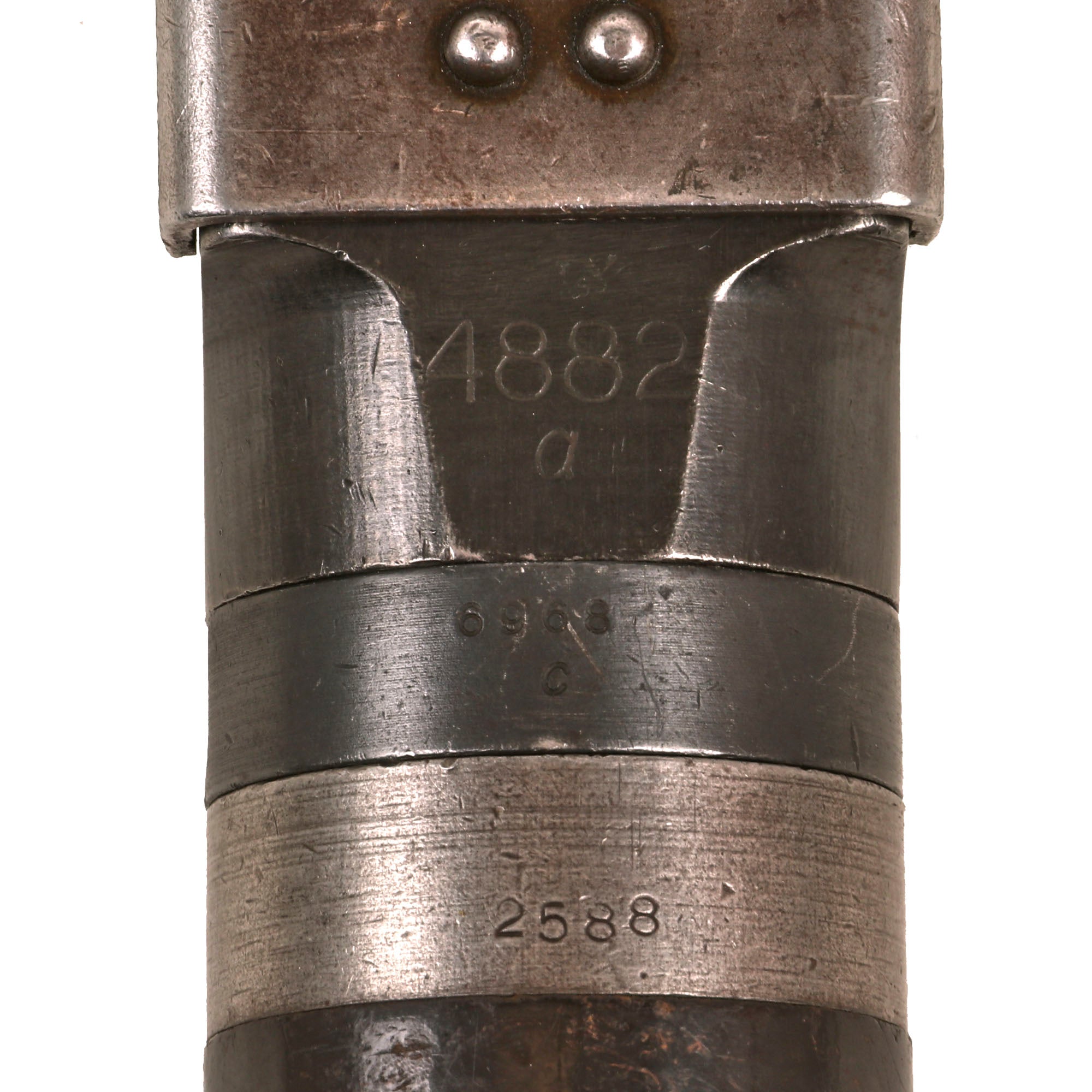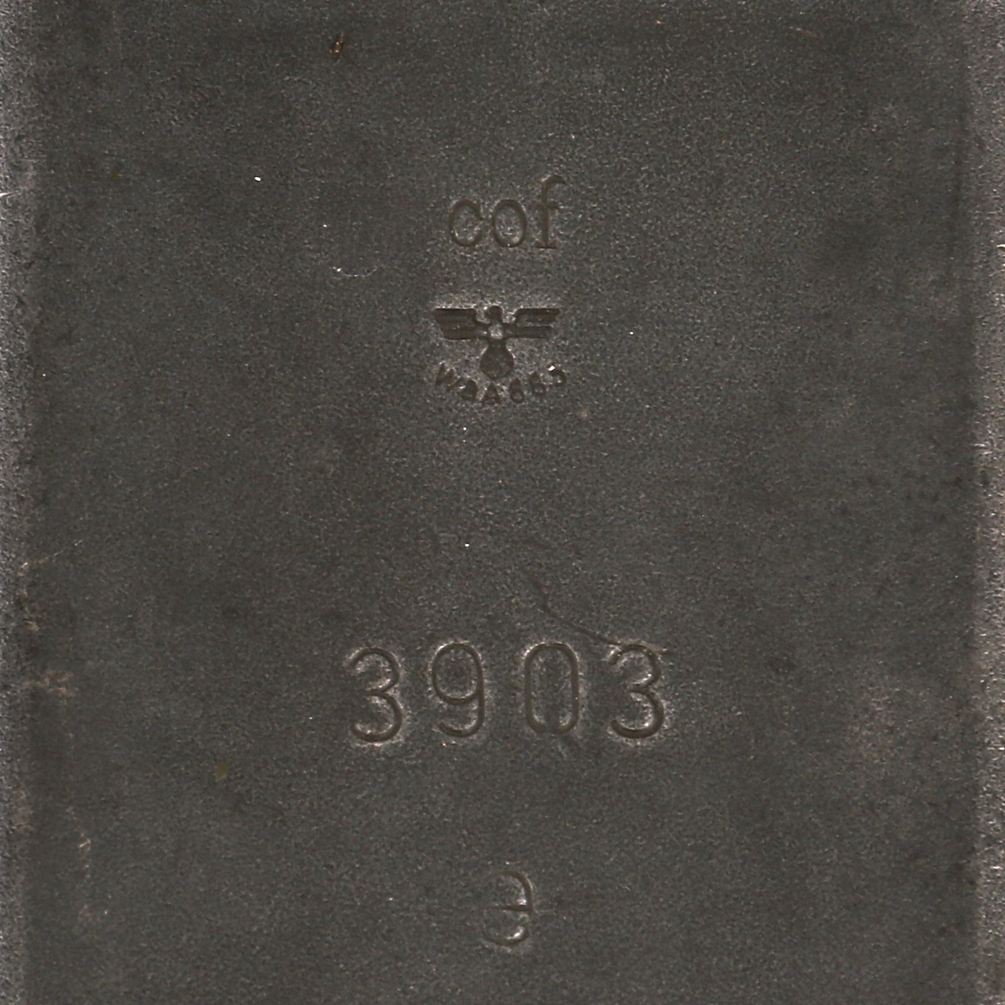 The top cover is marked with maker code cof for Carl Eickhorn of Solingen, a legendary manufacturer of edged weapons, and a known make of top covers, feed trays, and other MG 34 and 42 components. It is also marked with a Waffenamt WaA883 proof, correct for Eickhorn, and bears original serial number 3903 / e underneath. The end catch of the top cover and the bottom feed tray are also marked with cof for eickhorn, making this a nice set. The dummy receiver still bears original markings as well, even on the top under the cover. There really are some great markings on this very fine example of the most prolific German issued Light Machine gun of WWII, with lots of potential for research.