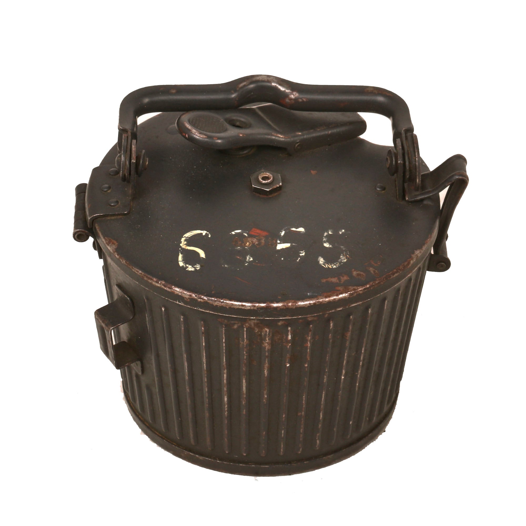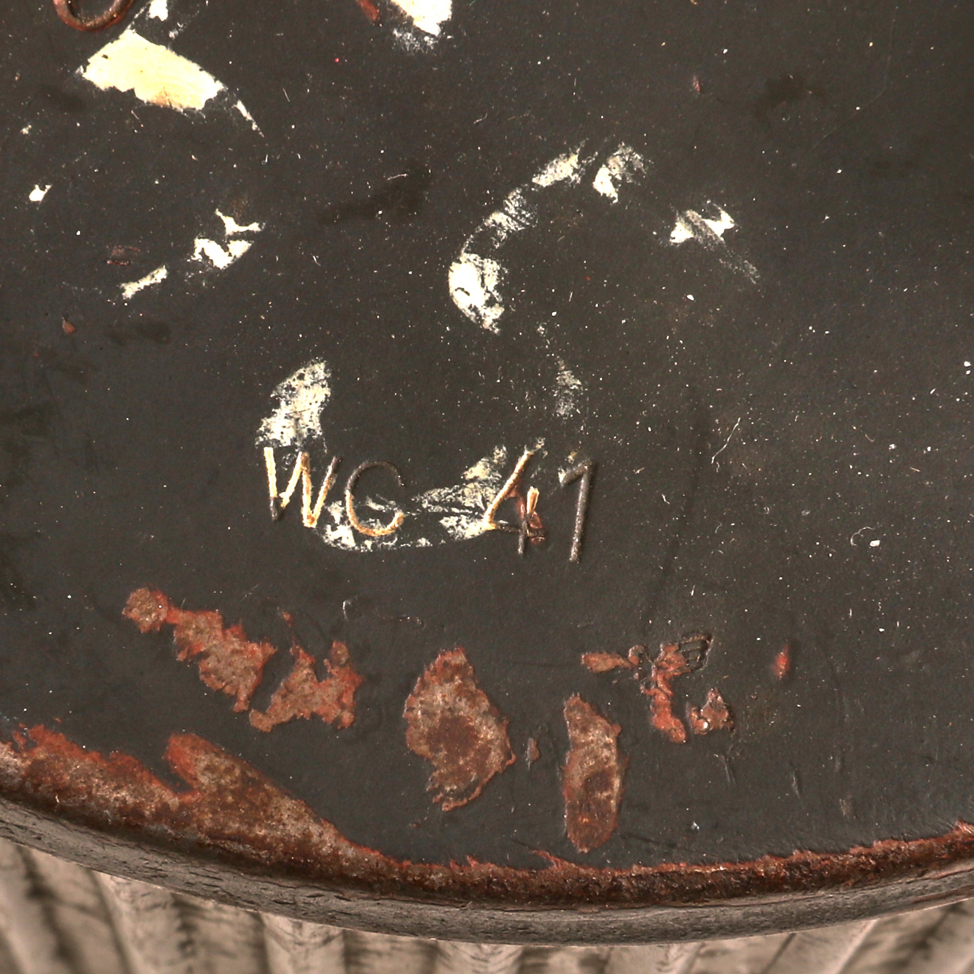 Additionally, this example comes complete with a very nice WWII basket belt carrier, which still has the original panzergrau blue gray paint with a red primer coat, showing some great wear. It is also marked on the lid with wc 41, for 1941 production by HASAG-Eisen- & Metallwerke GmbH, at the Meuselwitz plant in Thuringia. There is the correct Waffenamt proof under this marking, and inside the belt drum is also an original MG 34 belt, marked with 9. 40 / ckx on the connecting tab, for 1940 manufacture by G. Staehle K.G., Werk Hamburg-Wandsbek, a known maker of ammunition belts. It is marked with the correct Waffenamt WaA279 stamp under the make marking. The belt is in very good shape, though there is a crack on the connecting tab.