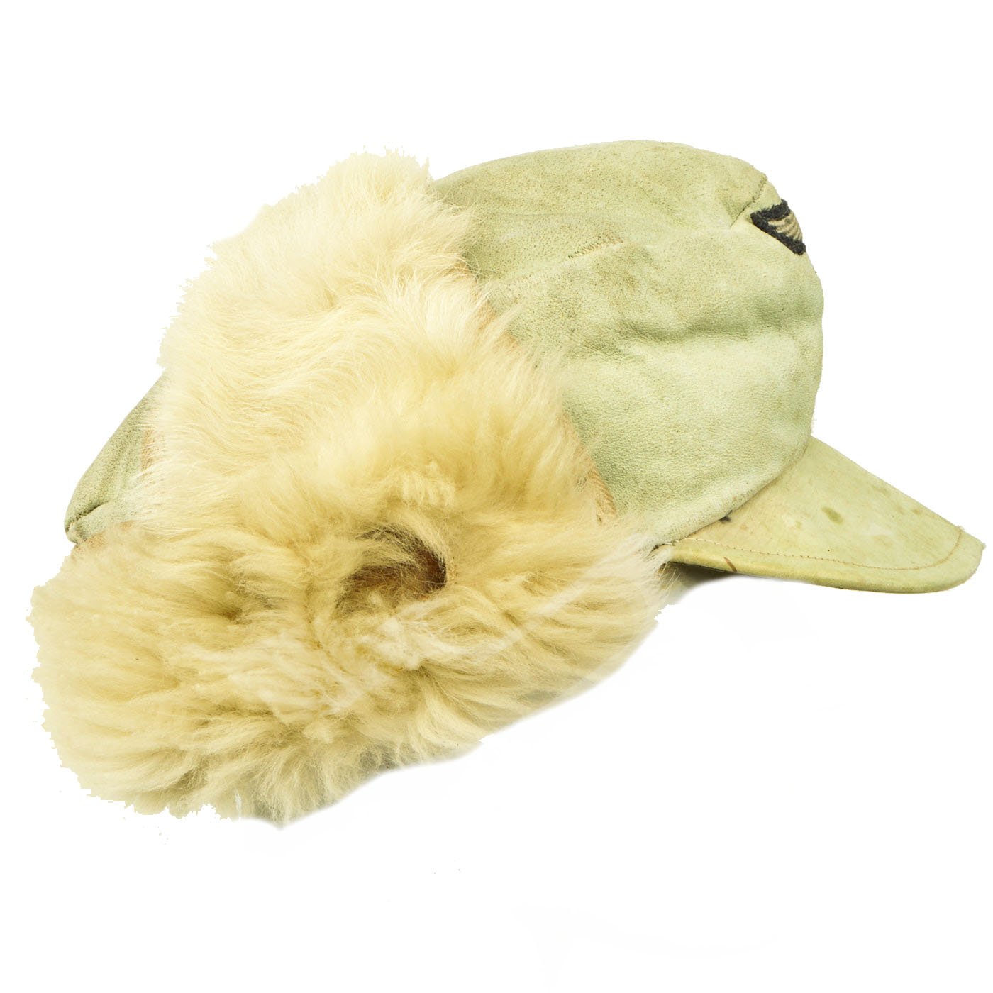 Originally Officers and senior NCO's responsible for purchasing their own uniforms and headgear were required to purchase the new winter garments until regulations of December 1942 extended the issue winter clothing to all ranks in the colder theaters of operation. Although there was no official standard model of the fur cap the most commonly encountered type followed the basic pattern of the Mountain and M43 caps with fold down back and side panels designed to protect the wearers ears and neck.