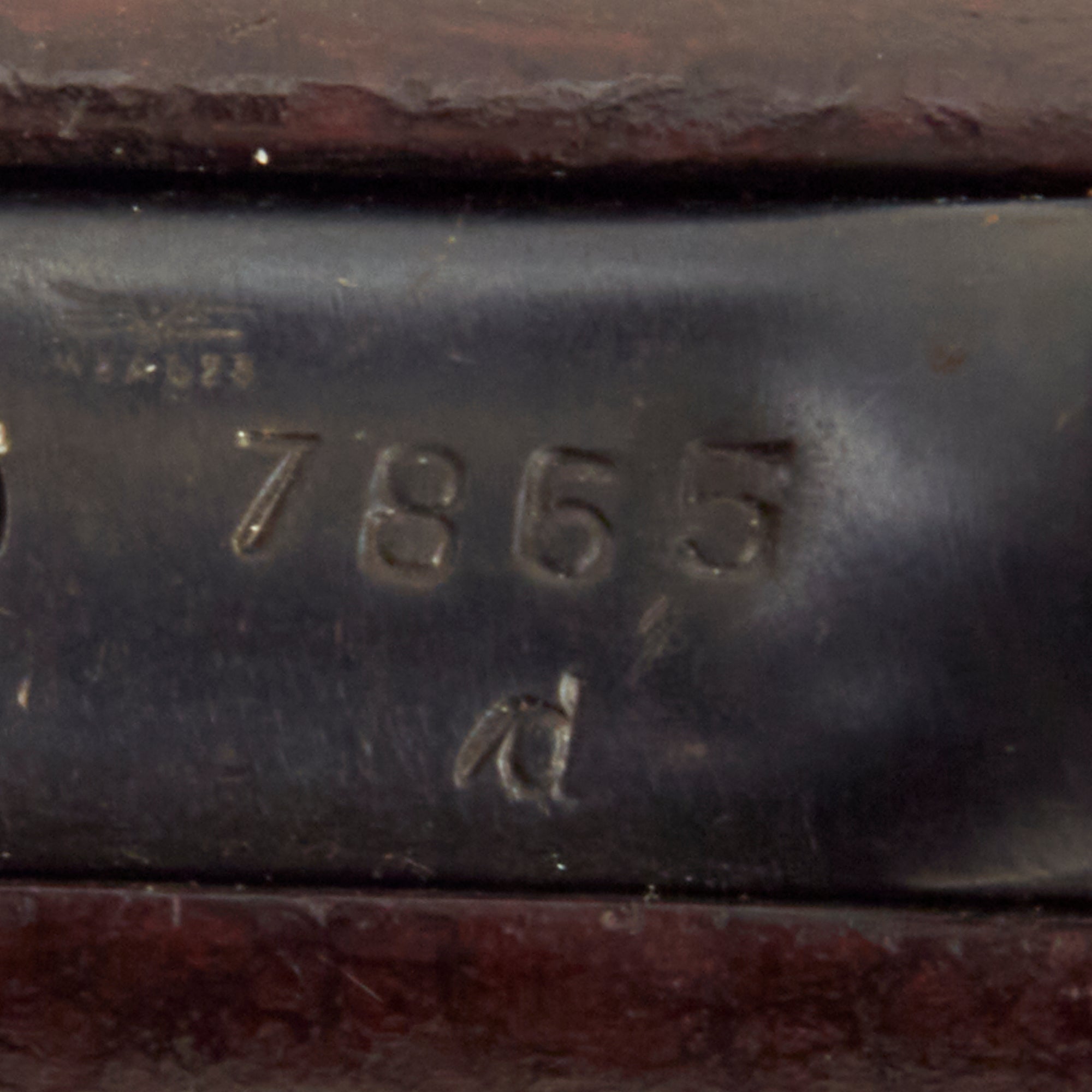 The included original sling is in good service used condition, and while the original markings are gone, it is definitely original. It has the correct knurling on the inside of the buckle to help hold the leather securely, and the buckle slider and outer housing are completely correct. The leather still shows lots of the original cross hatched texture on the outside.