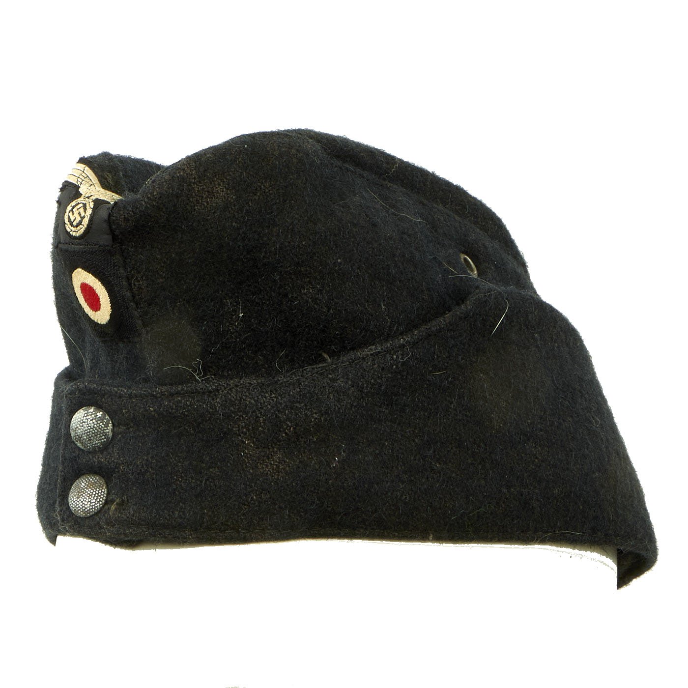 Original Item: Only One Available. This is a very good service used example of a German WWII Heer Panzer EM-NCO M42 overseas or field cap ( Feldmütze). This version bridged the gap between the M38 "Schiffchen" and the later Bergmütze (mountain cap) derived M43 field cap. It has the overall shape of the M38, but the pull-down neck and ear cover from the M43. These are extremely rare, and were not made in any large numbers.