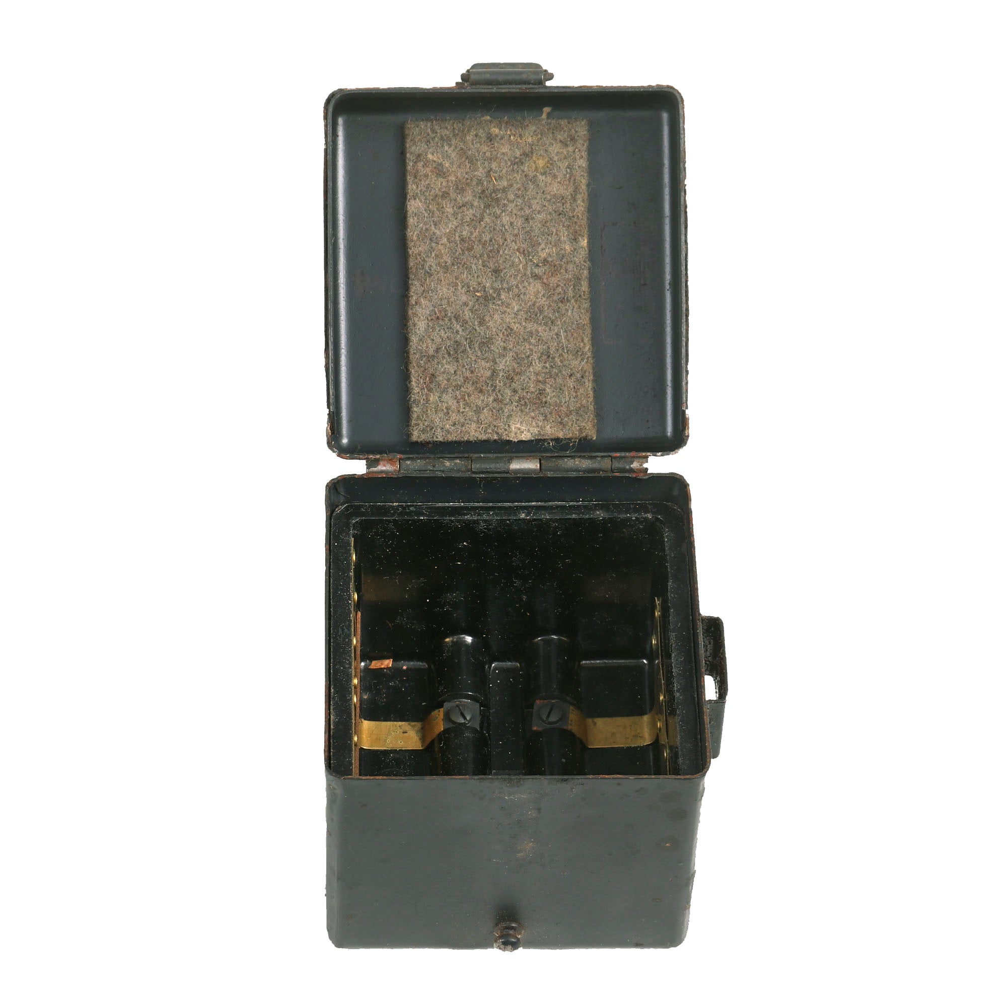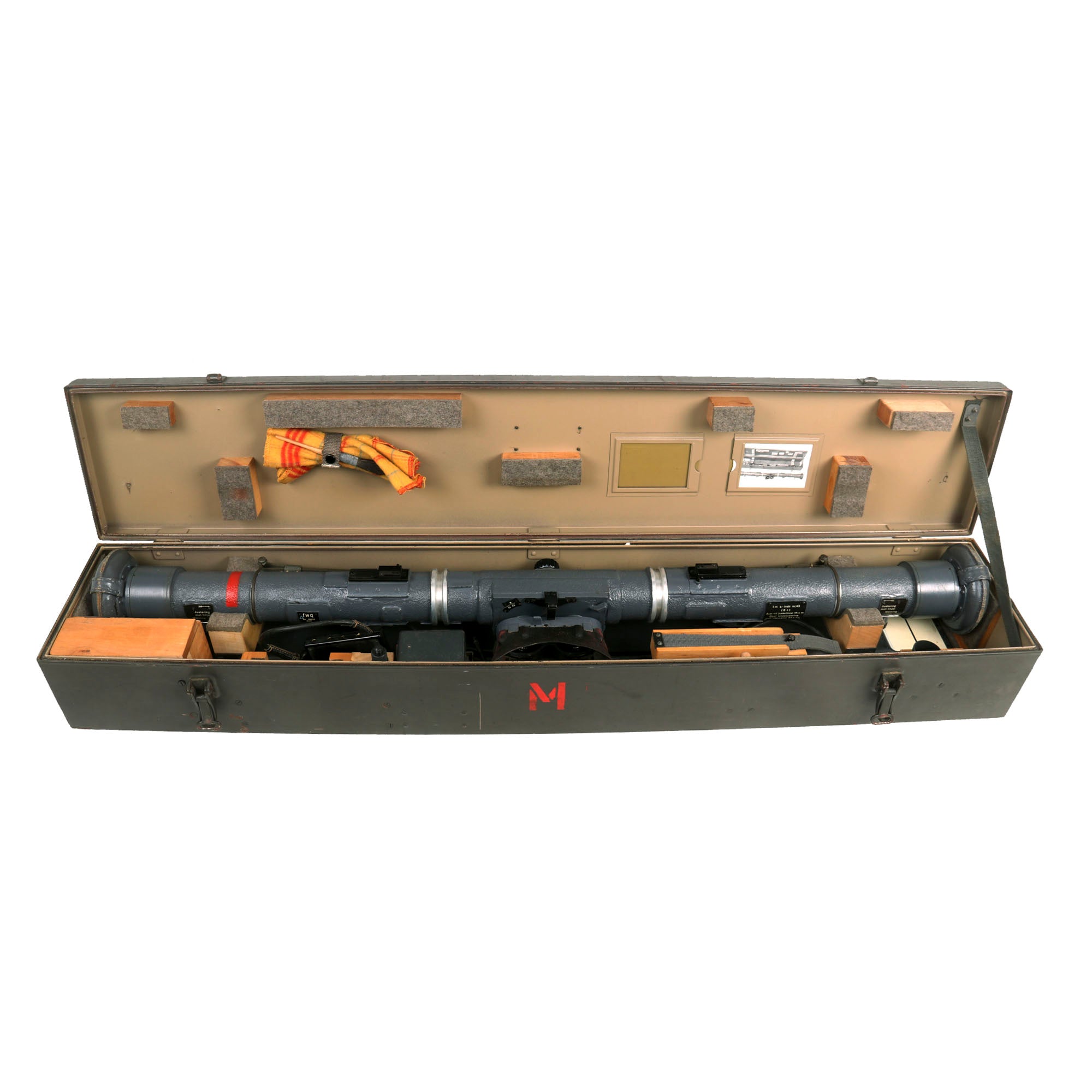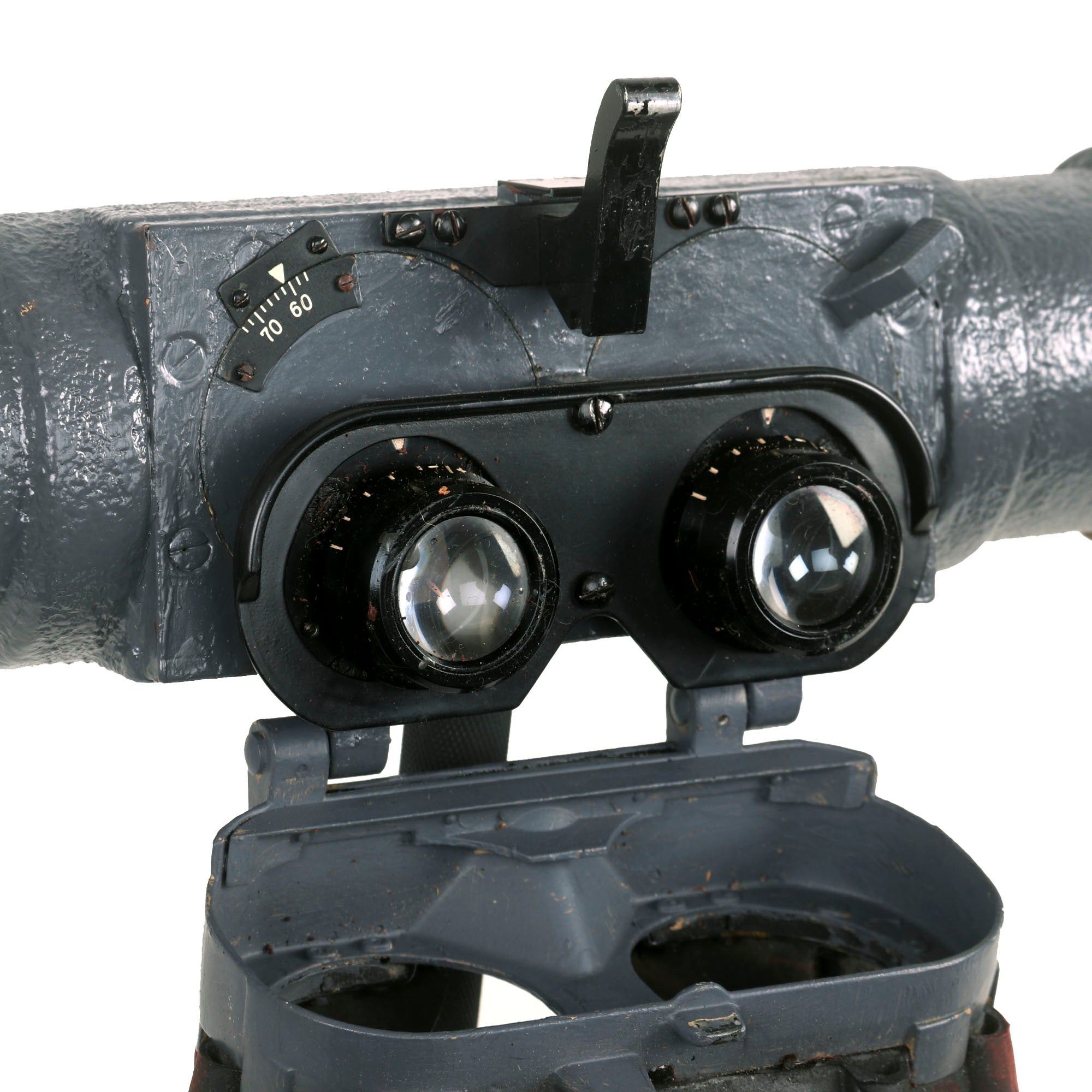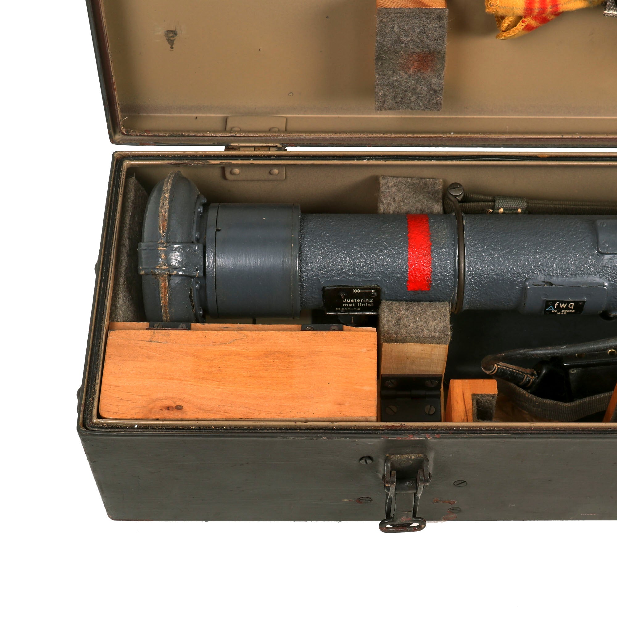 Original Items: Only One Set Available. This is an excellent example of a German WWII Entfernungsmesser 1-meter Raumbild 36 (1936) or "Em 1m R36" rangefinder, complete in its original transit chest. This model was one of the most widely used optical rangefinders in the German Wehrmacht during WWII. In the words of one German source, "A light rangefinder for all branches of the service, especially suitable for moving targets on the ground and in the air". The markings on the rangefinder and chest indicate that it was made for Sweden as their M/43 rangefinder, and all of the data plates on the rangefinder itself are in Swedish.