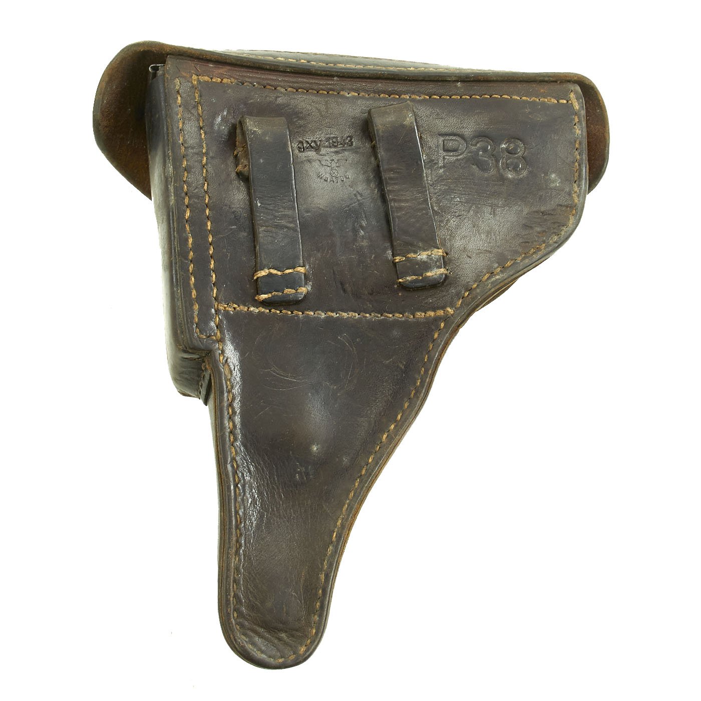 The Walther Pistole 38 (P.38) pistol was first introduced in 1938 as a replacement for the P.08. The P.38 was a more cost-efficient and more reliable in war conditions such as mud and rain. The P.08 was a typical prewar German gun, over engineered to perfection, with a sensitive toggle breech system that would malfunction when dirt was involved. The P.38 was a workhorse that did just what it was meant to do. It could handle most harsh battlefield conditions and as such the closed hardshell holster was discontinued later in the war and replaced for a partially open softshell holster. During the War close around 900,000 were produced, so the holsters were also produced in large quantities.
