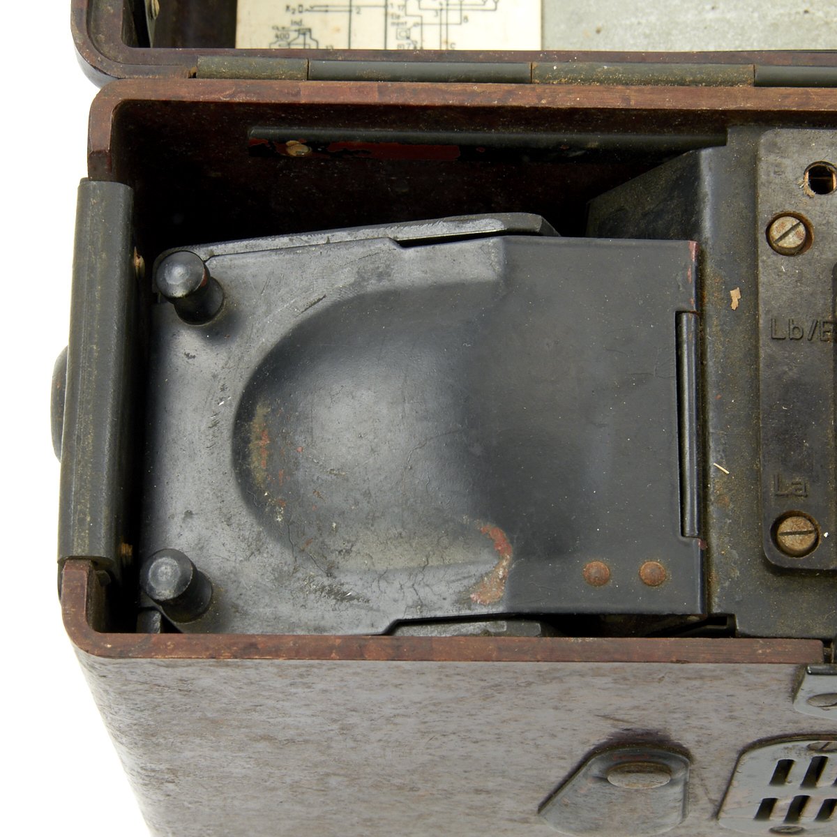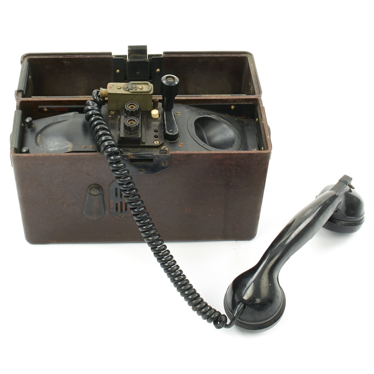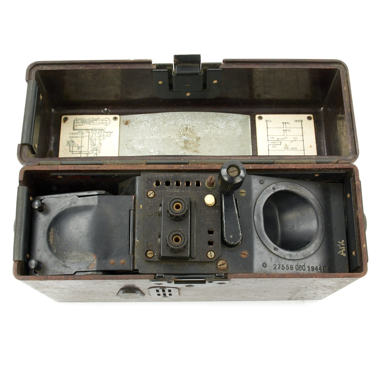 Ingeniously designed with what appears to be one traditional wartime style handset, the lid interior of one has built in electrical circuit schematics for informational purposes. Used by the German Army throughout WW2 and continued in service for another 25 years into the Cold War era.
