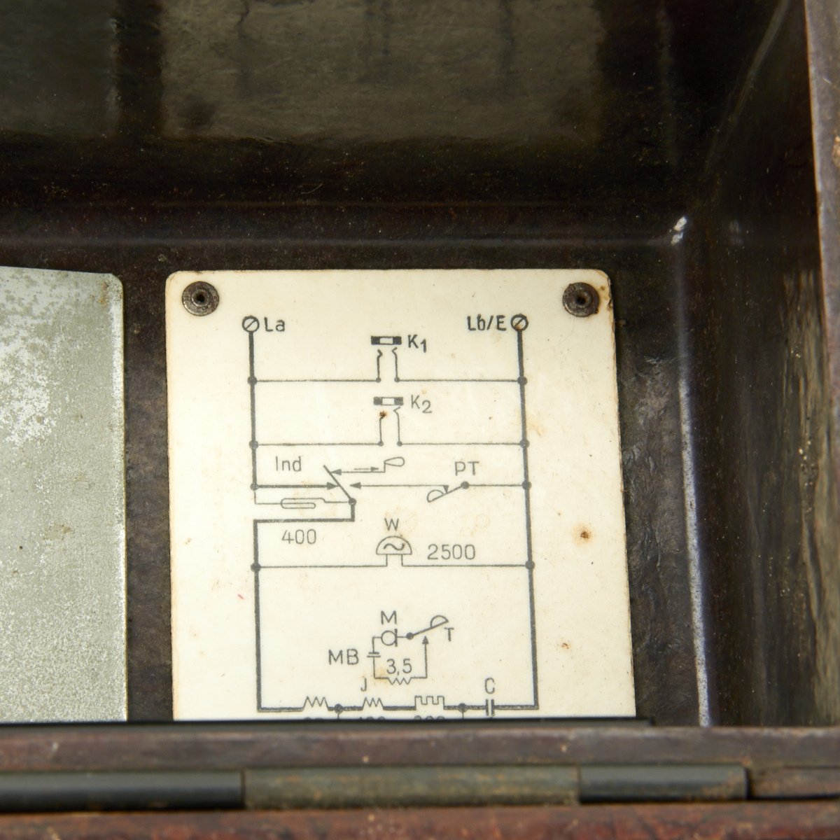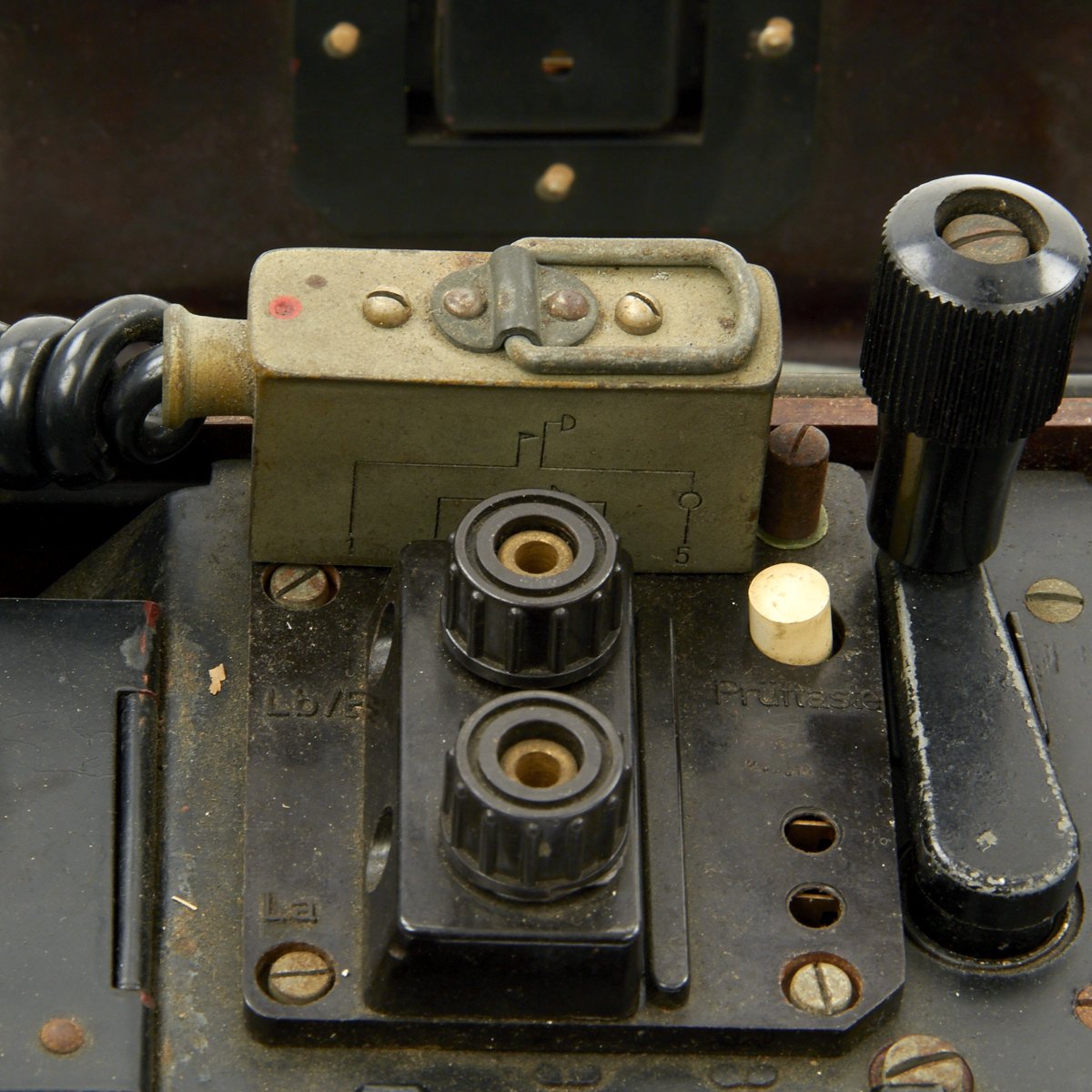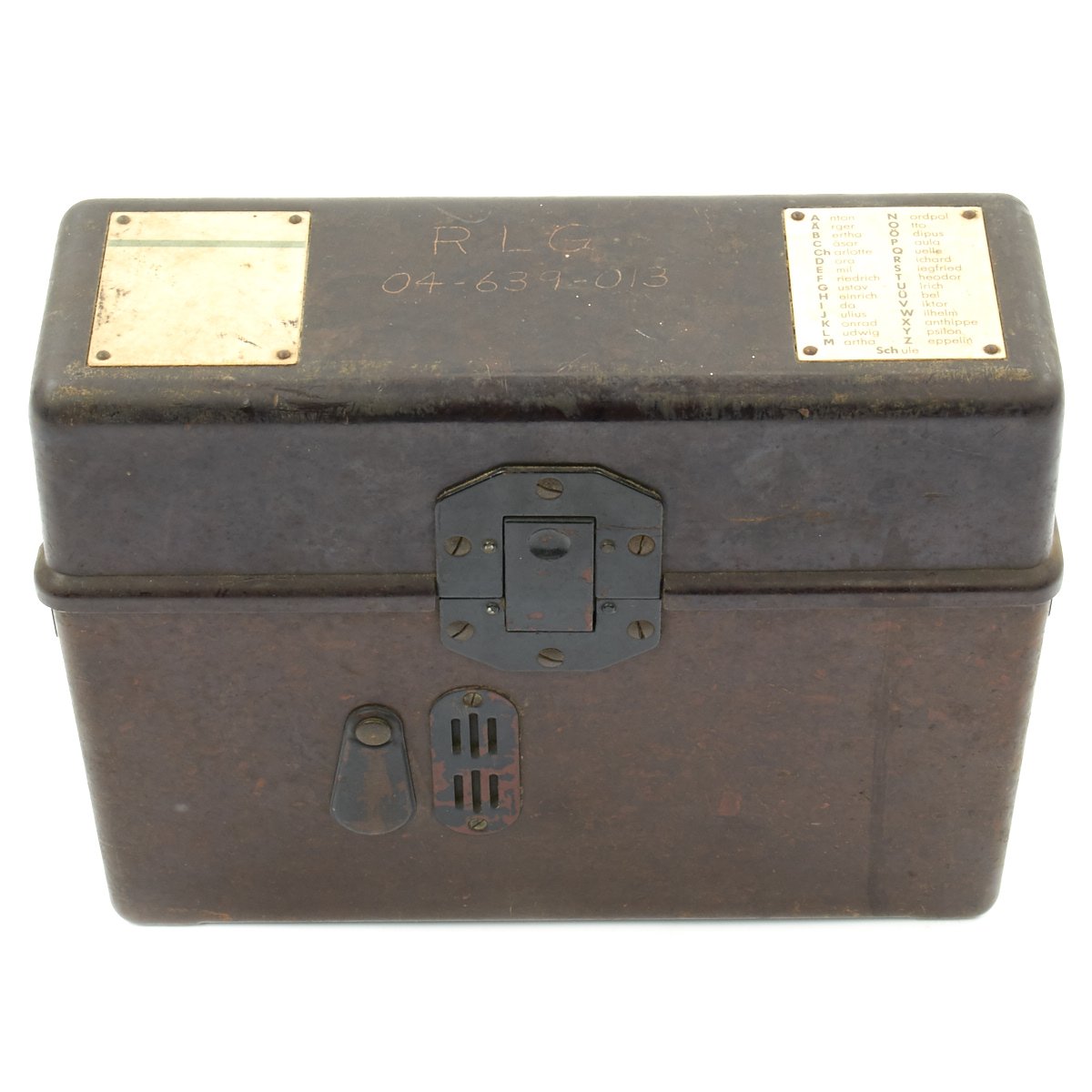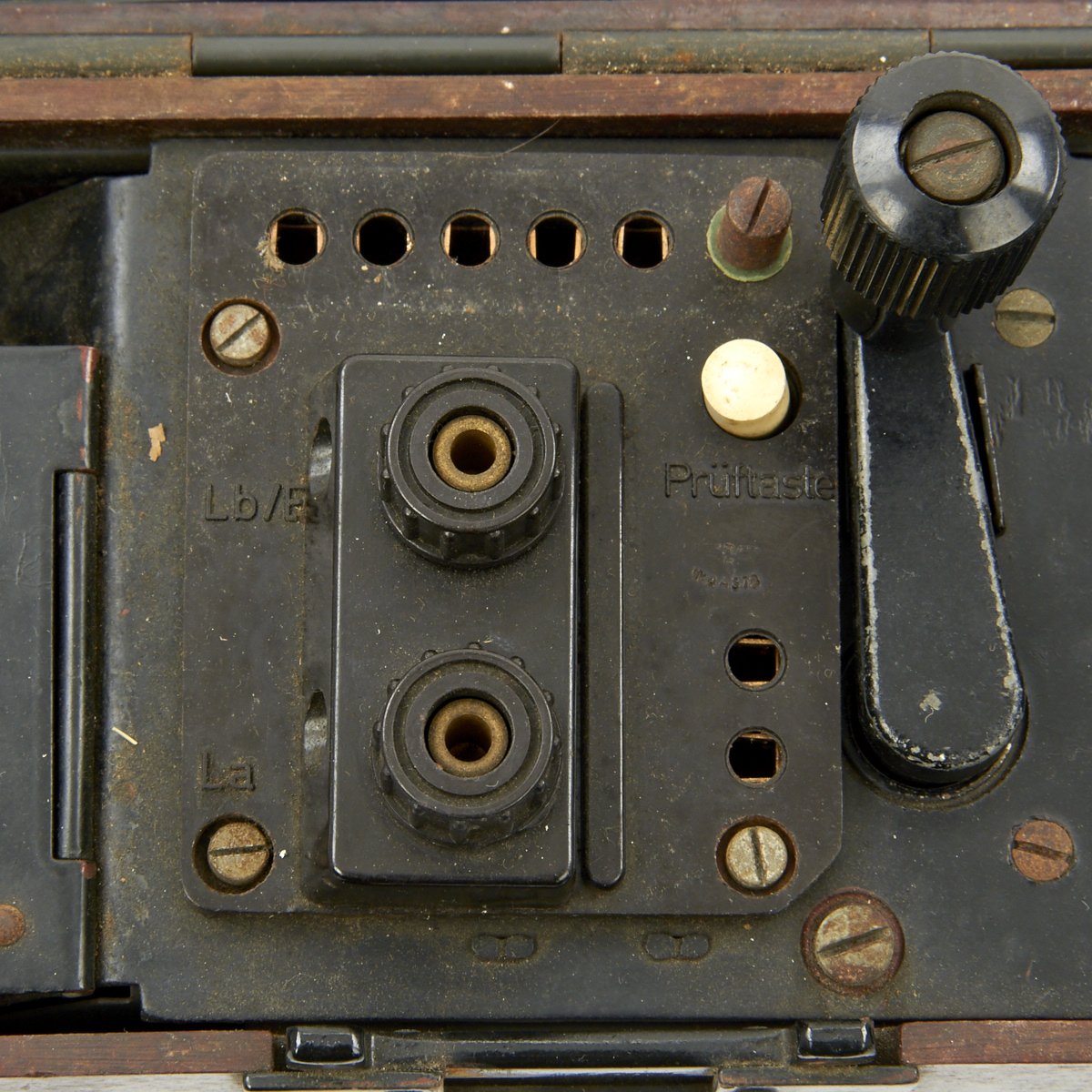 Ingeniously designed with what appears to be one traditional wartime style handset, the lid interior of one has built in electrical circuit schematics for informational purposes. Used by the German Army throughout WW2 and continued in service for another 25 years into the Cold War era.