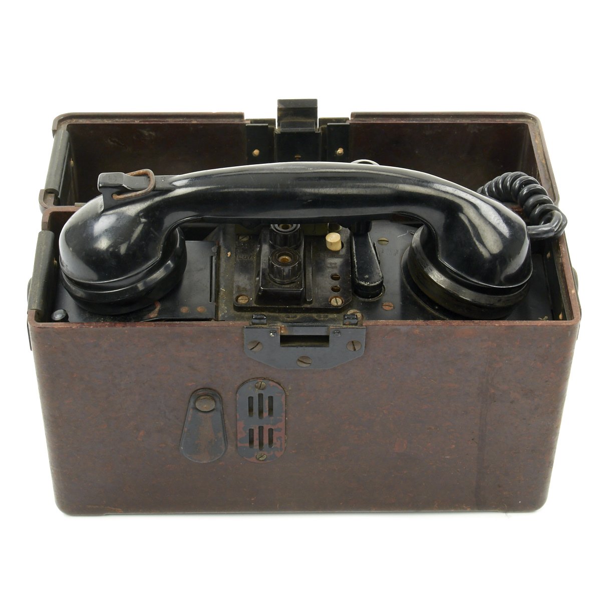 Original Item: Only One Available. The feldfernsprecher 33 (FF33) was the standard field telephone of the German military forces of WWII. It is a general purpose field telephone designed for wired communications. It was introduced in 1933 as a modern replacement for the previous WWI legacy field telephones the last of the series being the feldfern-sprecher 26 (1926). The FF33 can also be connected to the Torn. Fu. D2 and Torn. Fu. Bl, and F series radio sets to act as a remote handset.