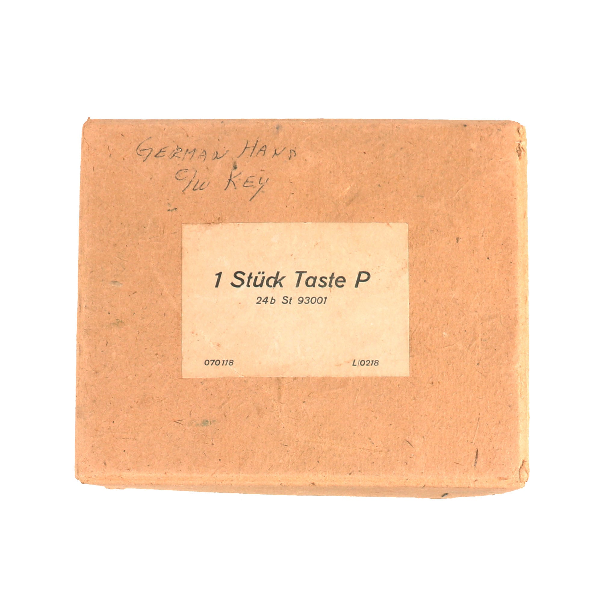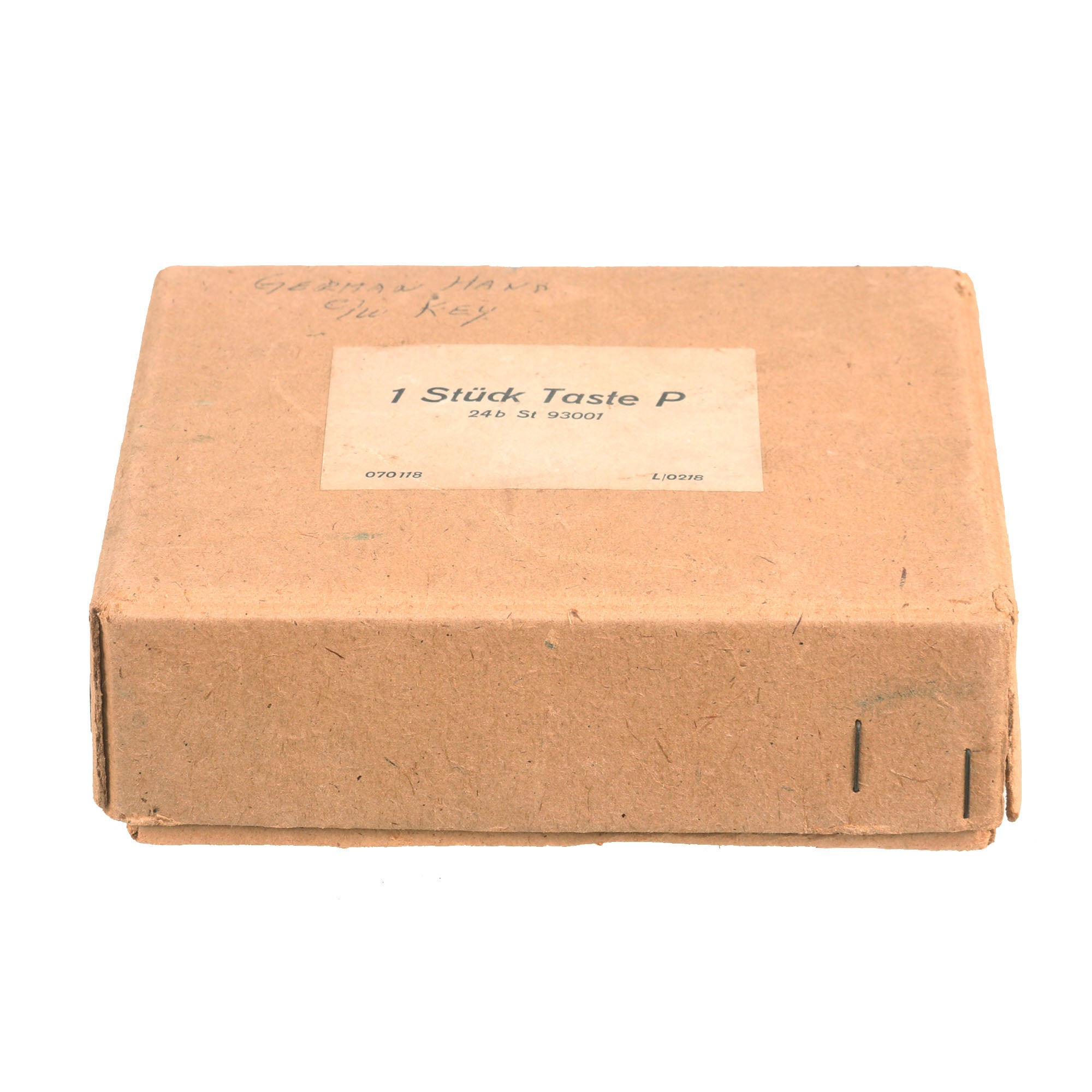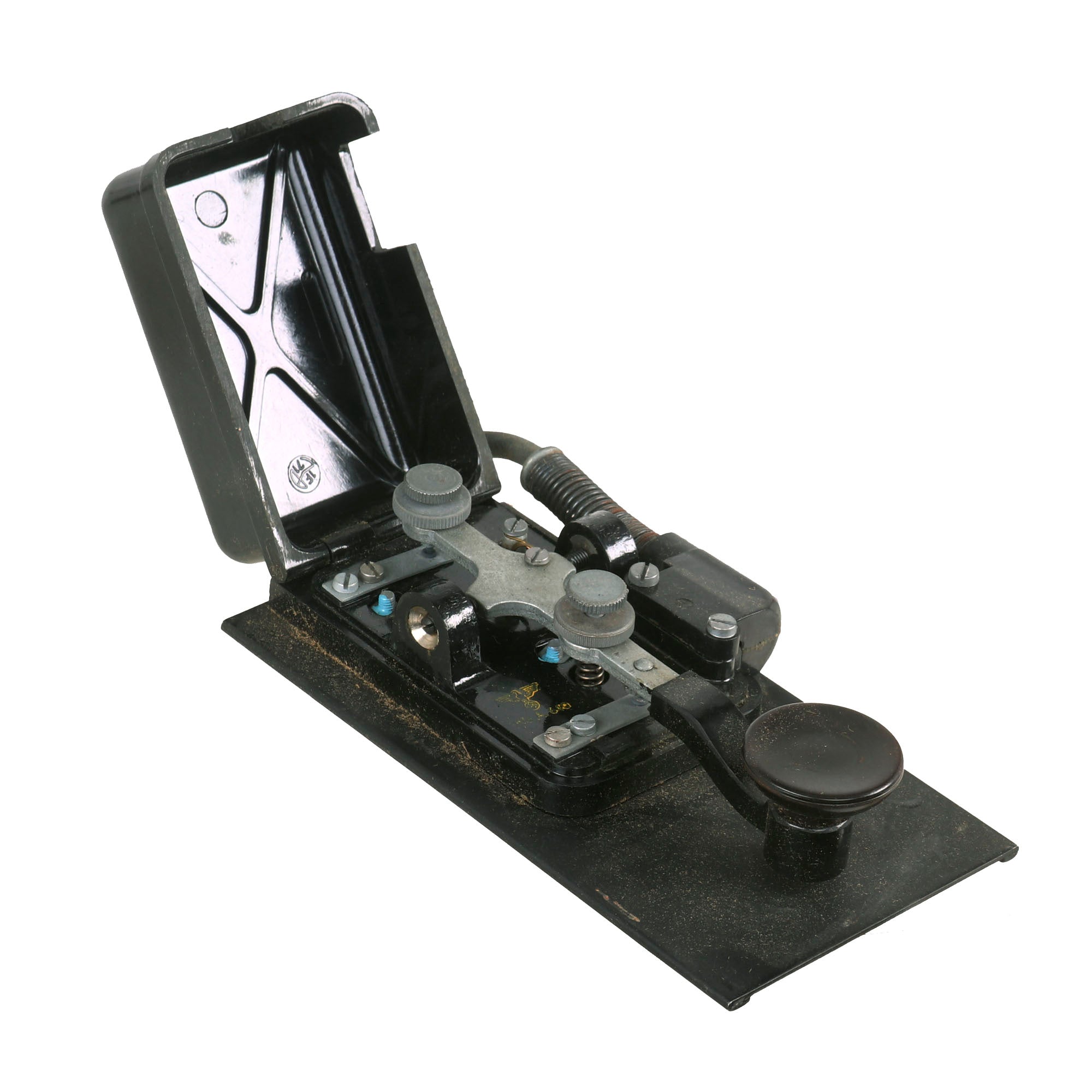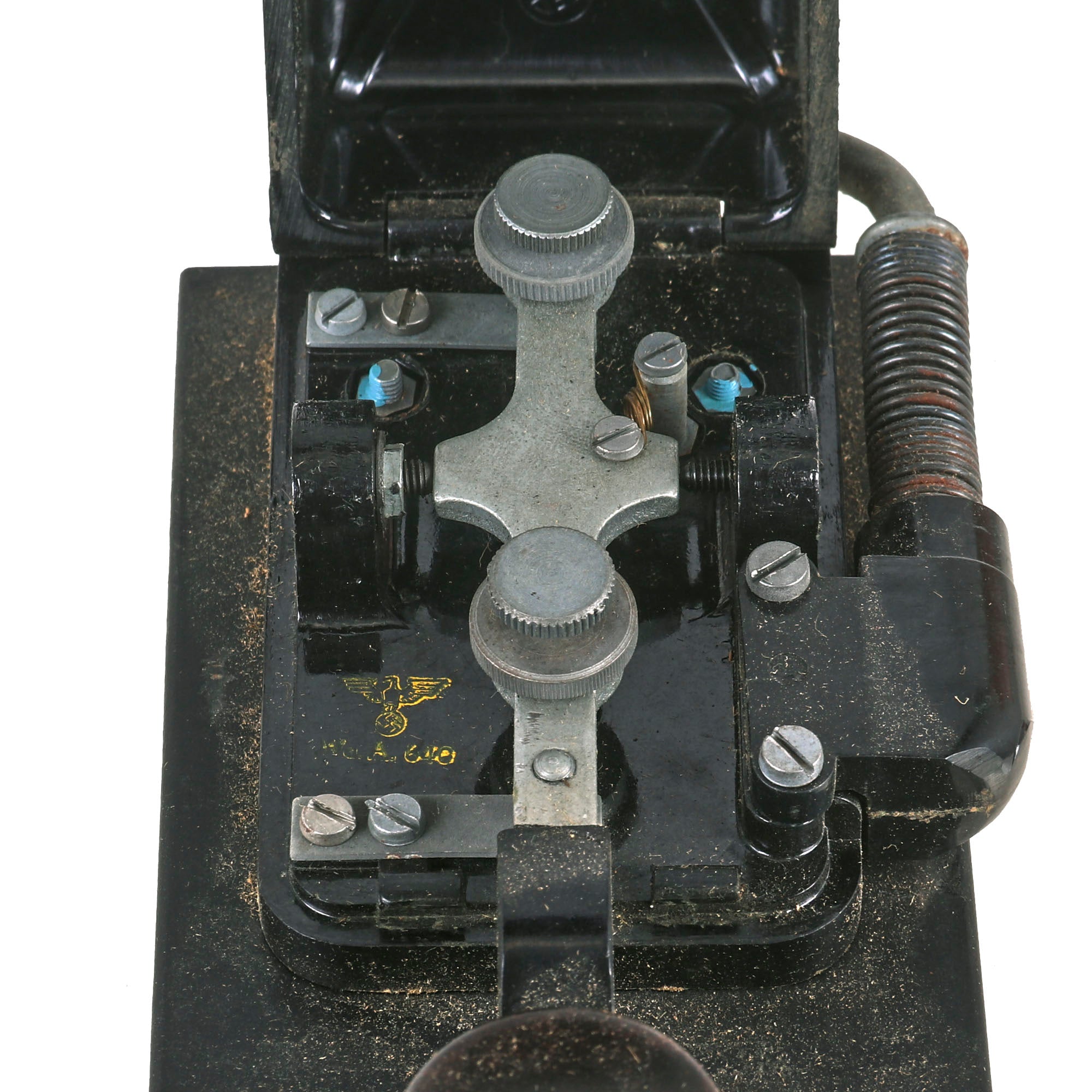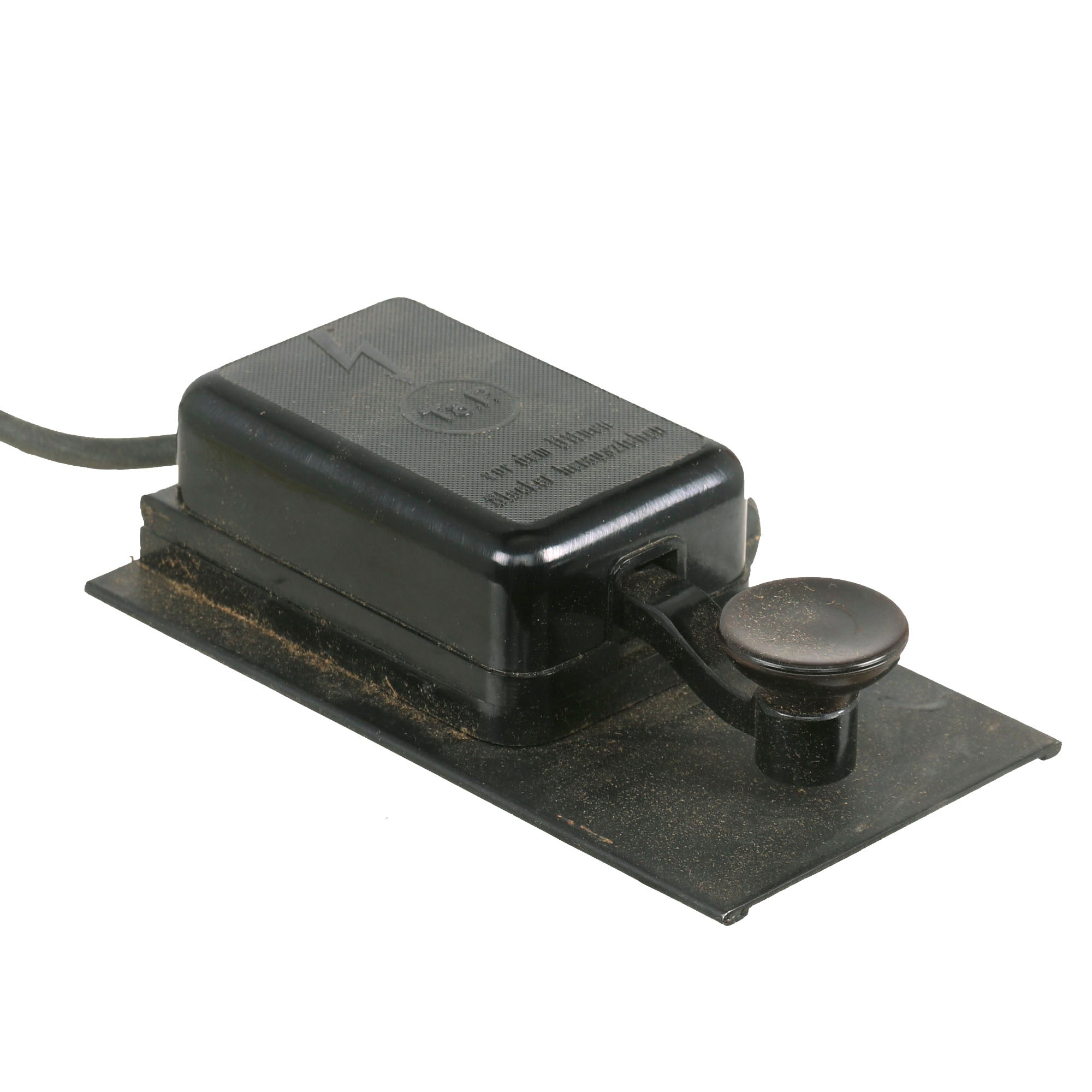 Original Item: Only One Available. This is a very nice German manufactured 1944 dated Morse Code key which reads on the bakelite cover: Vor dem offnen stecker herausziehen (Unplug before opening). It is complete with cord, functional plunger, and its original box.