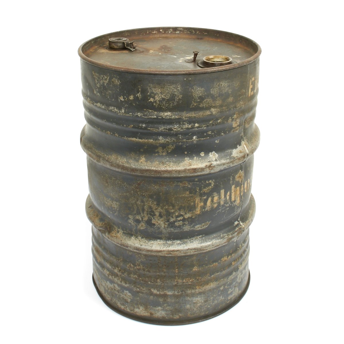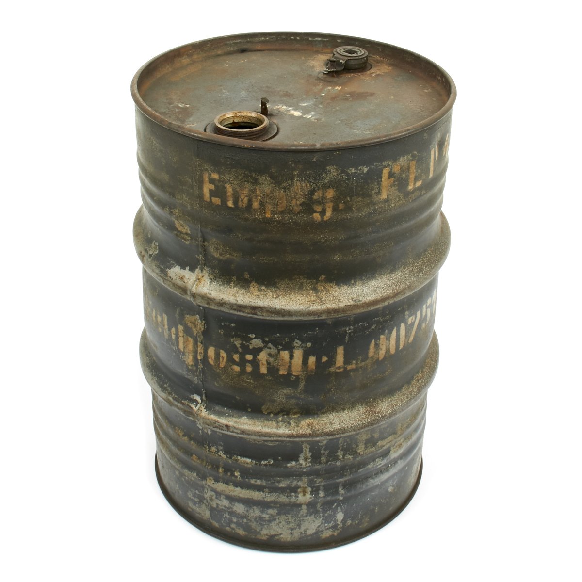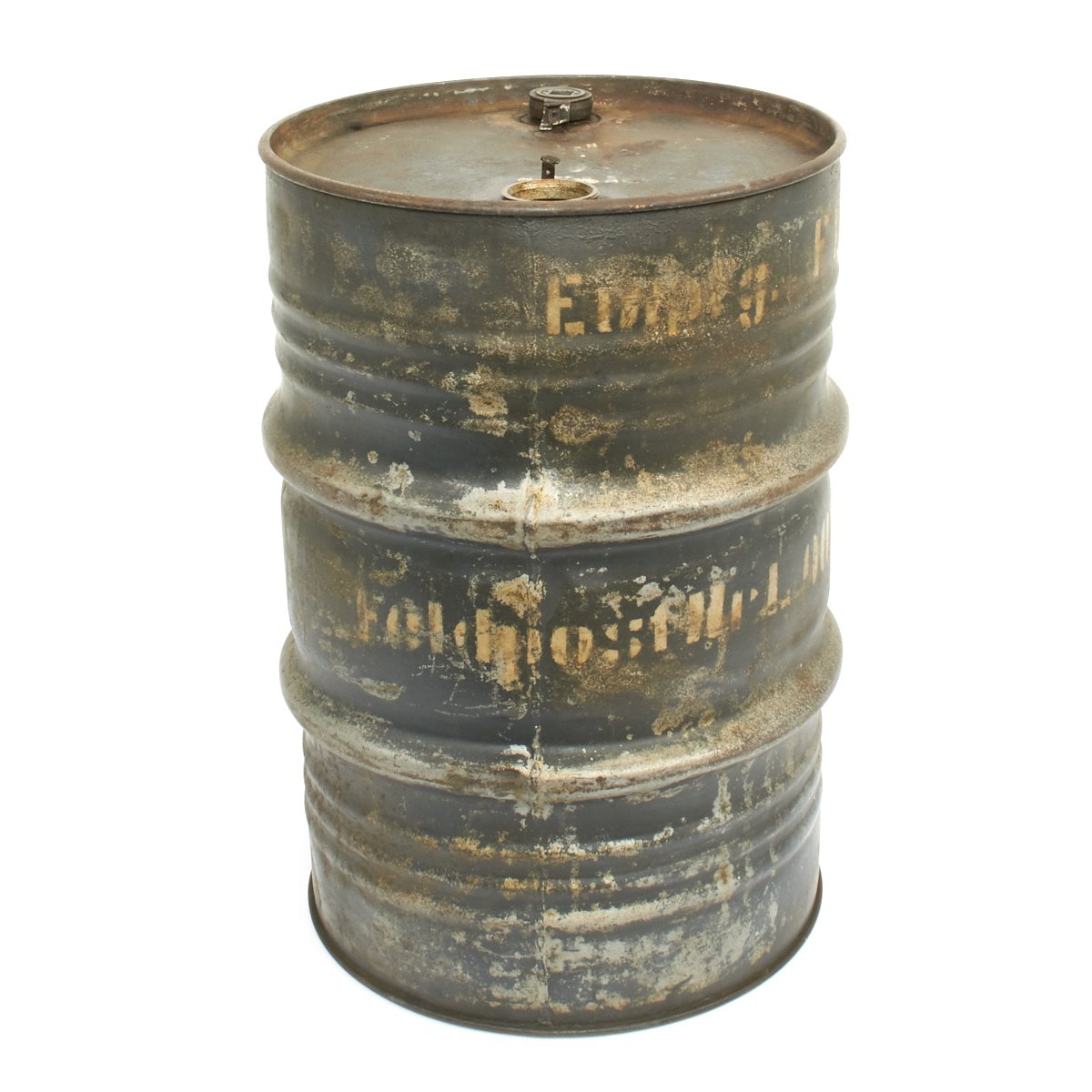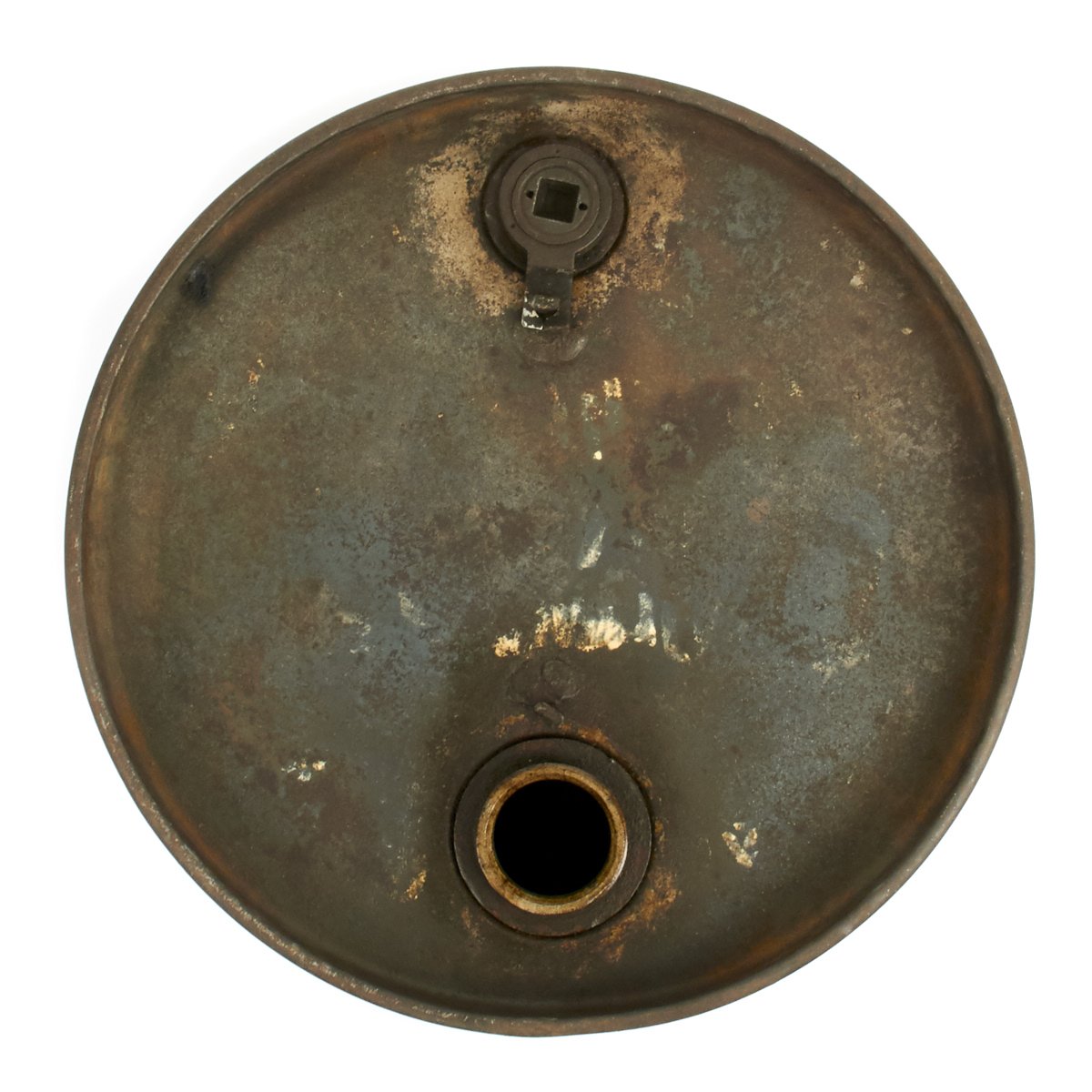 Bears original German WW2 Luftwaffe gray/blue paint with white stenciling that may be Norwegian postwar as we can make out what appears to be the word Oslo. Can is missing primary cap but retains the vent cap. Overall condition is very good with some dents, dings and scratches.