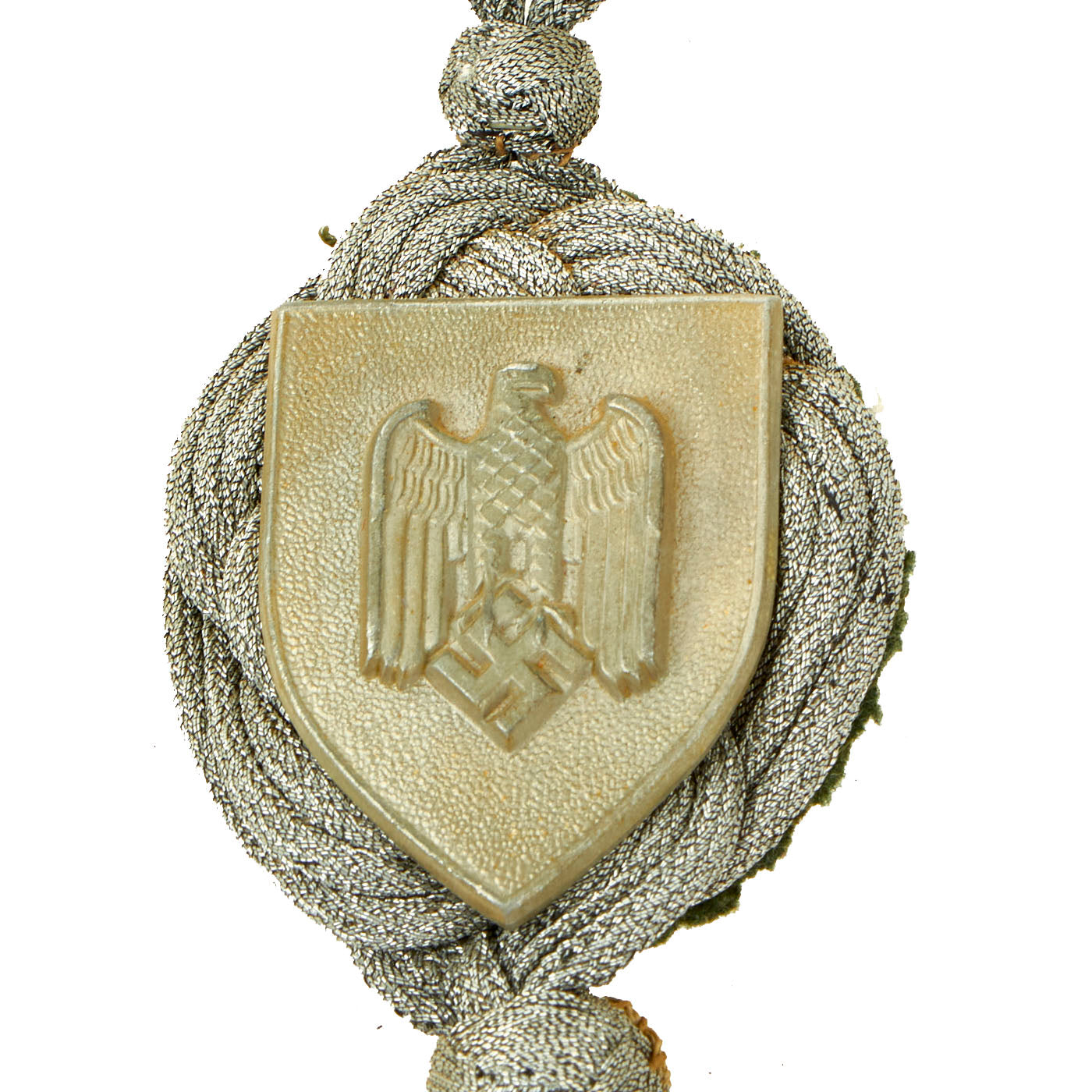 Original Item: Only One Available. Like many other armies, the German armed forces spent a considerable amount of time training how to improve the accuracy of firing their small arms. An award was developed to recognize individuals who excelled in shooting. The Marksmanship lanyard was instituted on June 29th of 1936 through an executive order signed by AH. The shooting lanyard award was attached to the uniform by placing one of the loops on the button of the shoulder board and the other end on the button of the jacket.