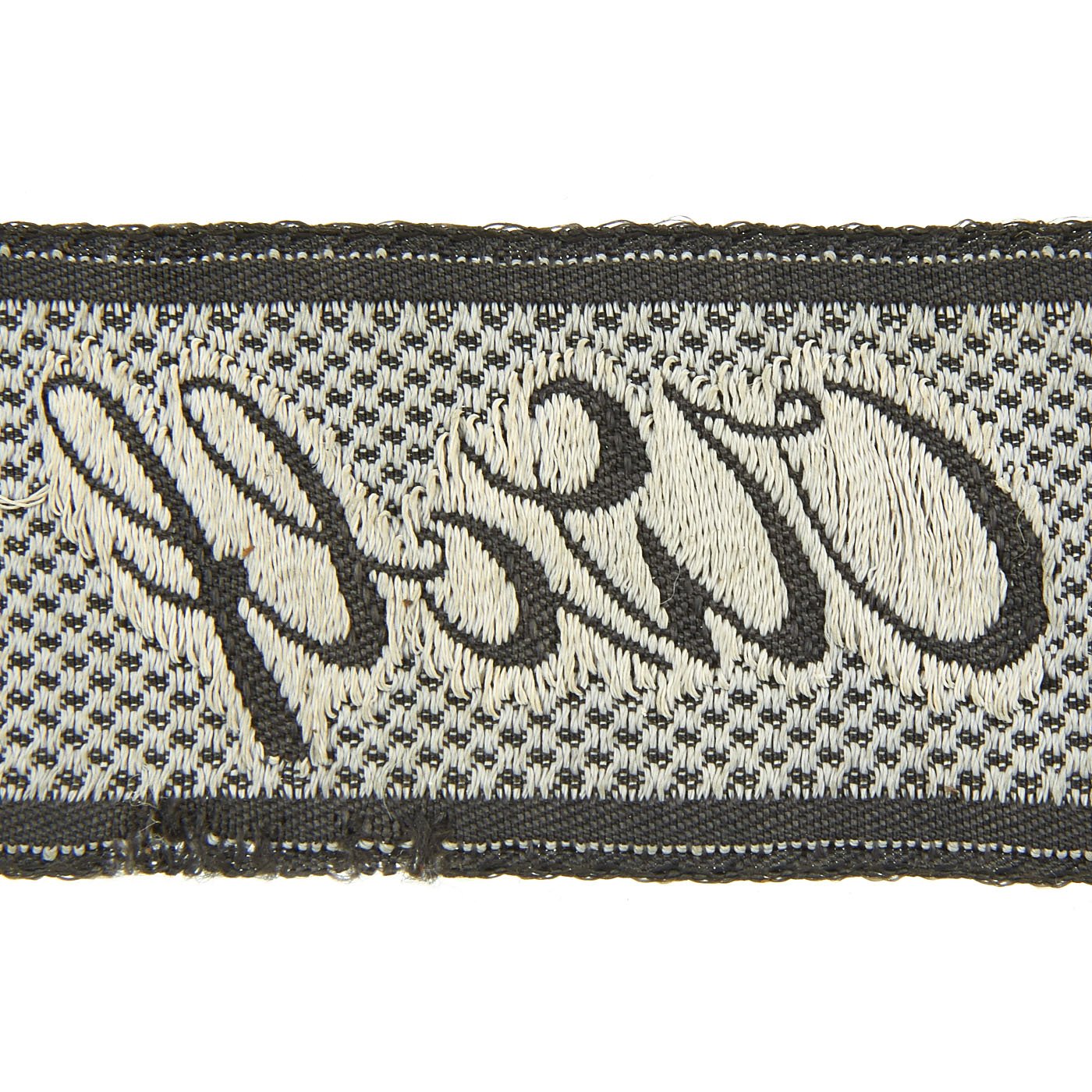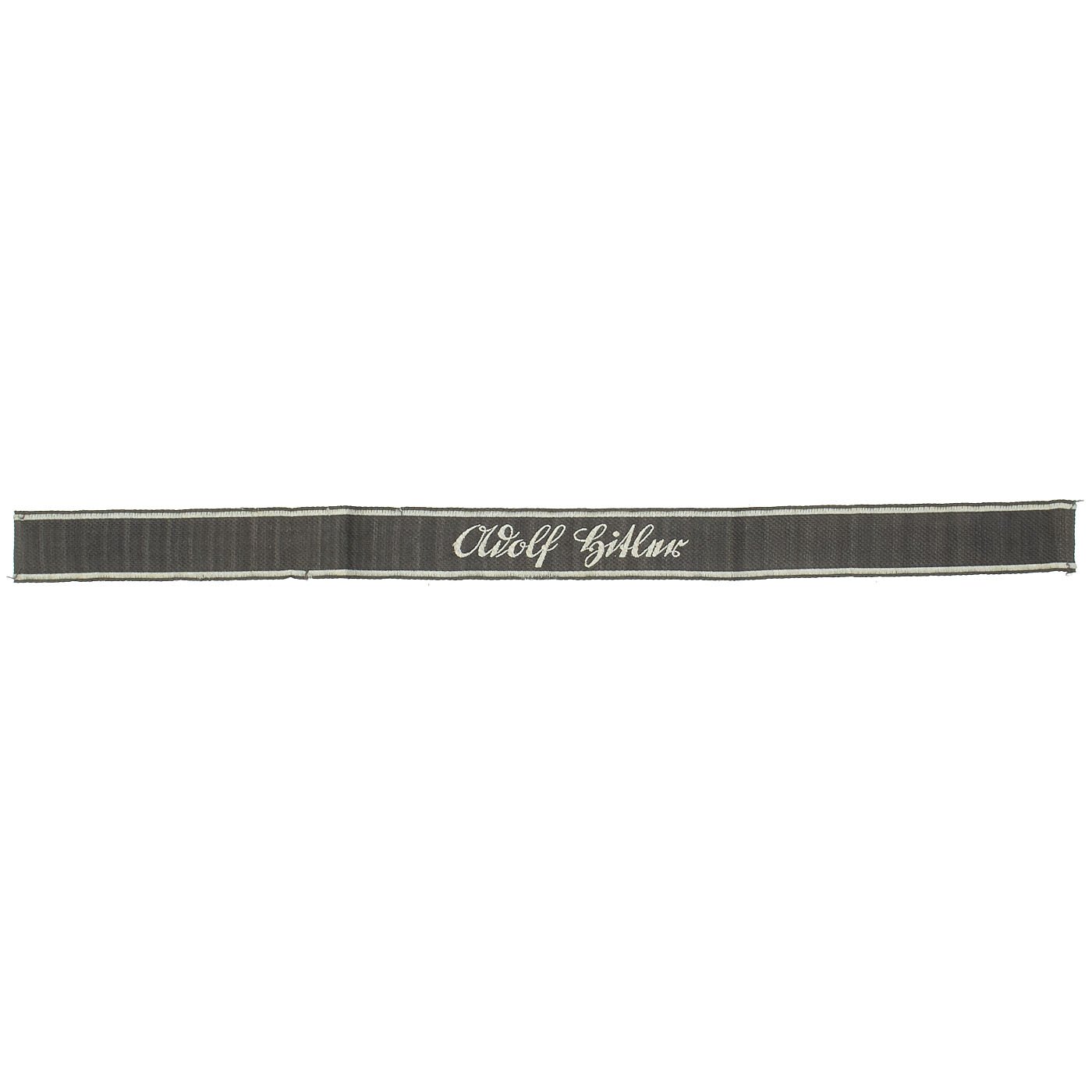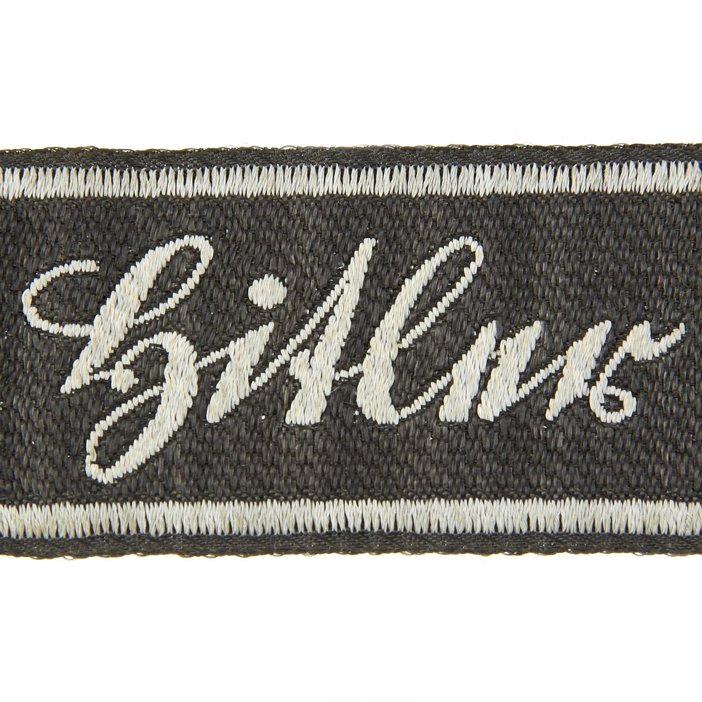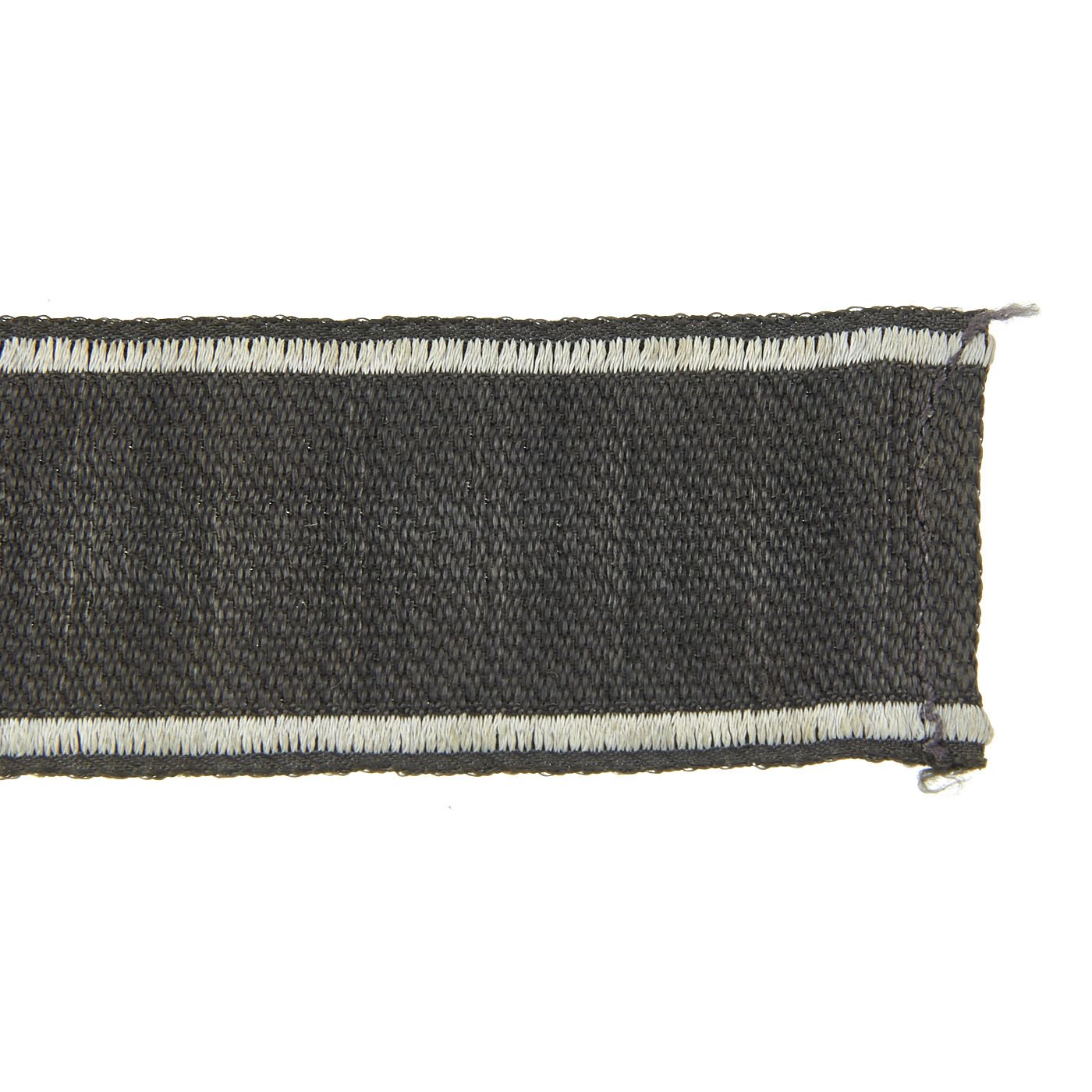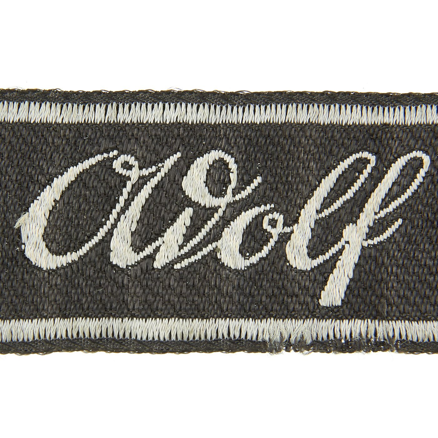 Machine embroidered with grey thread for the enlisted men of the Leibstandarte SS Adolf AH. The title would have been worn on the left sleeve of the tunic approximately 15cm from the edge of the cuff. The cuff measures 1.25" x 18 3/4", with no missing areas, and is in excellent unissued condition.