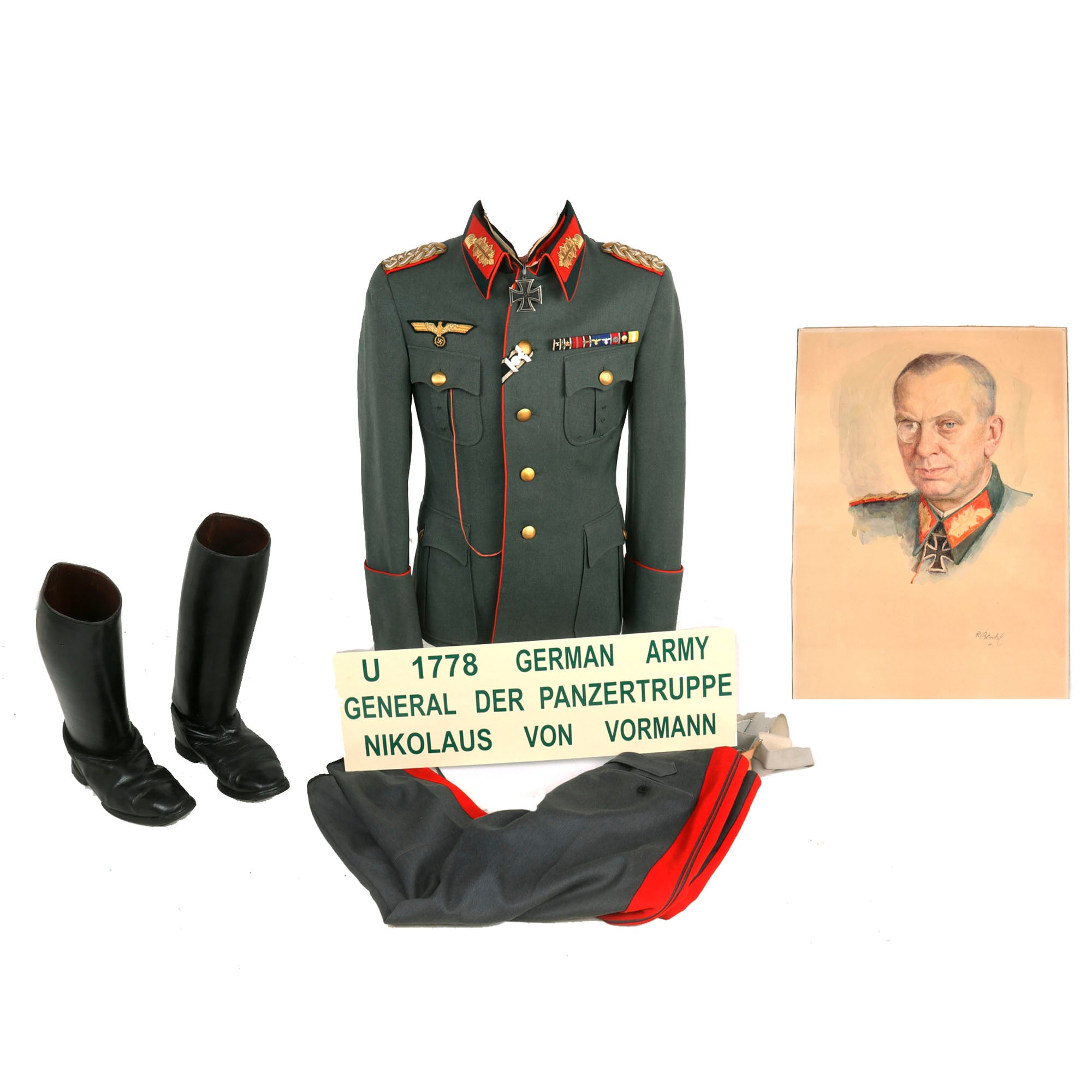 Original Items: One-of-a-kind set. Nikolaus von Vormann (24 December 1895 – 26 October 1959) was a German Panzertruppe General in the Heer Army during World War II, who commanded the 23rd Panzer Division and later the XLVII Panzer Corps during his WWII service. Originally an Oberstleutnant (Lt. Colonel) at the beginning of the war, he eventually rose to the rank of General der Panzertruppe (Lt. General) at the end of the war when commander of the XLVII Panzerkorps. He was a recipient of the Knight's Cross of the Iron Cross, as well as many other prestigious awards.