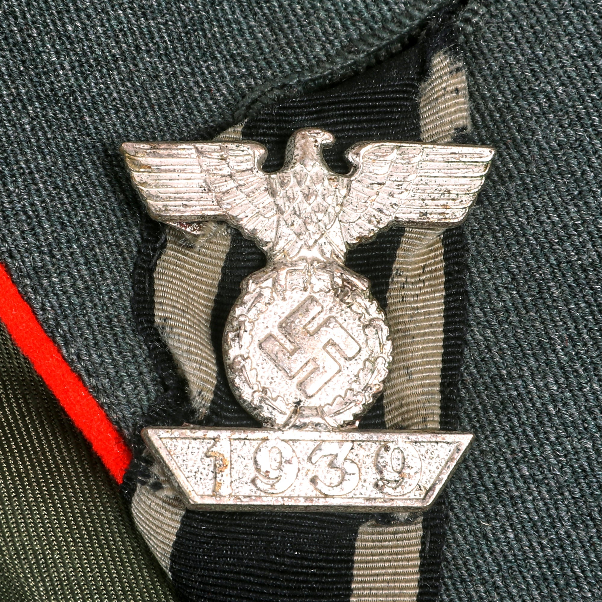 Most notably, he was awarded the Knight's Cross of the Iron Cross on 22 August 1943 as Generalleutnant and commander of the 23. Panzer-Division. It should also be noted that due to his long service he would have qualified for the Wehrmacht Long Service awards, and other awards not listed. Many of these are represented in the medal bar his uniform bears, which also looks to have some awards not mentioned on listings that we have. The 2nd buttonhole from the top is fitted with a 1914 EKII ribbon, with the correct 1939 clasp. It is also fitted with a "Field Upgraded" Knight's Cross (an EKII with Ribbon) to take place of the Friedrich order Knight's Cross.