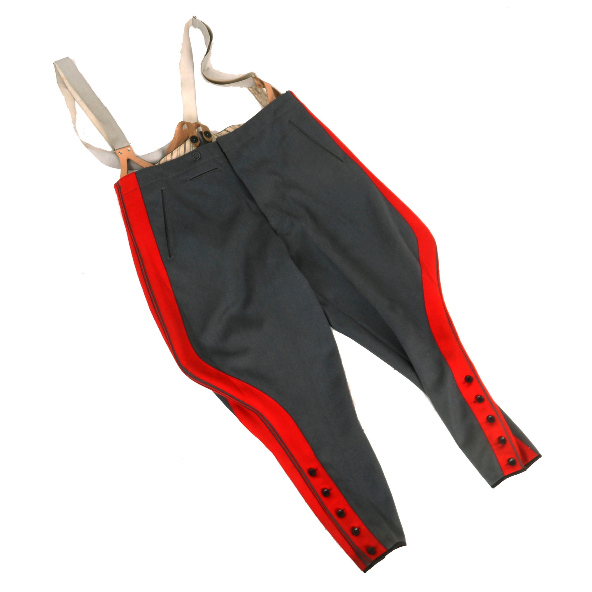 Along with the tunic there is a lovely pair of General's breeches / jodhpurs in the correct stone gray (steingrau) color, with red stripes on the side, which comes with the correct suspenders. They are in very good shape, and definitely period correct. Even better, they have a lovely embroidered label on the interior, which reads Gen. Lt. N. v. Vormann. Based on this we believe they were acquired some time in 1943 due to the rank.