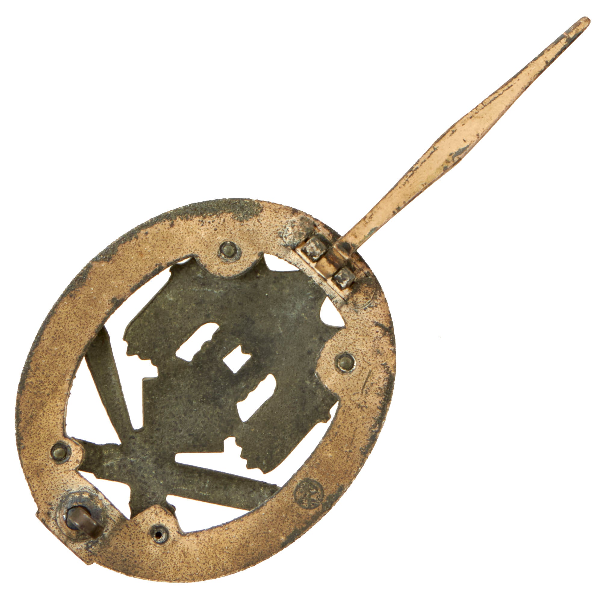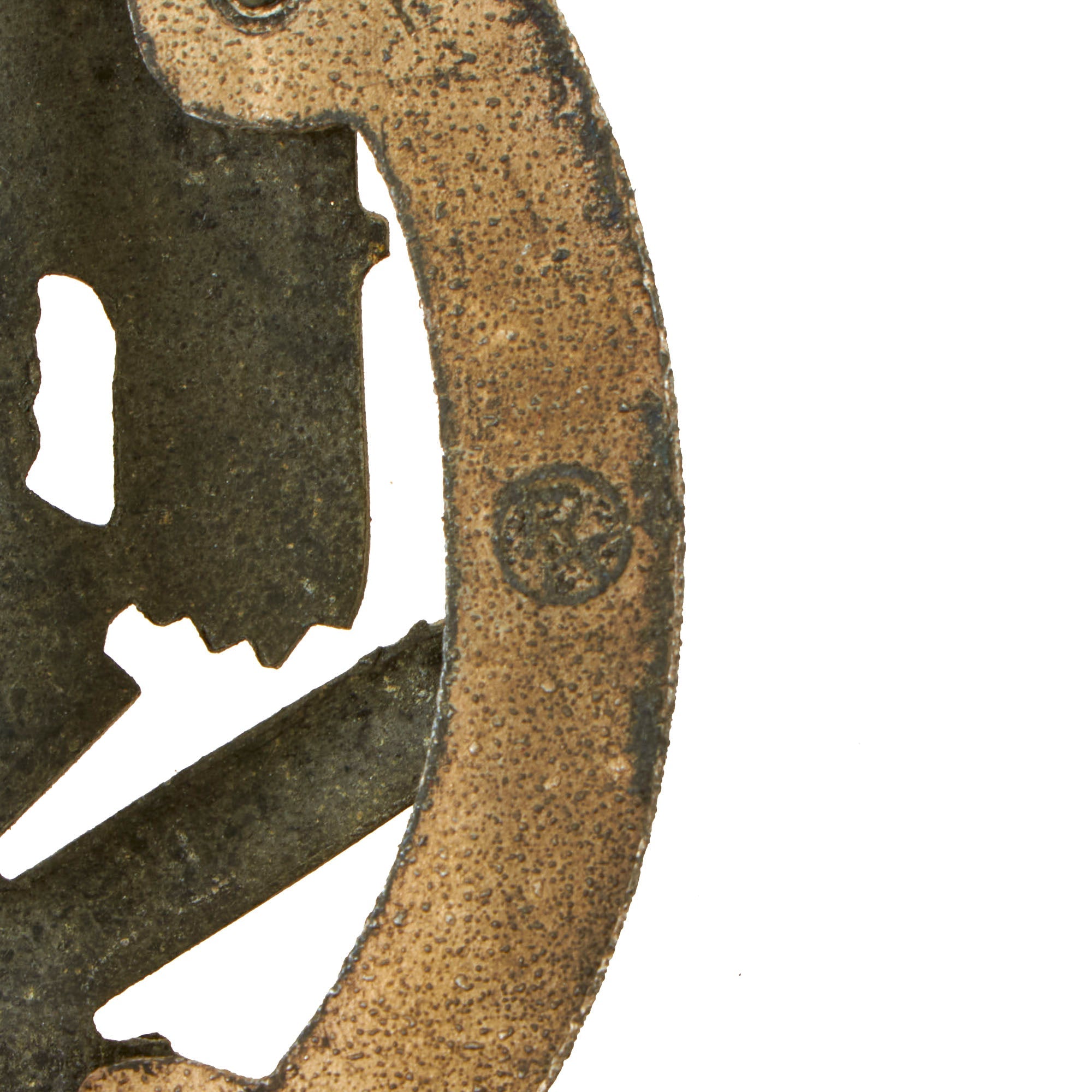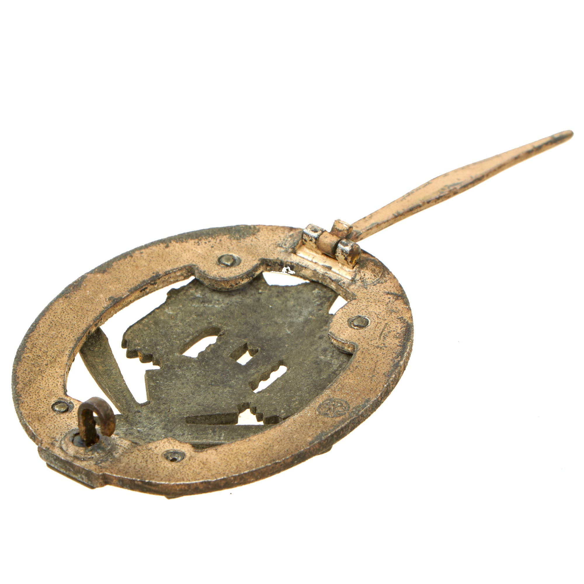 All hardware is still held firmly in place by this makers crimping techniques, there are no repairs at all. The wreath still shows a good amount of the original silver wash on both sides, though it is patinated, and the blacked finish on the central eagle device is still well retained. The "25" at the bottom is also still crisp. This is one of the nicest examples of a Numbered General Assault Badge we have been able to offer.