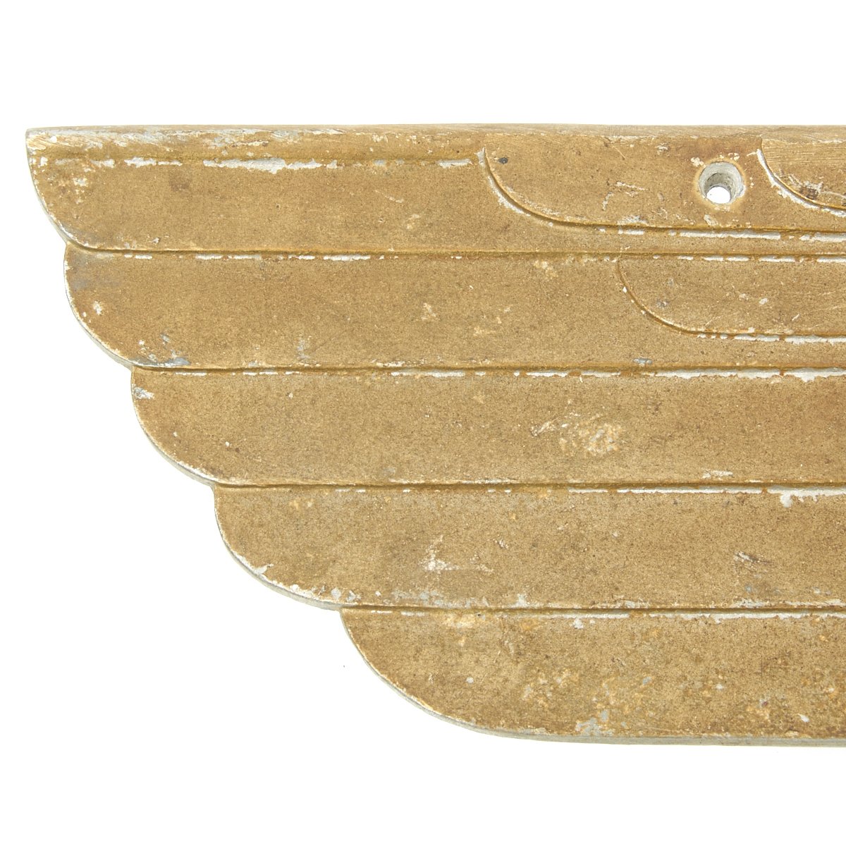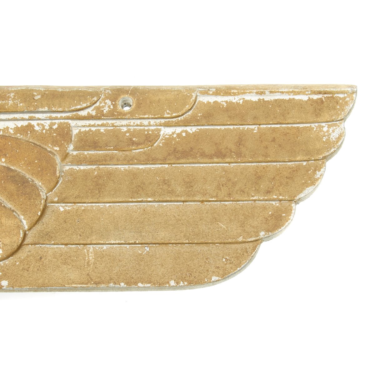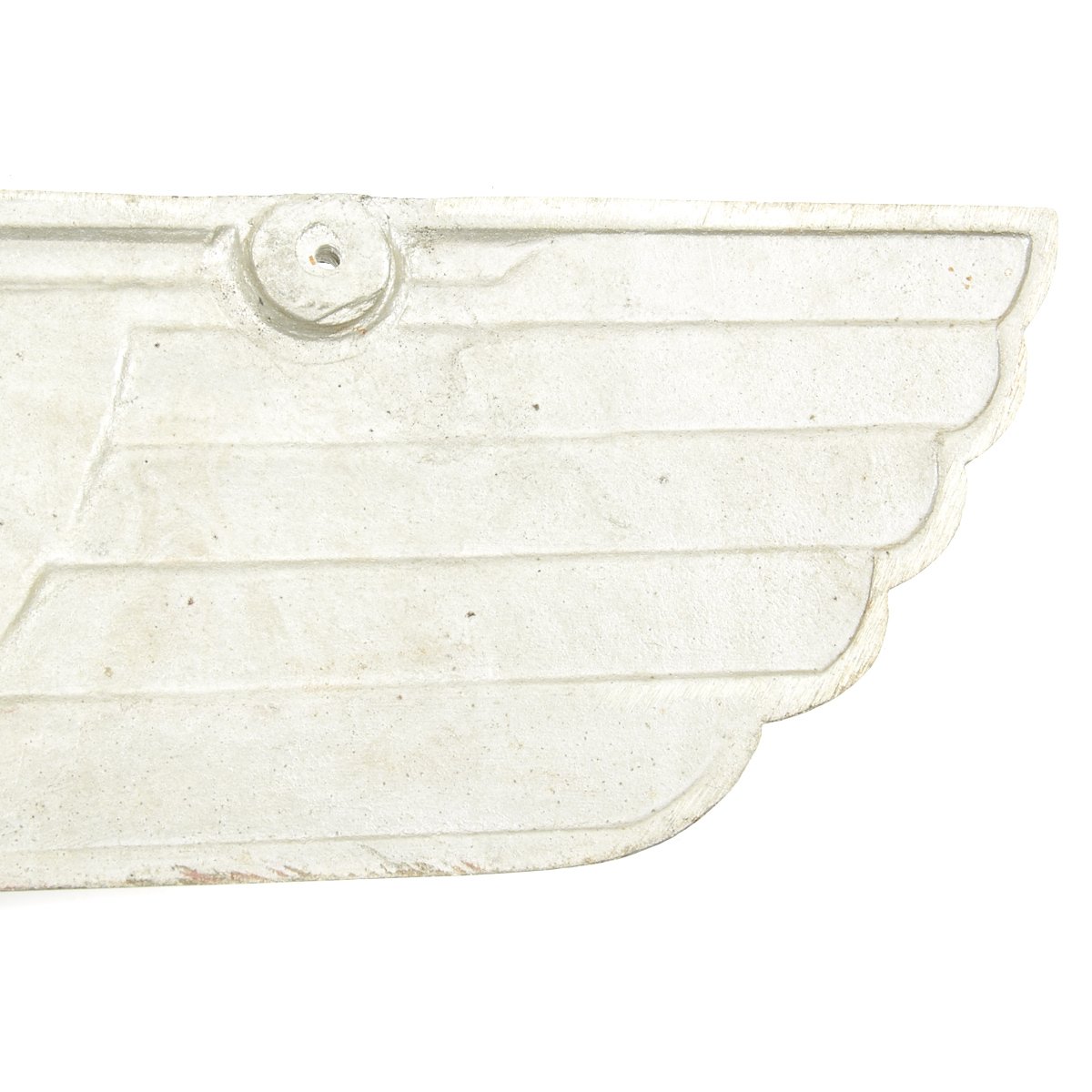 Although all 3rd Reich railroad eagles were cast with integral cone/stud fastening structures that was part of the mold, at times collectors will come across an eagle that has had holes drilled through the plaque. Because the only period photos that the collecting community has showing these railroad eagles displayed during the 3rd Reich are usually small and faint, verification of this method of attaching an eagle plaque cannot be positively confirmed. The drilled holes occasionally found on railroad eagles may certainly be the handy work of a veteran, and done in order to display his war trophy. But eagles found with precise, machined, and countersunk holes, may lend credence to the possibility that perhaps at least some were indeed fastened using a system other than the normal stud method.
