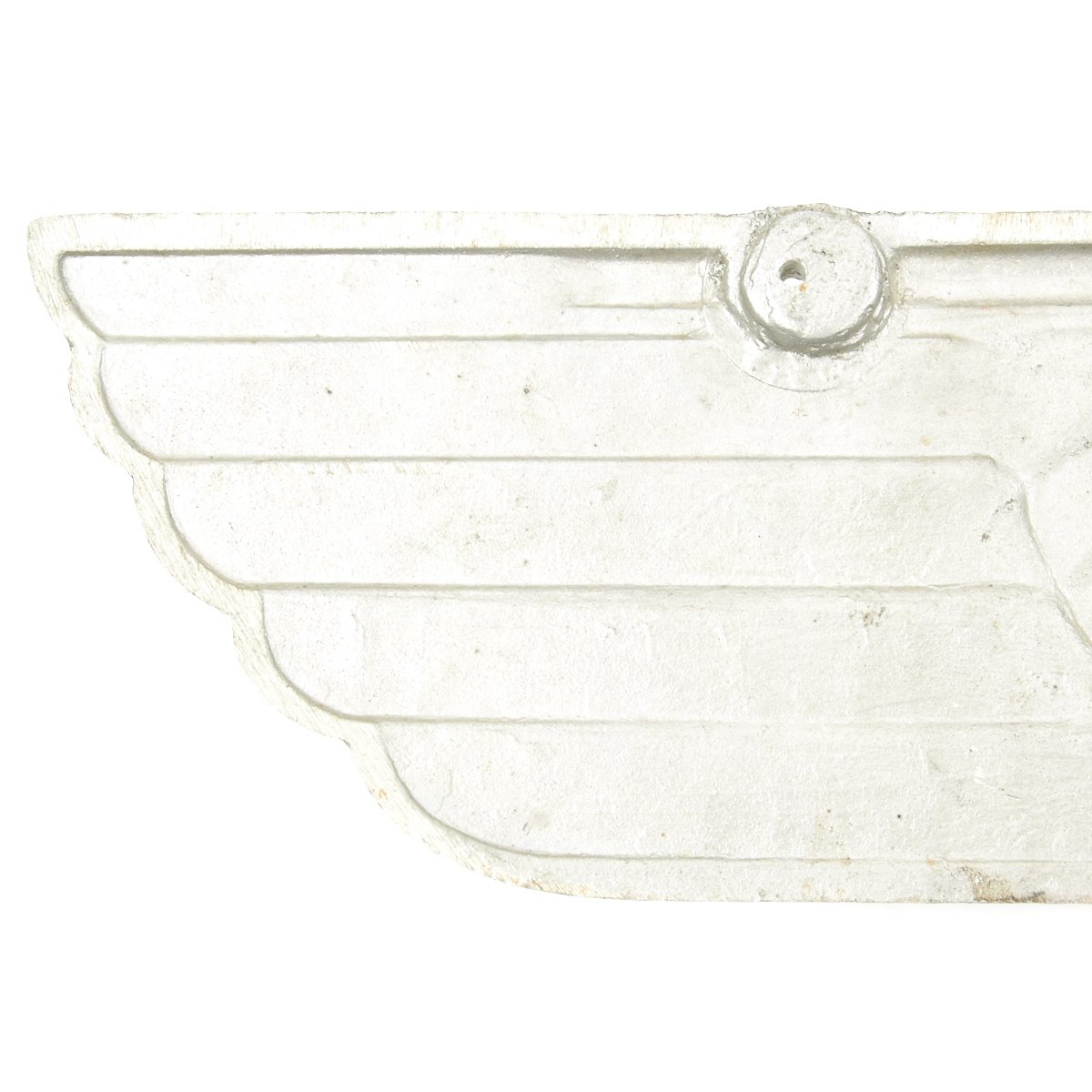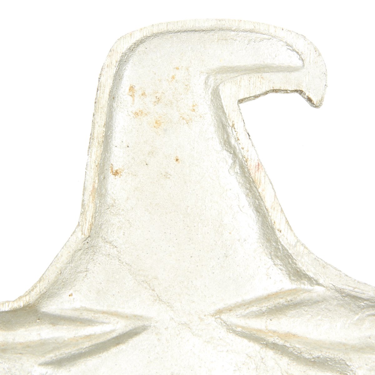 As with most collectibles, the natural undisturbed patina that has accumulated over time on an item is something that is difficult to replicate on any reproduction. Very often we see eagles that are covered in soot from coal dust and almost completely black. No doubt this is likely sign that the plaque was affixed to a Reichsbahn locomotive or coach car that moved men and supplies in and out of Germany during WWII. While some eagles offered in the collecting community today have been cleaned or even polished, they were probably never manufactured with a high luster shine. The more rough and sometimes porous surface suggests that these plaques were most likely finished to a degree that left them with a dull natural matte aluminum appearance.