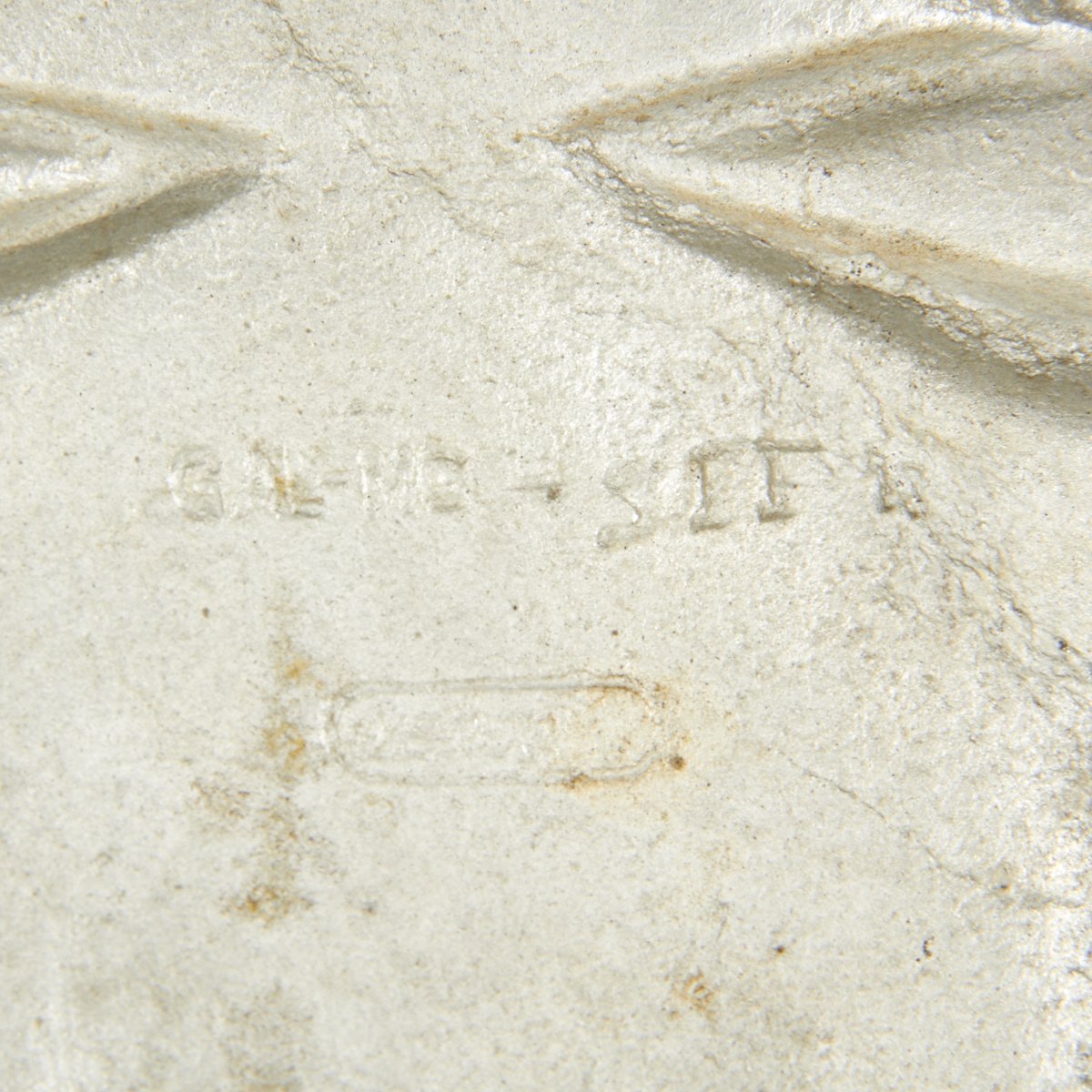 With few exceptions, nearly every 3rd Reich era railroad eagle will exhibit some type of maker marks and or numbers/symbols that are usually recessed in the reverse side of the plaque. These maker marks are actually part of the mold, and not something that is stamped later, after completion of the final product. Since many of the firms responsible for the manufacturing of these eagles have never been identified, the collecting community usually refers to them by the initials seen on the reverse. In other words; J&Z, PS, LOK, HE, Wehog, etc. By no means does the presence of any maker marks, actually make a railroad eagle legit. Because we know that post war reproduction eagles, will also exhibit these same manufacturing symbols. Most reproductions that are found in the collecting community have been cast using an actual 3rd Reich eagle, as a pattern. Even with some period railroad eagles, a collector will at times find it difficult to clearly identify the makers initials. Some of these symbols are very obscure, and use a small font. Consequently maker marks alone, are truly not a definitive method for authenticity nor identification.