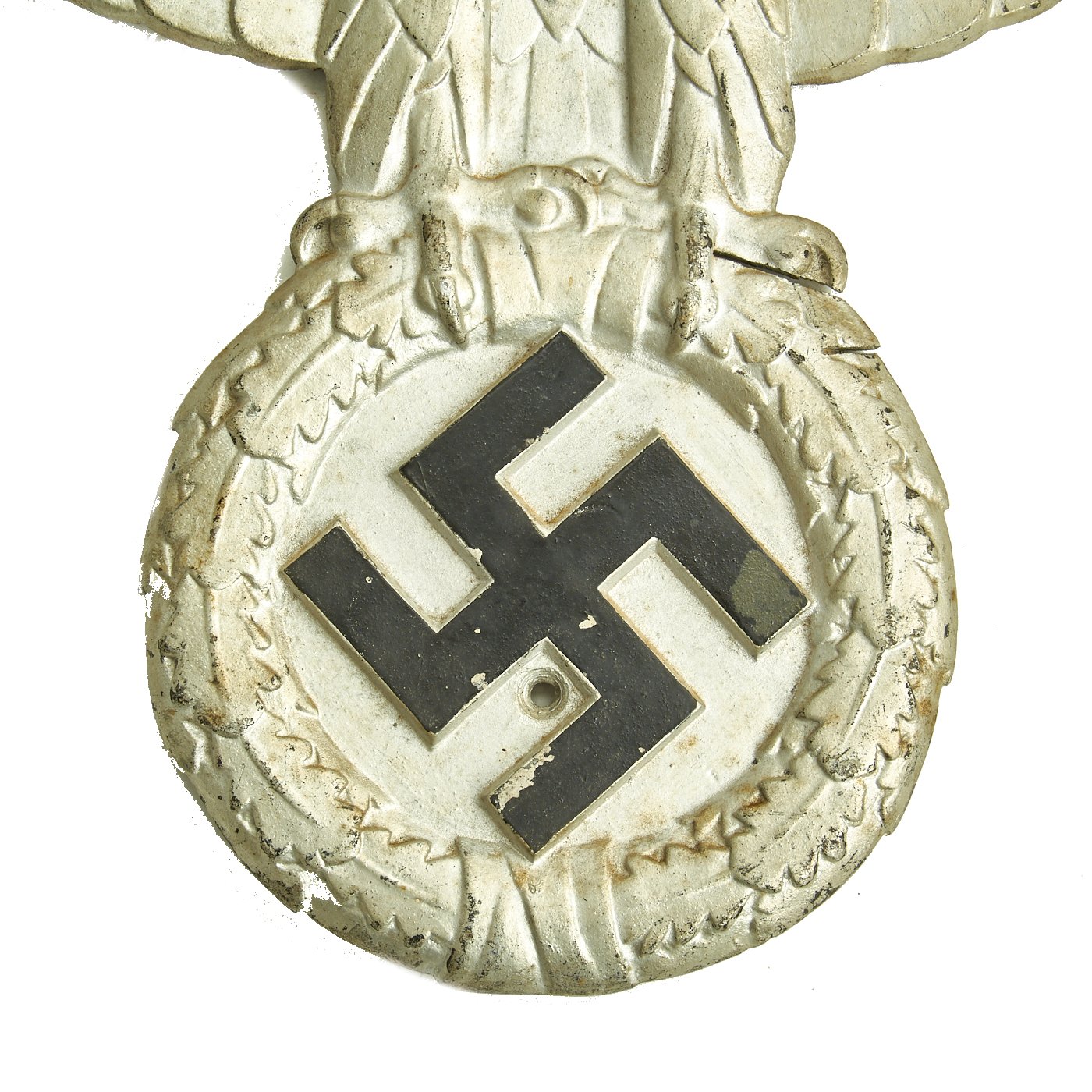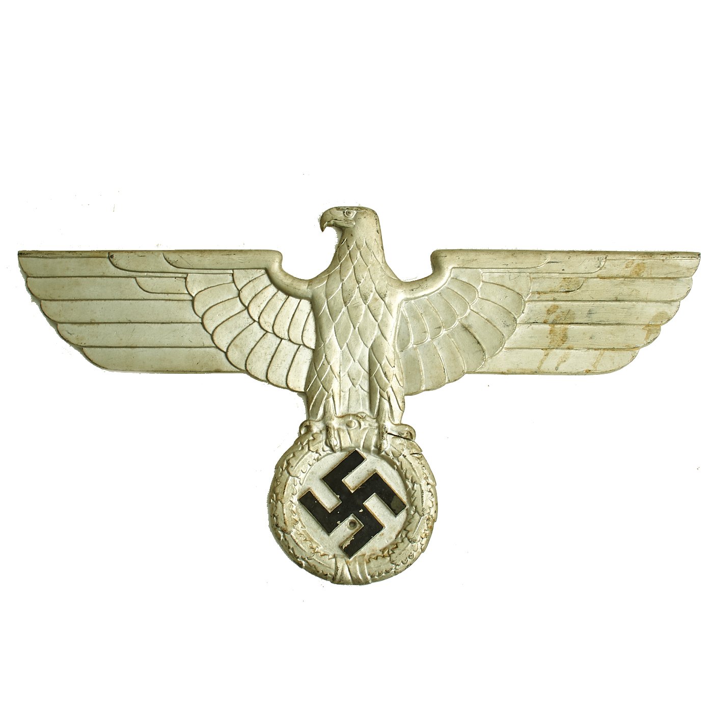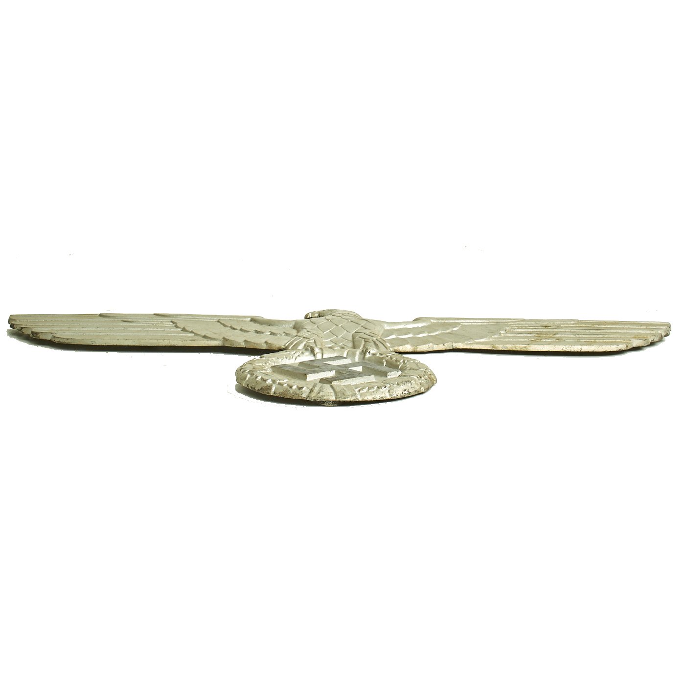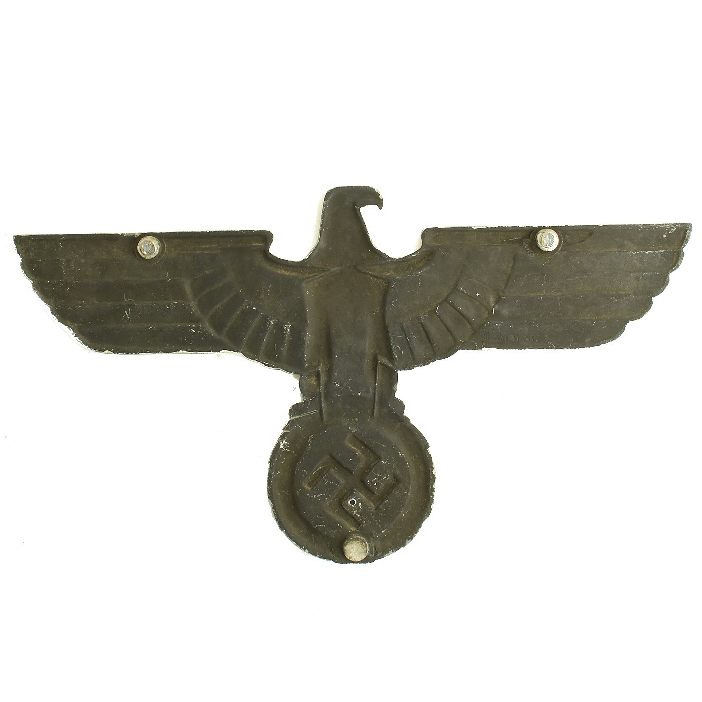 Original Item: Only One Available. This is an excellent condition totally genuine German World War Two rail road eagle used to attach to the front of locomotives and box cars during the reign of the Third Reich. It measures 28 inches across, which is one of the more seldom seen sizes.