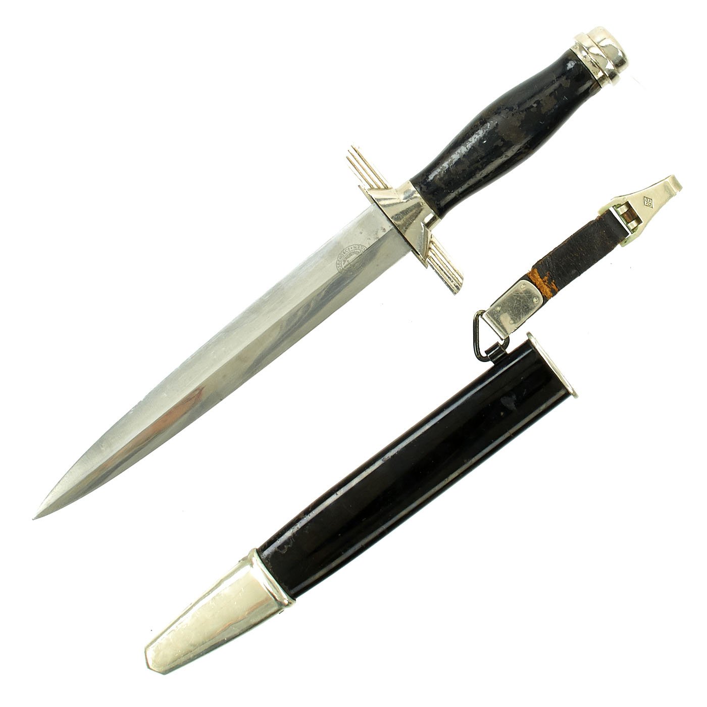 Original Item: Only One Available. This RLB EM Dagger is in very good to excellent condition throughout. The hilt mounts are the nickel-plated pot metal type. The plating is bright and intact with virtually no signs of lifting or flaking.