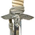 This steel scabbard is a fine example, having much of the original plated finish, though it does have a bend about 3 inches from the end, which does not interfere with sheating the blade. The scabbard overall has a great lightly oxidized look, and aside from the bend there are no major dents that we can see. The bands are aluminum alloy, and are well defined and have outstanding hand enhanced oak leaves tipped at a 45 degree angle. The throat is retained by a single flush mount screw on the rear.