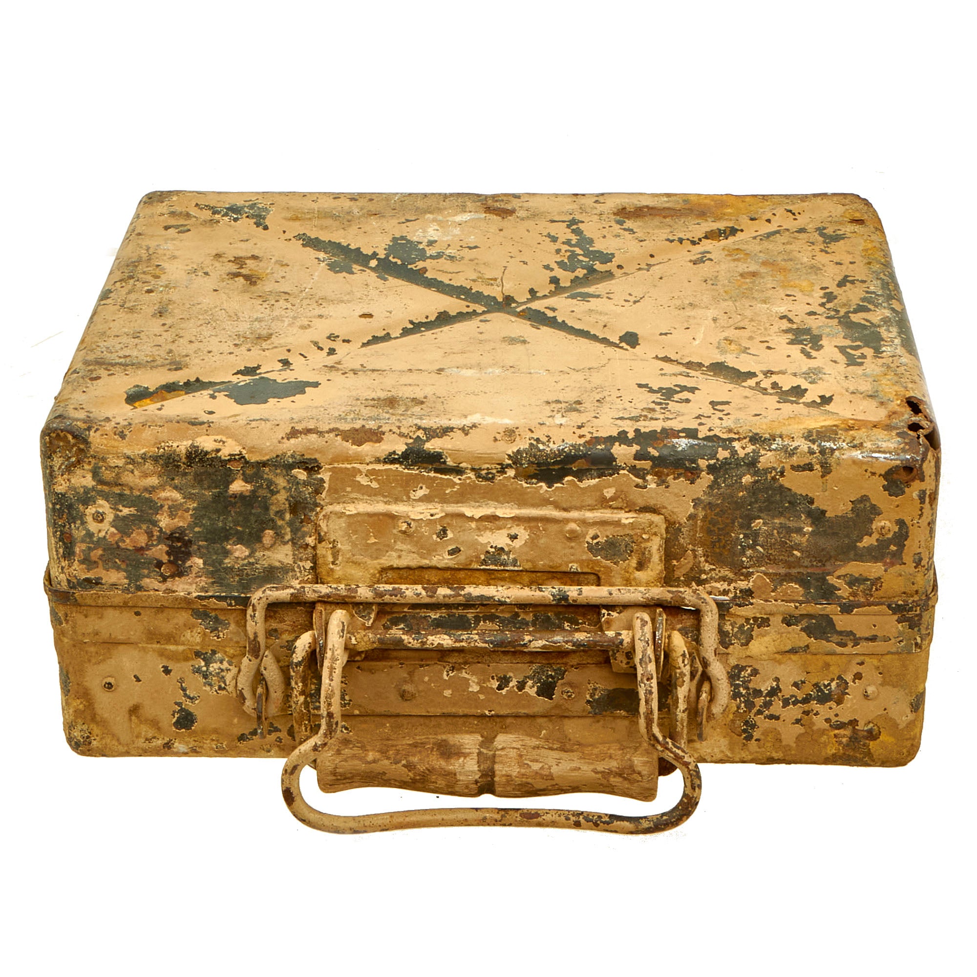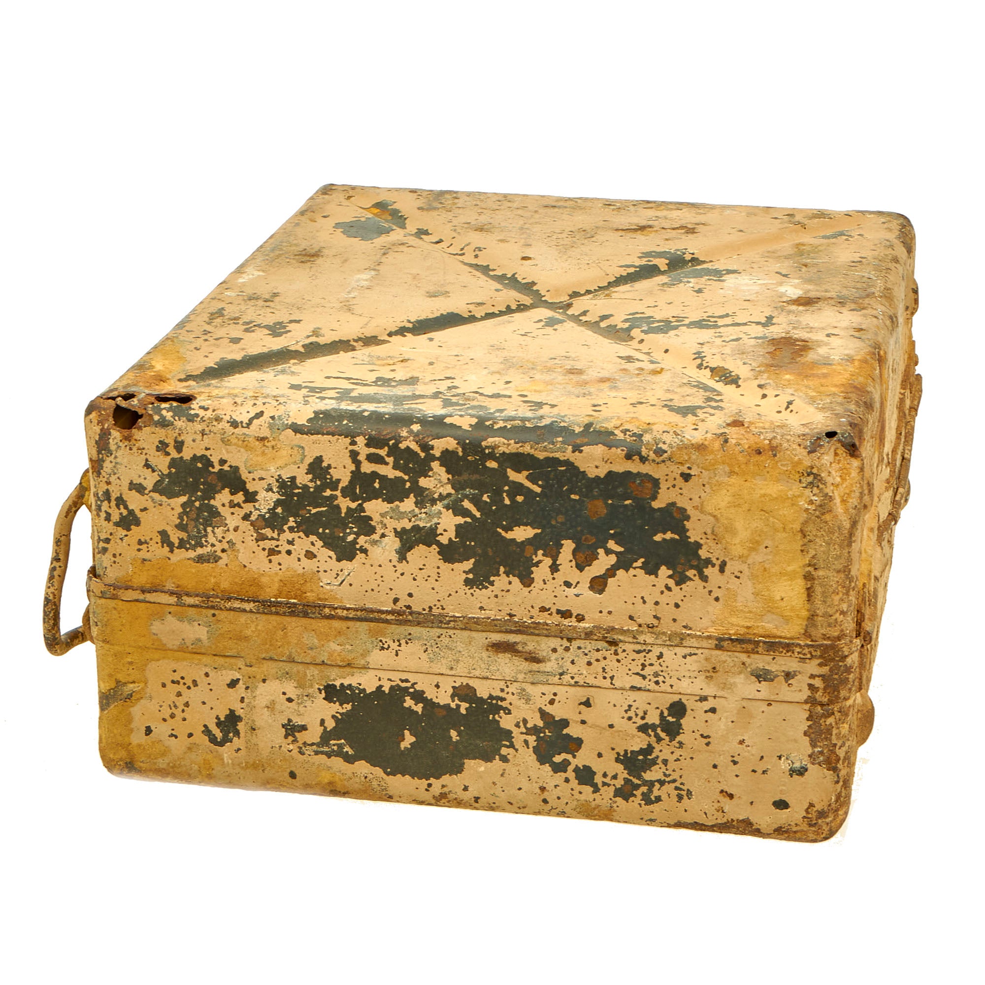 Original Item: Only One Available. Fantastic totally genuine 5cm mortar round steel transportation case for the 5 cm Leichter Granatwerfer 36 (lighter grenade launcher). The rounds it carried are High Explosive anti personnel bombs with a finned tail, of 8 blades, that would carry the cartridge. The bodies are manufactured from 4mm thick mild steel, with a screw threaded fuze hole that would accept a quick acting aluminum or Bakelite Wgr. Z. 38 nose fuse. The body would have contained a bursting charge of TNT, of approximately 4 1/2 ounces in weight. Muzzle velocity was 246 feet-per-second with a range of 55-558 yards.