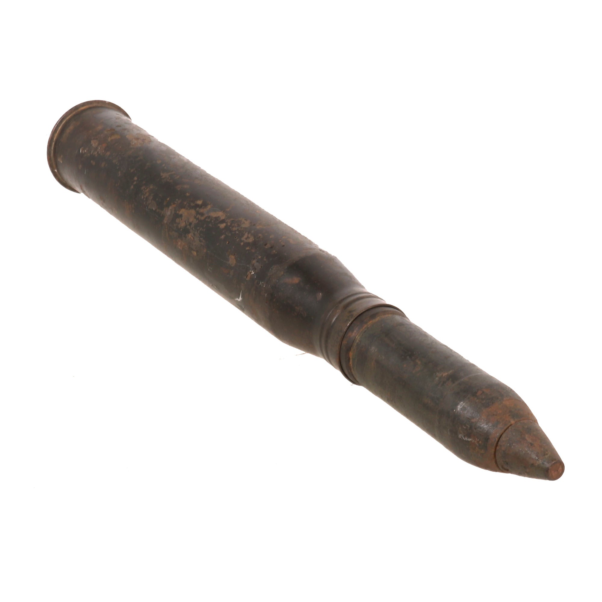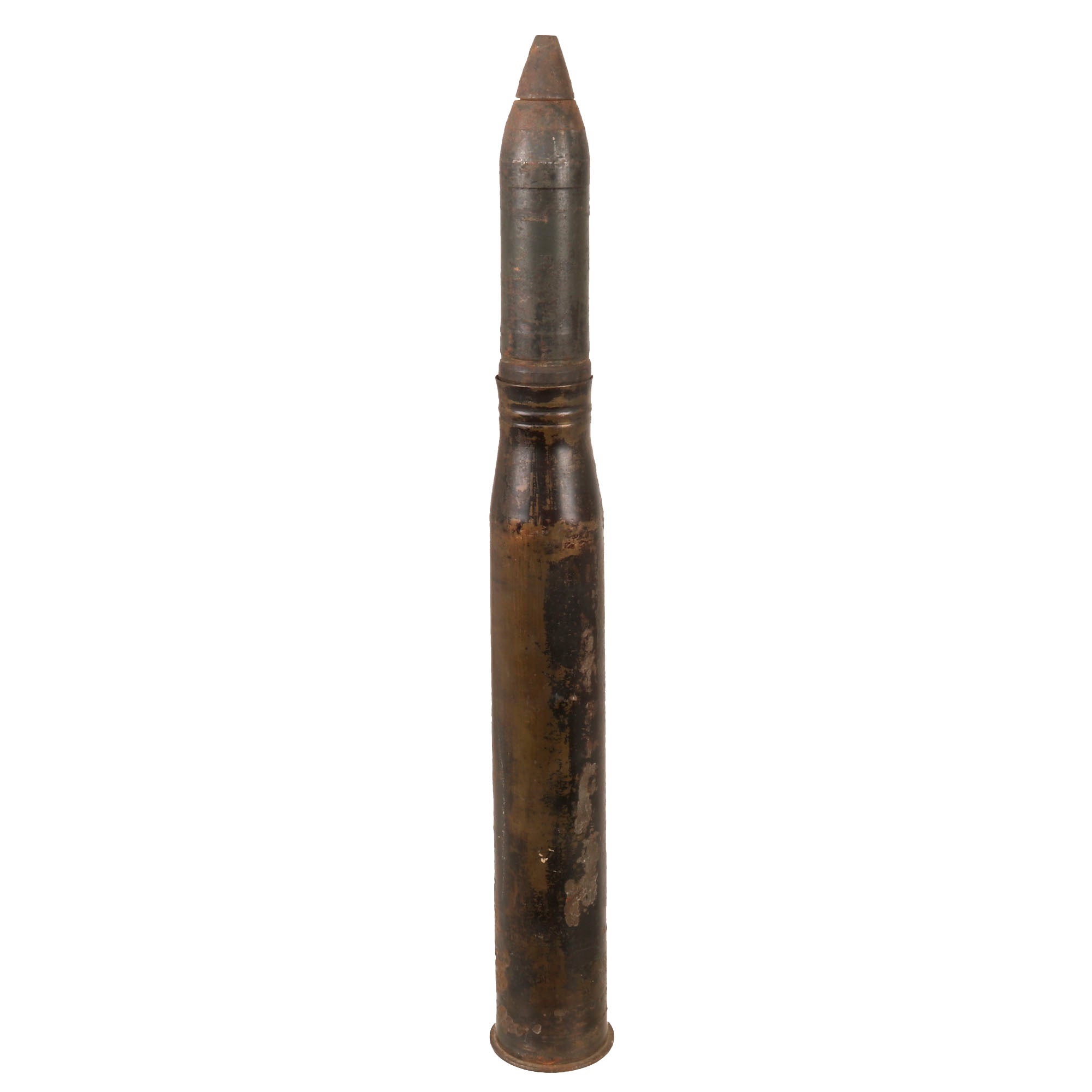 Original Item. Only One Available. Original Item. Only One Available. This is a nice example of a German WWII 5cm round for the Pak 38 (L/60) Anti-Tank gun. This round still retains nearly all of the original paint and markings, as well as the original casing which is heavily pitted and oxidized, making this an exceptional offering.