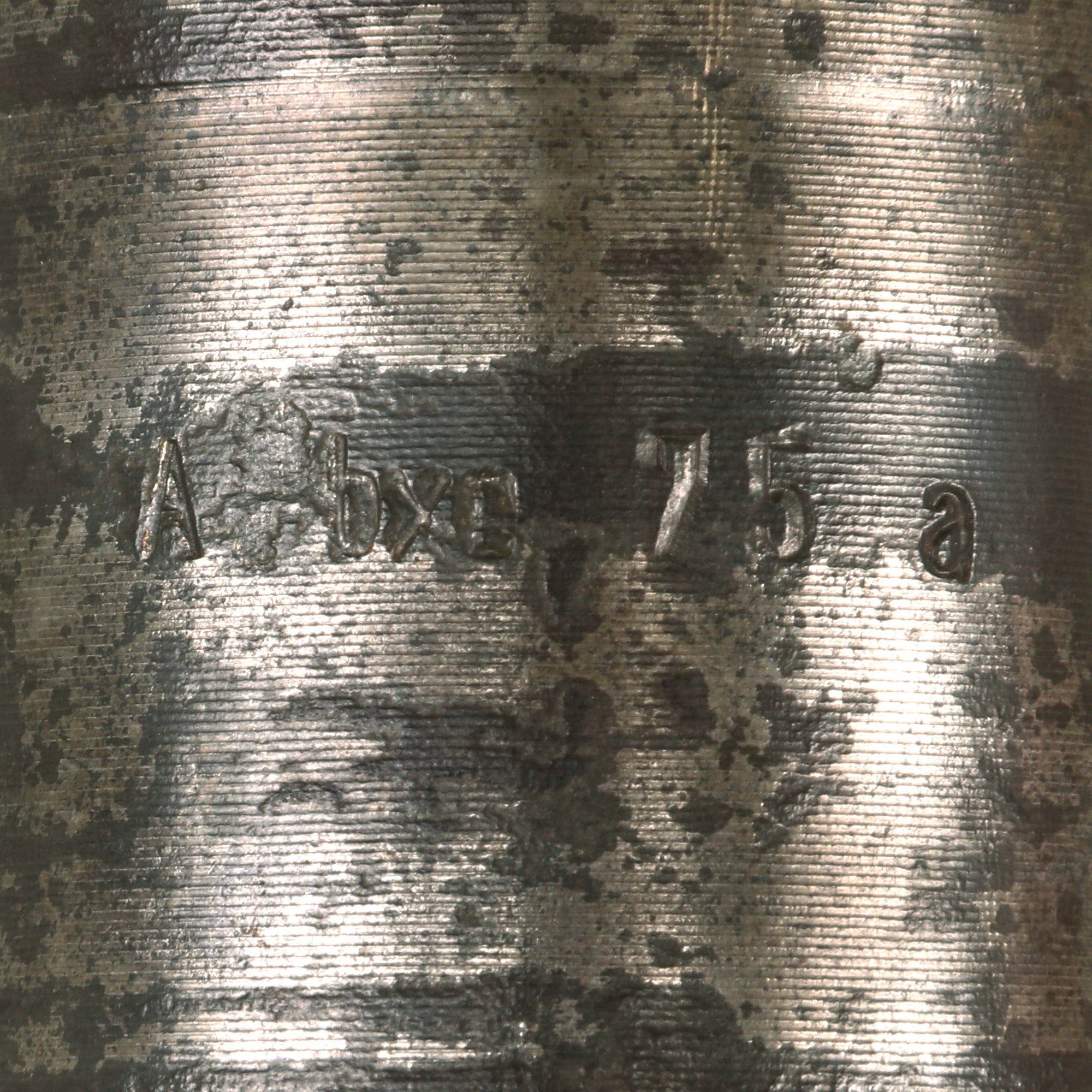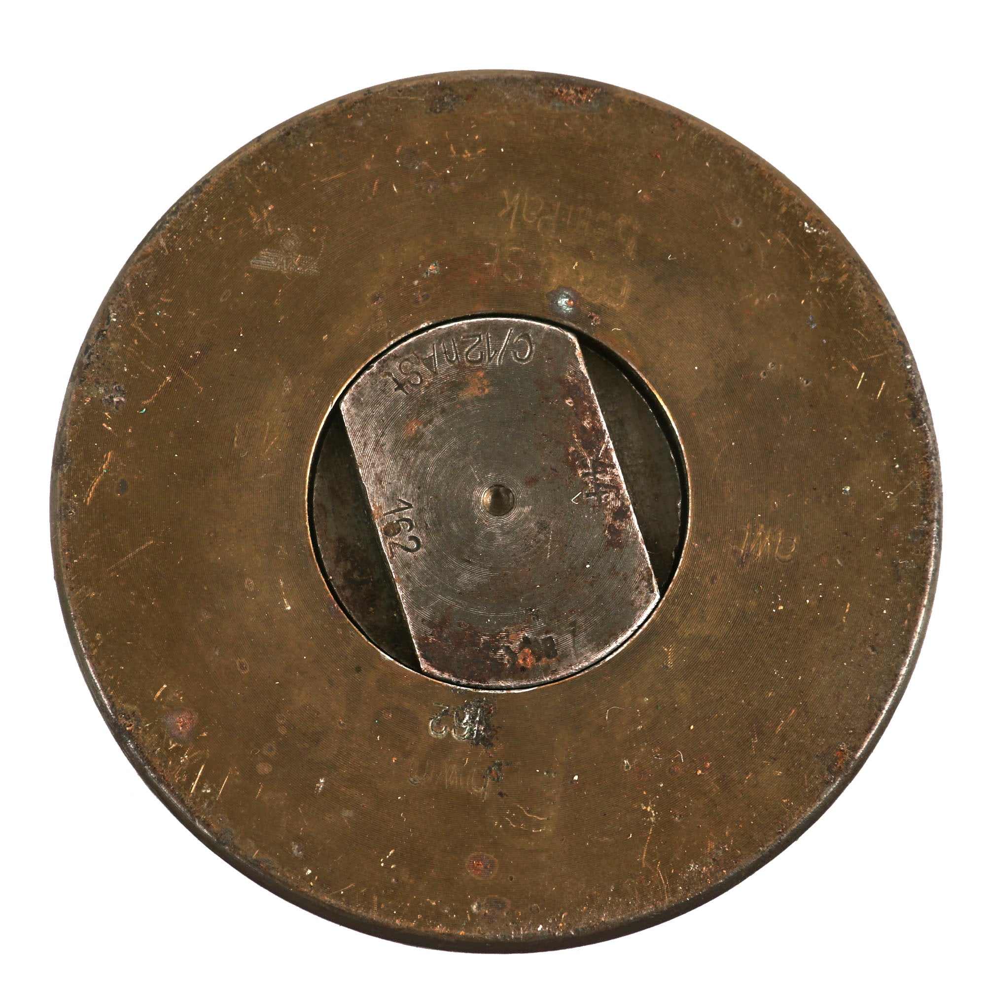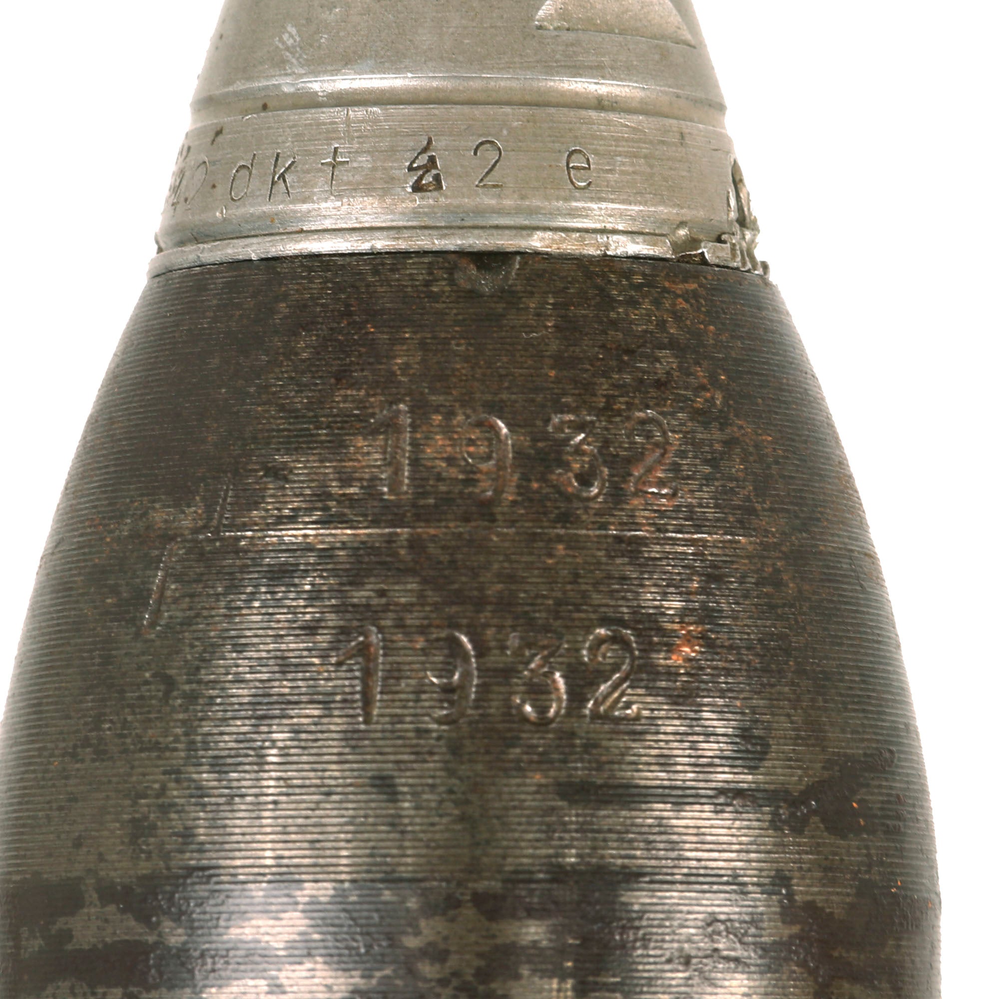 The round is in great shape and retains most of its paint. The fuse is stamped: