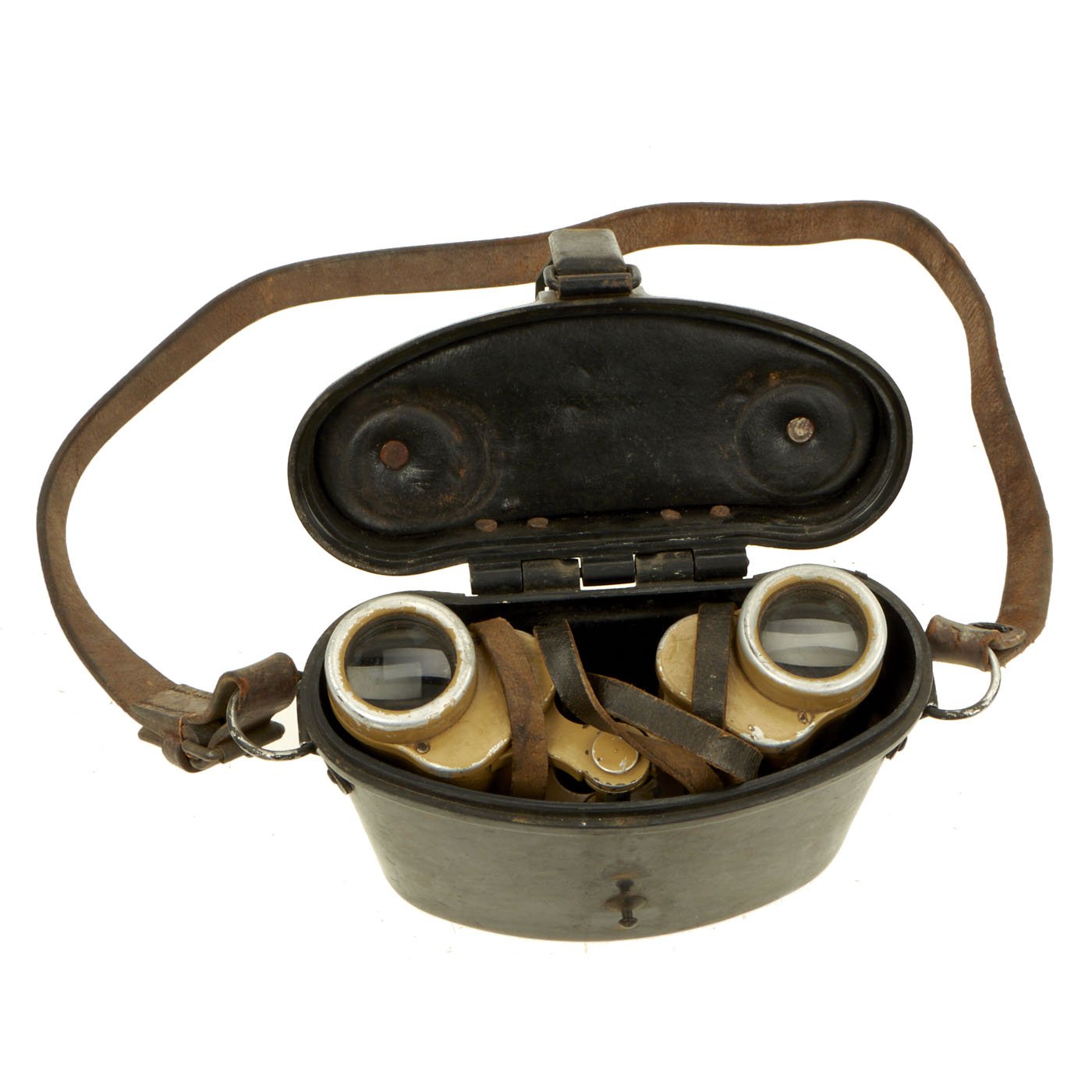 Overall a very nice example of the classic eye piece for German infantry officers during WWII, complete with a rare bakelite case! In great shape and ready to display, or even use!