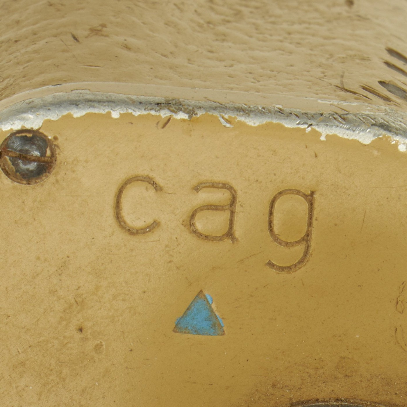 The use of the three letter code, indicates that these were made after 1940. "cag" represents Swarovski Wattens of Tirol, Austria. The blue triangle indicates the type of lubricant that was to be used. The tan color definitely suggests that this saw service in the North Africa campaign of WWII.